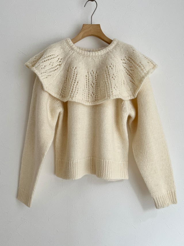 Dot and Stripes CHILD WOMAN/1/3Wool 透かし編みケープ襟プルオーバー c/#キナリ