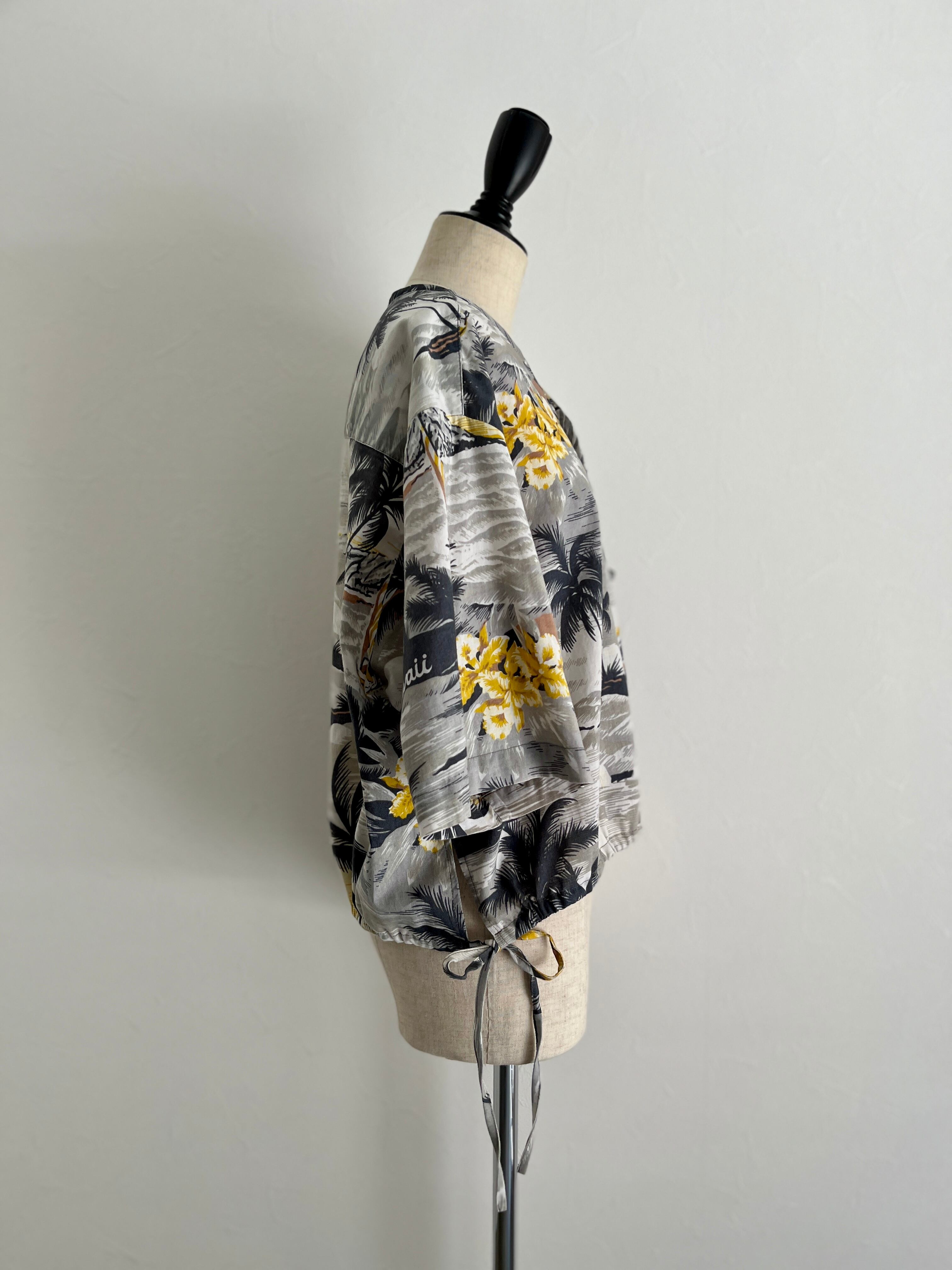 ennt remake/柄シャツショート丈 リメイクシャツ ヤシの木プリント