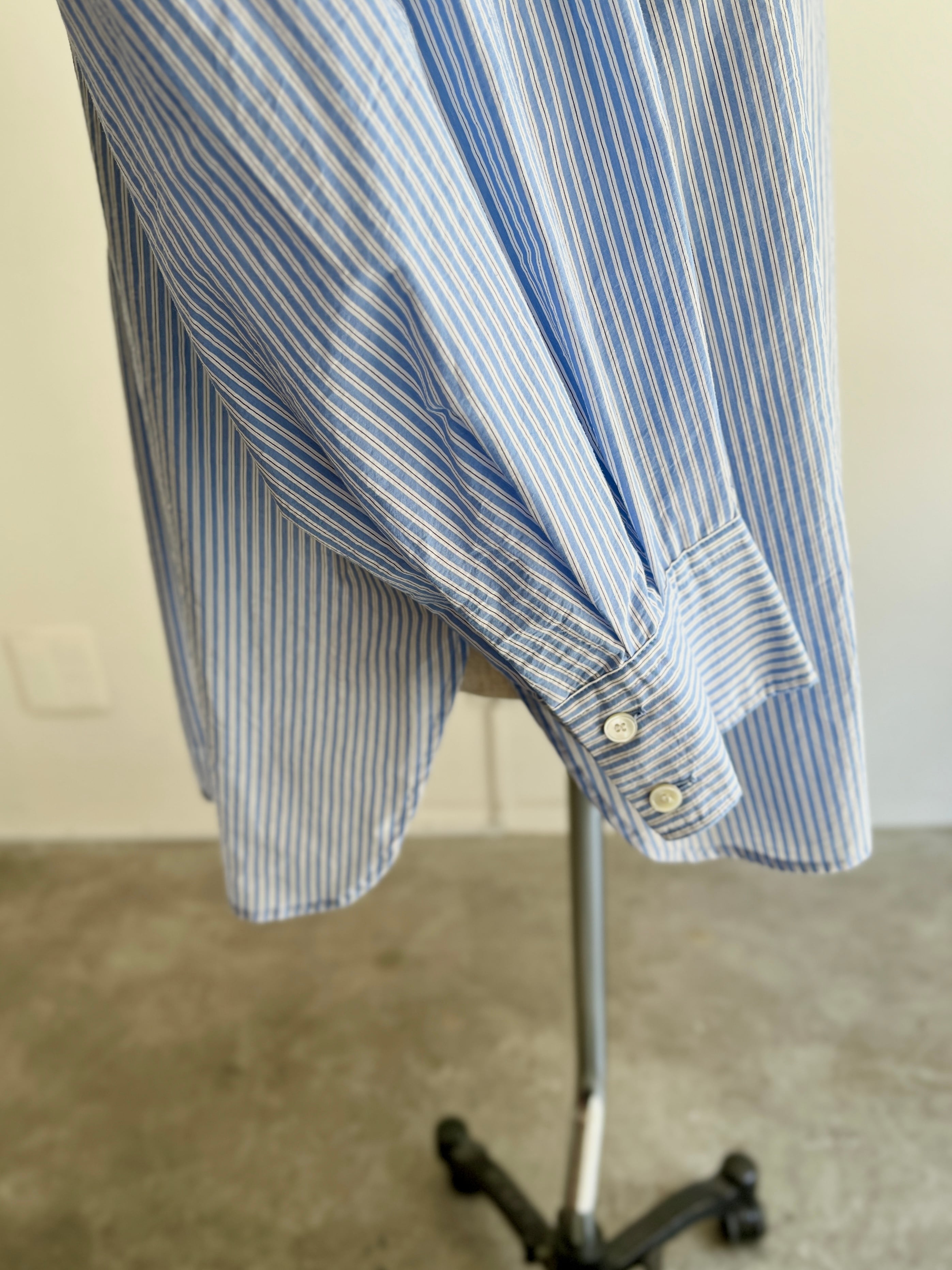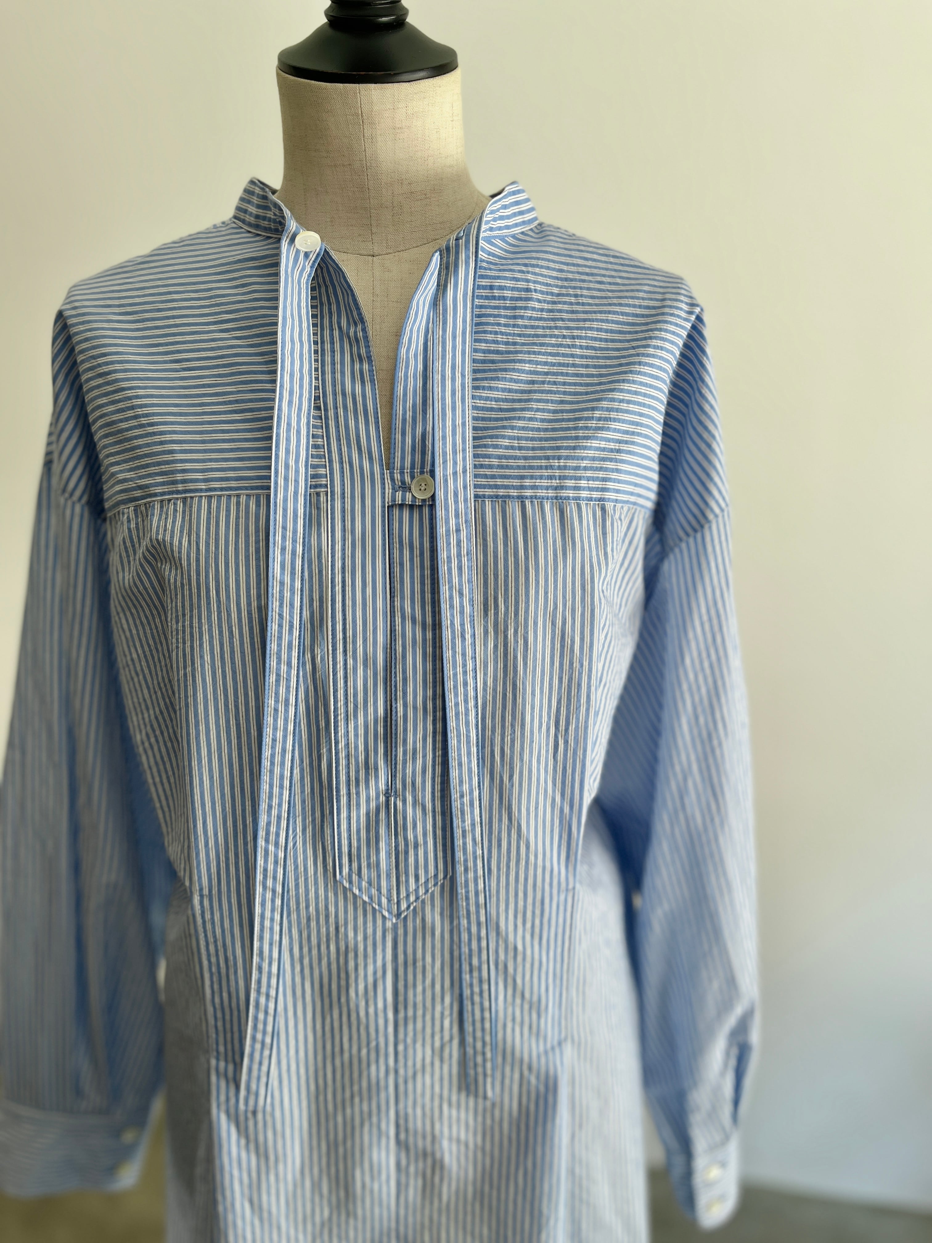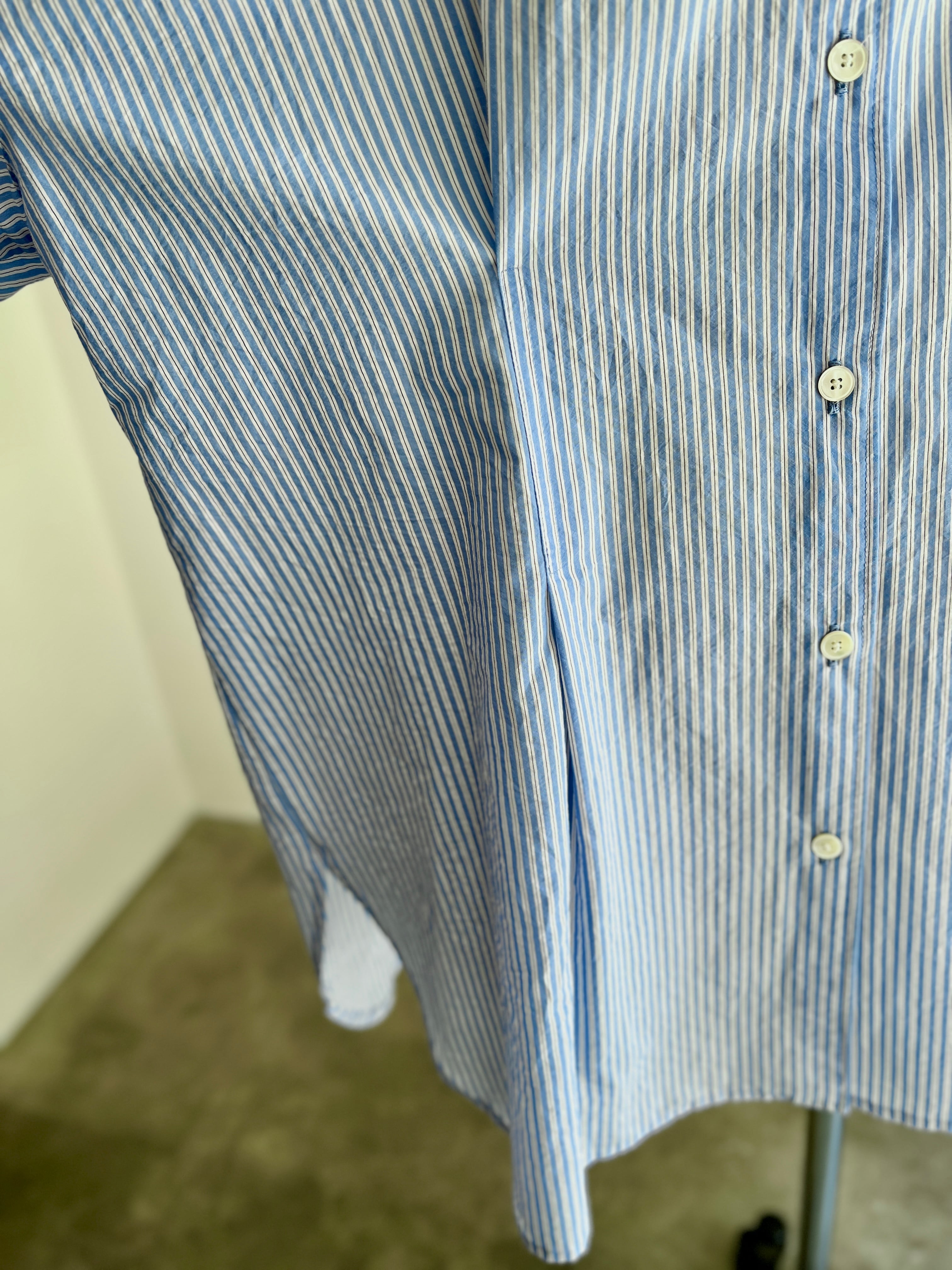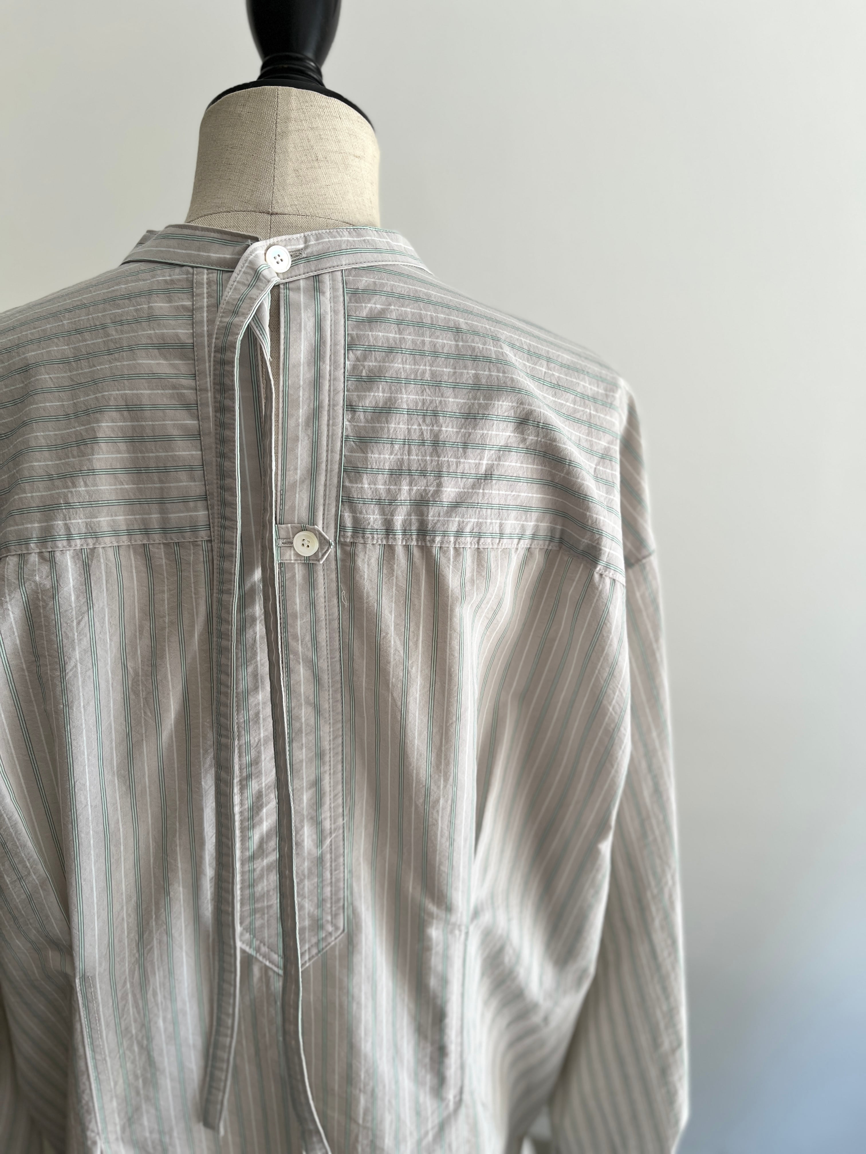 コットン×ナイロンの、ほんのりハリのあるストライプ生地の2wayシャツ。