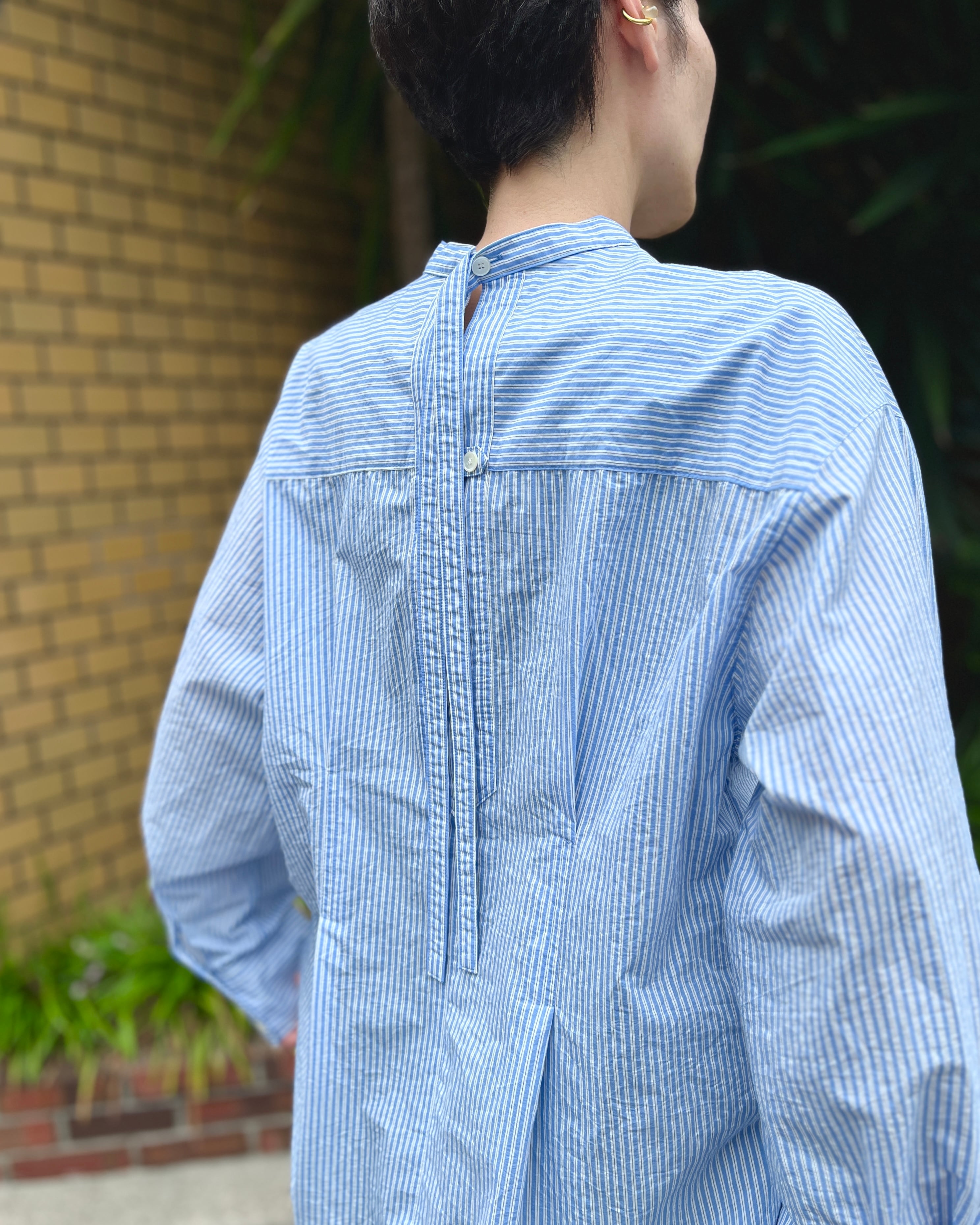 2wayデザインなので 後ろのボタンを開けて、前後逆に着れば、 スキッパーシャツのようにも楽しめます。