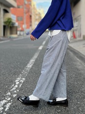 丸みのあるやさしいシルエットはそのままに、 コーディネートの幅を広げてくれる一本です。