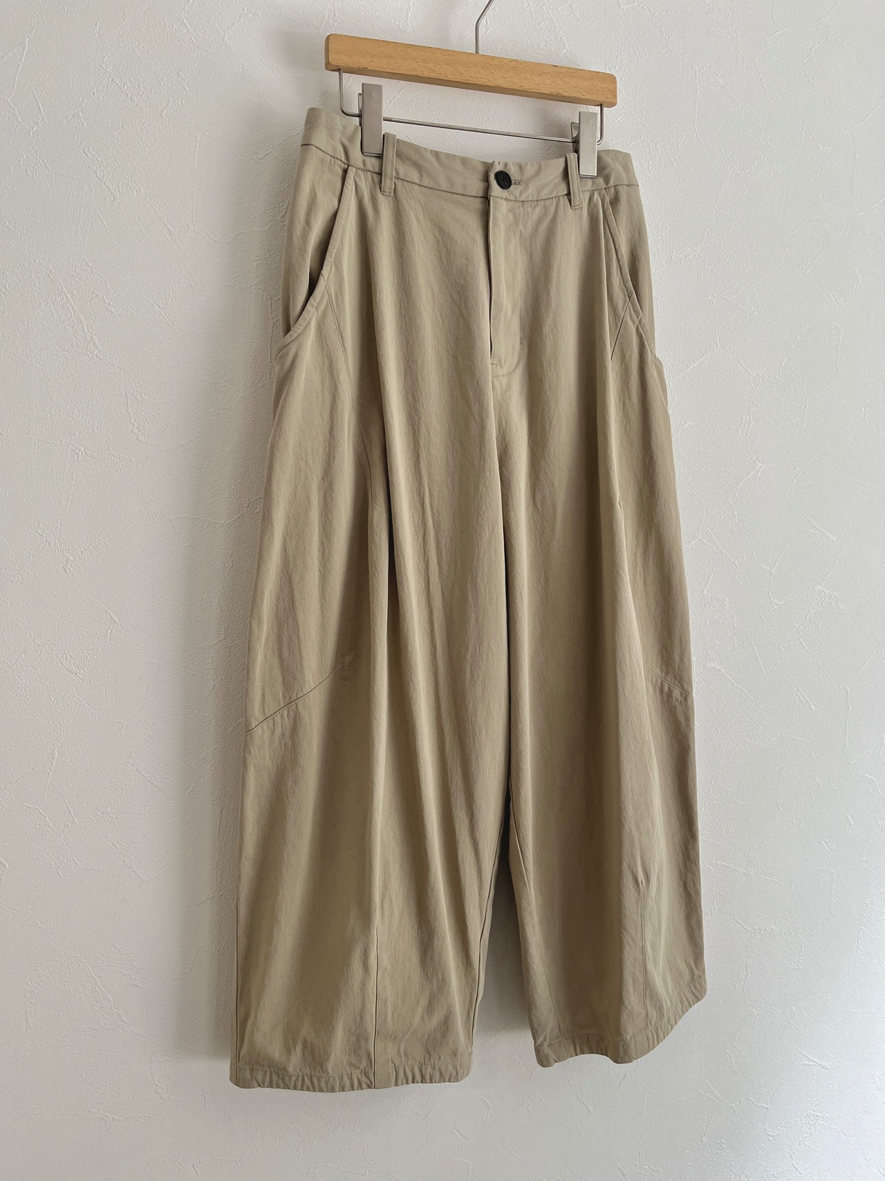 丁寧に仕上げたツイル生地のコクーンパンツ。