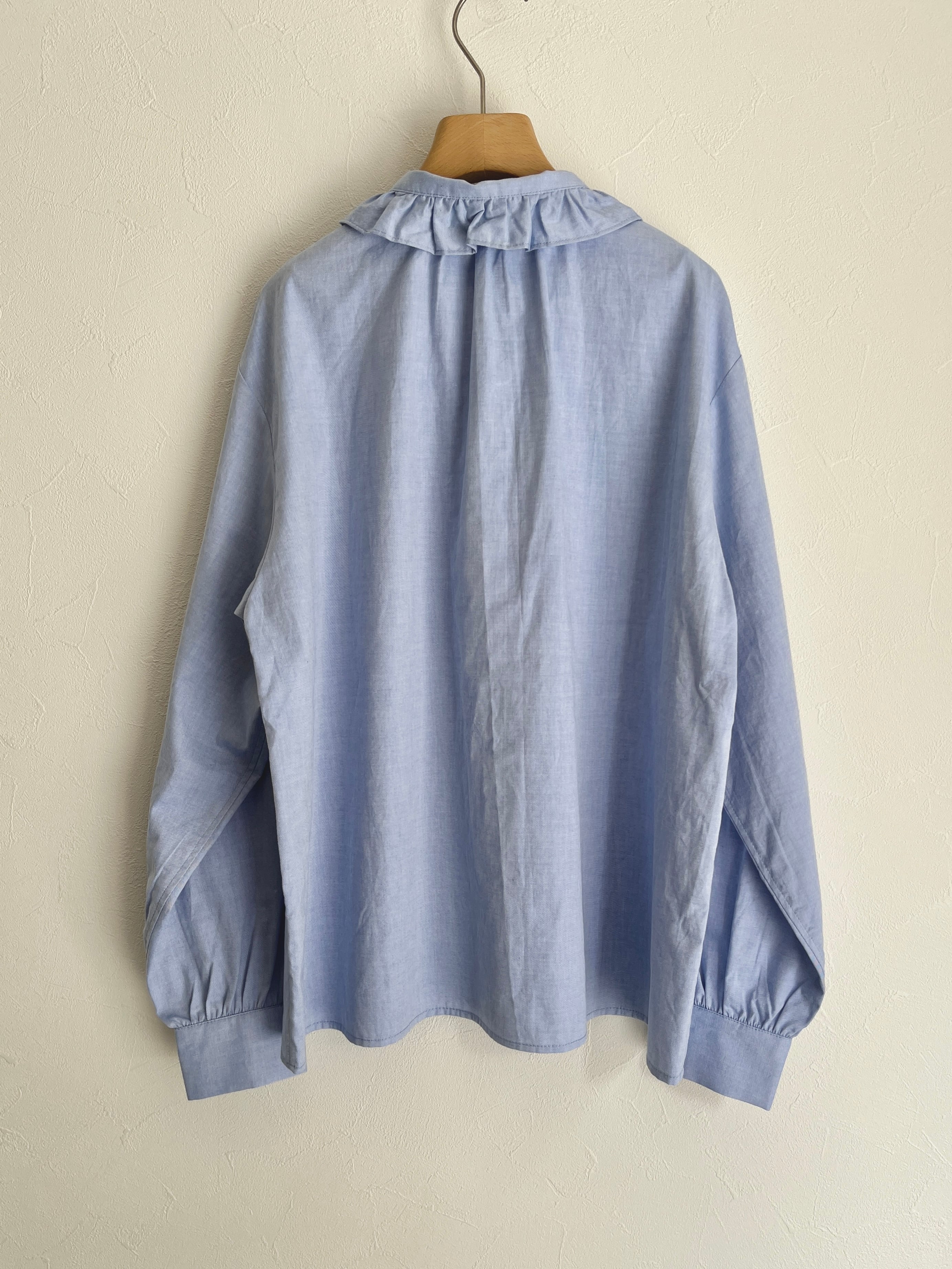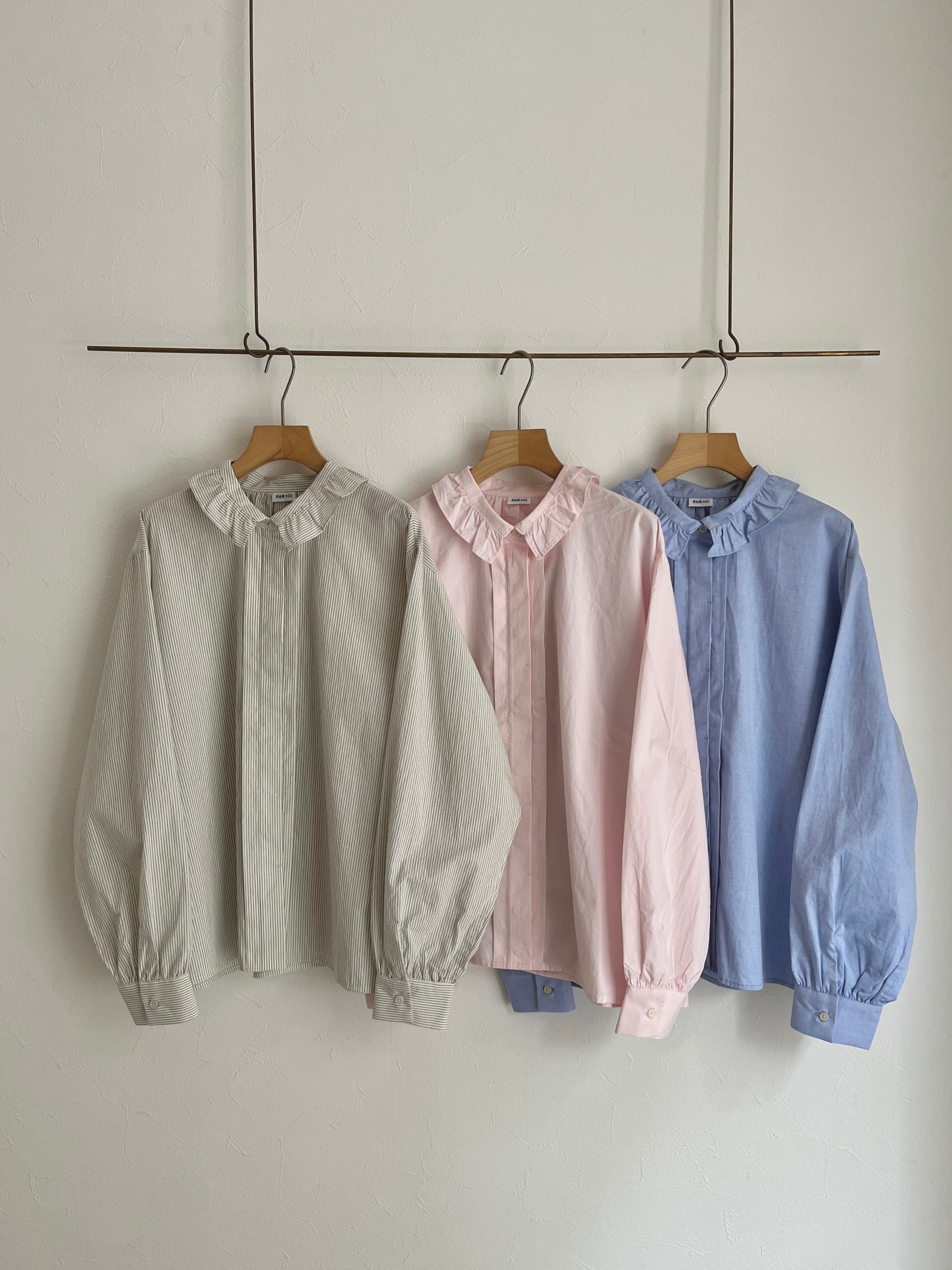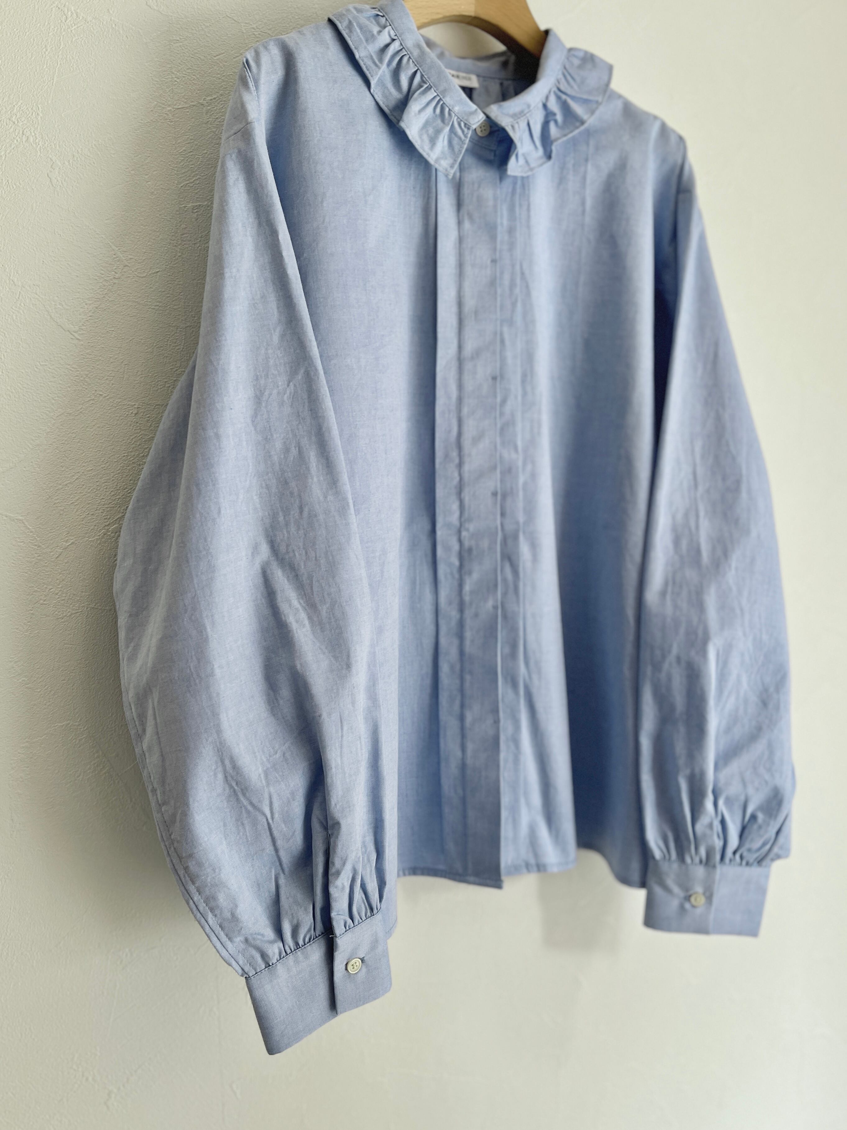 上品なフリル衿がポイントの、どこか懐かしさを感じさせるブラウス。