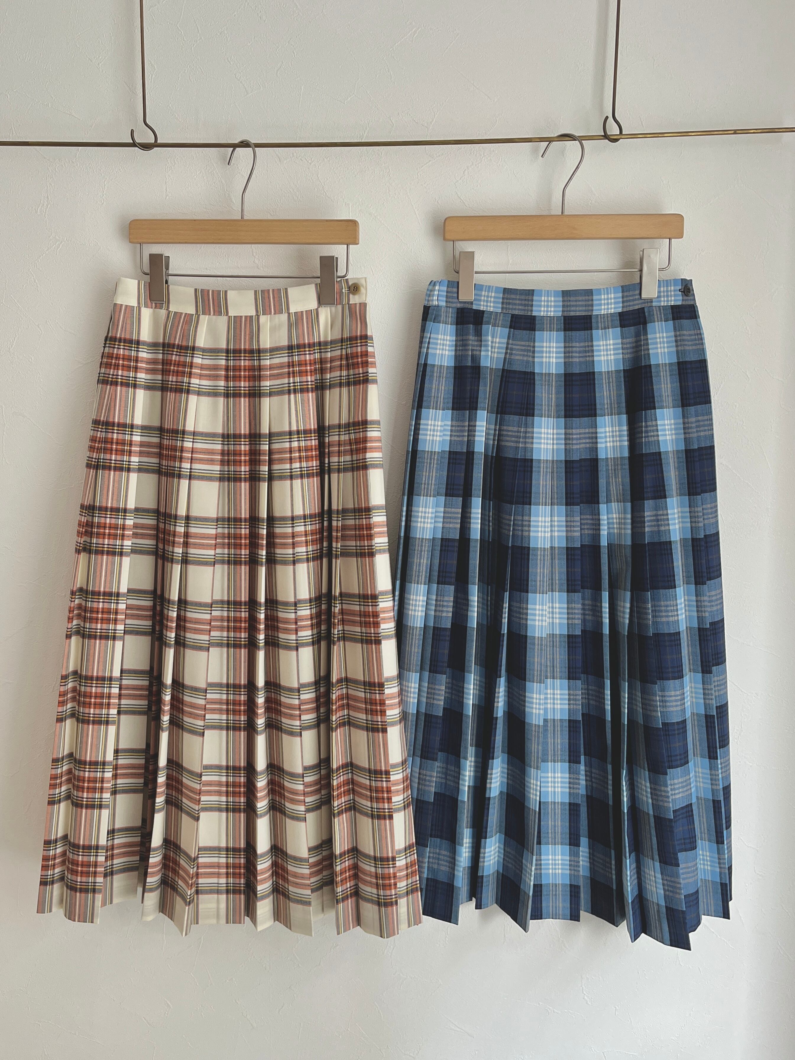 鮮やかな発色が美しい、タータンチェック柄のプリーツスカート。