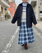 アラン編みのニットやシャツと合わせてトラッドなスタイリングはもちろん、カジュアルなスウェットやカットソーと合わせて少し外したコーディネートもおすすめ。