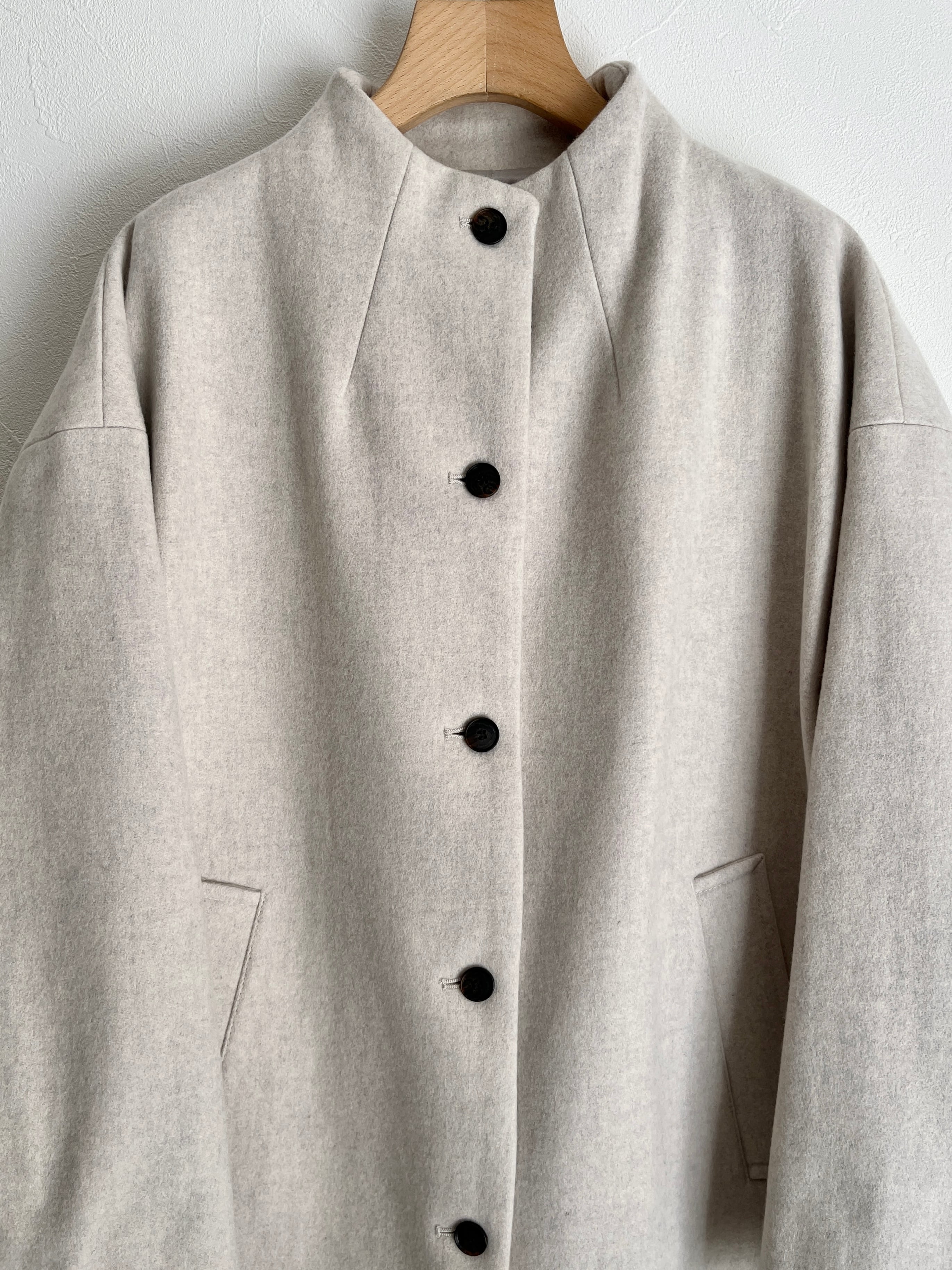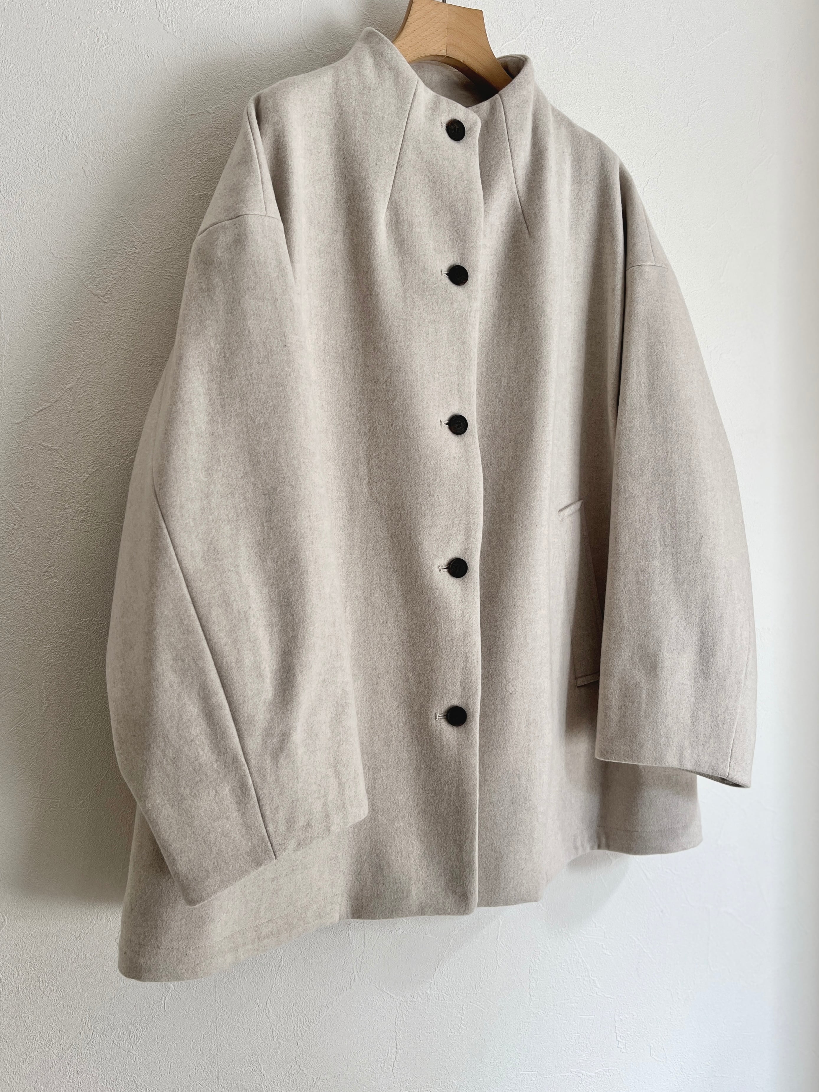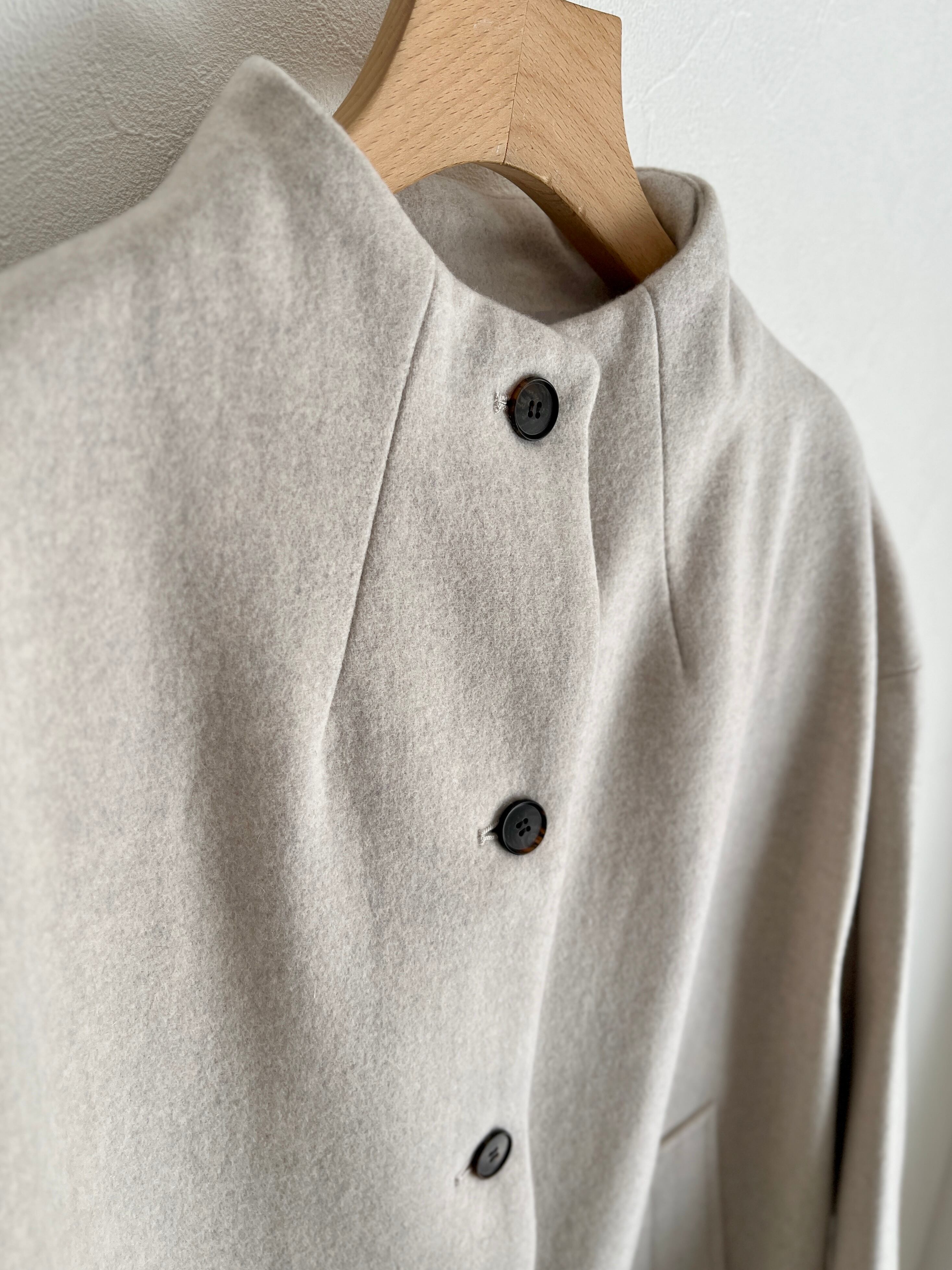 繊維の長いウールを贅沢に使用し、尾州で丁寧に織り上げたyuni定番のスーパー100の ボトルネックコート 。