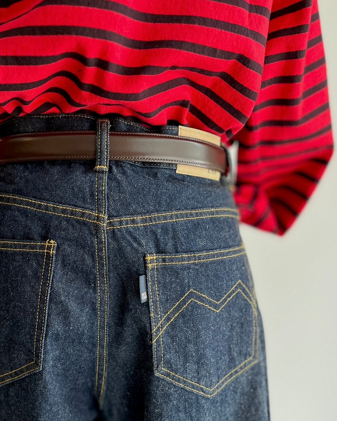 定番の牛革ナローベルト(0101BT001231)よりもぷっくりと太めにお作りすることで、存在感のあるベルトに仕上がっています。