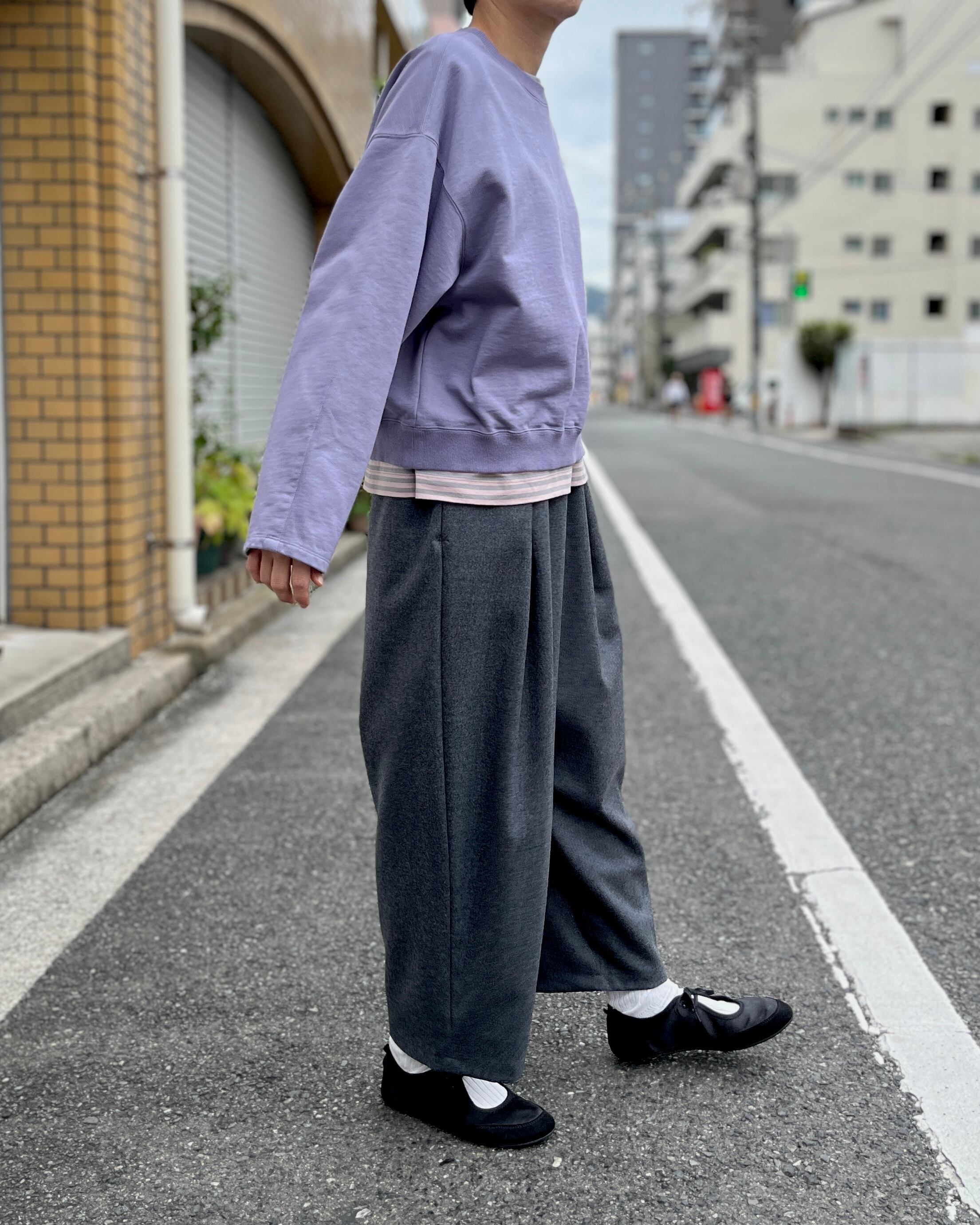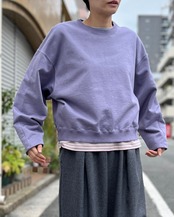 ショート丈のプルオーバーは、リブで軽く腰をしぼって、ブラウジングするように着ると、バランスがぐっと新鮮に。