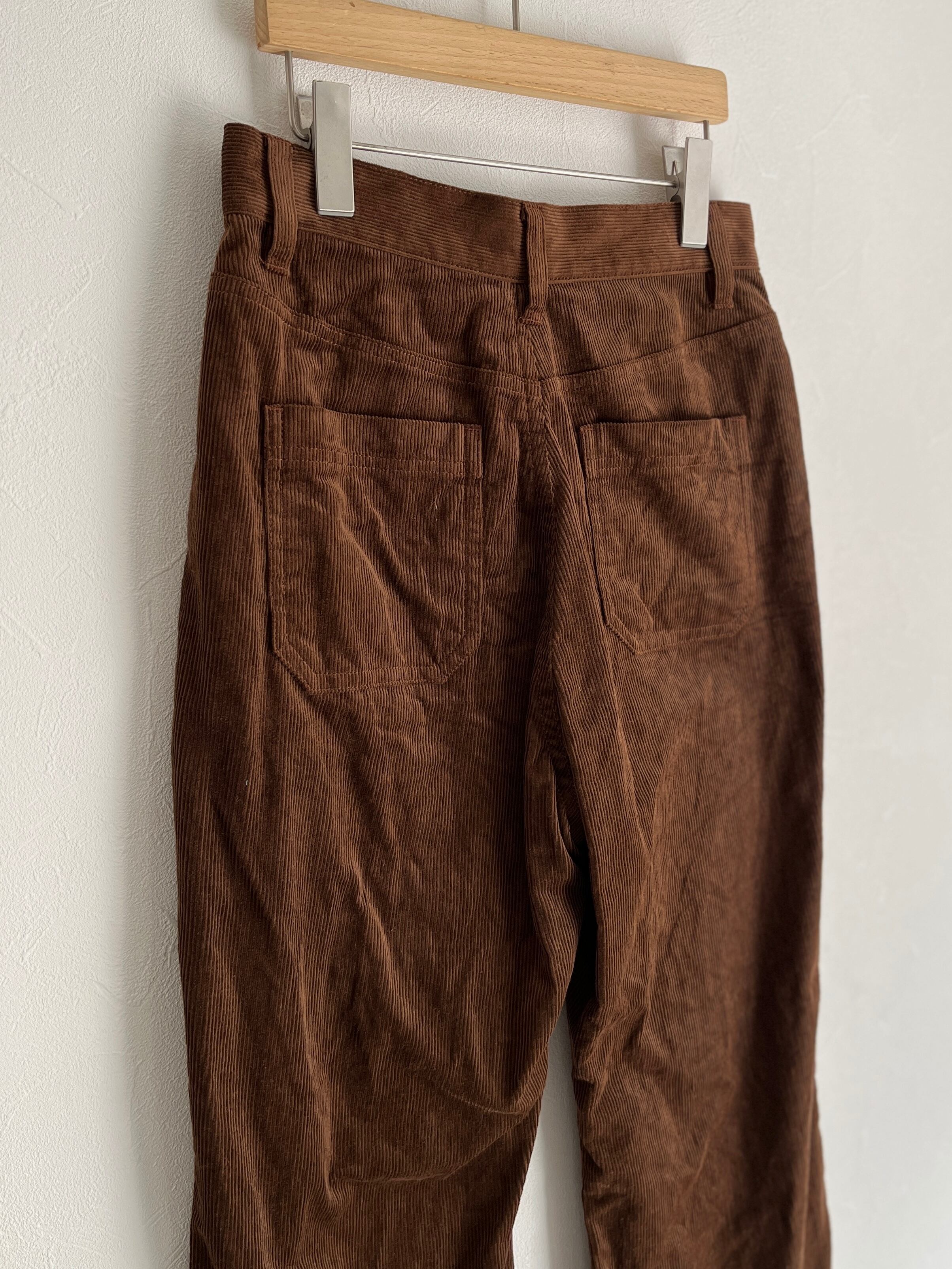 14Wの細めのコーデュロイを使用することで、カジュアルになり過ぎず、スッキリとレディライクな雰囲気に落とし込みました。