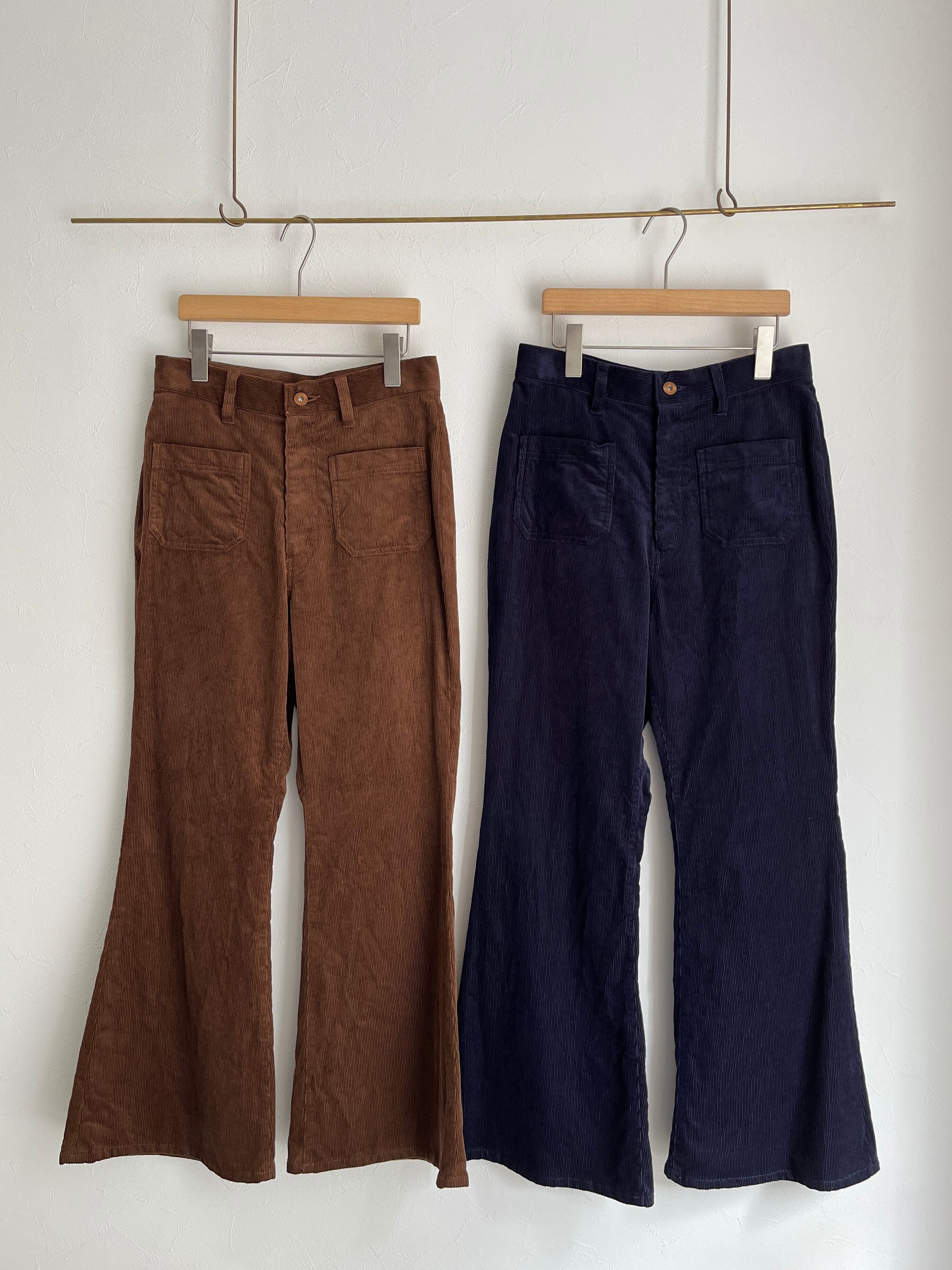 秋冬らしい季節感のあるコーデュロイを使用したフレアパンツ。