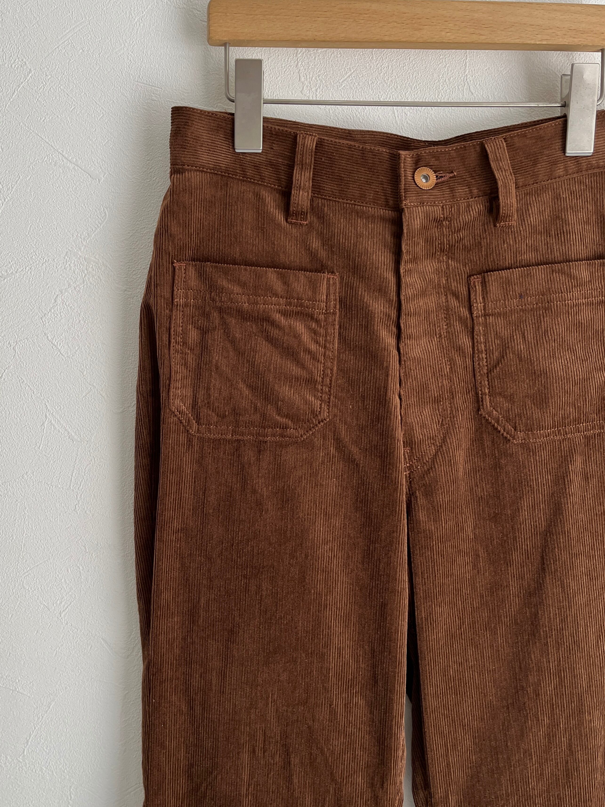 自然に広がるフレアのシルエットやパッチポケットなどレトロなディテールを用いてCHILD WOMANらしいパンツに仕上がっています。