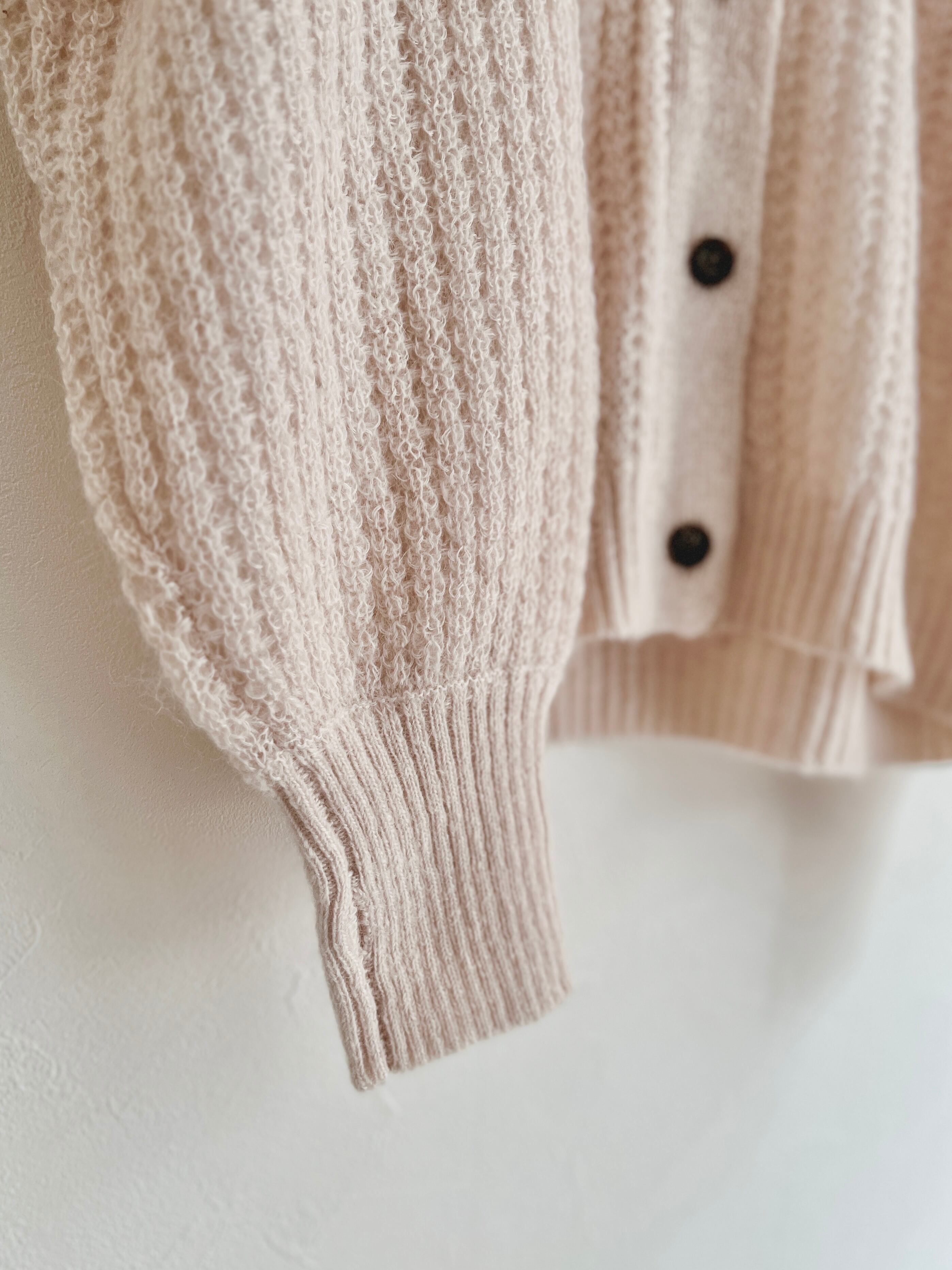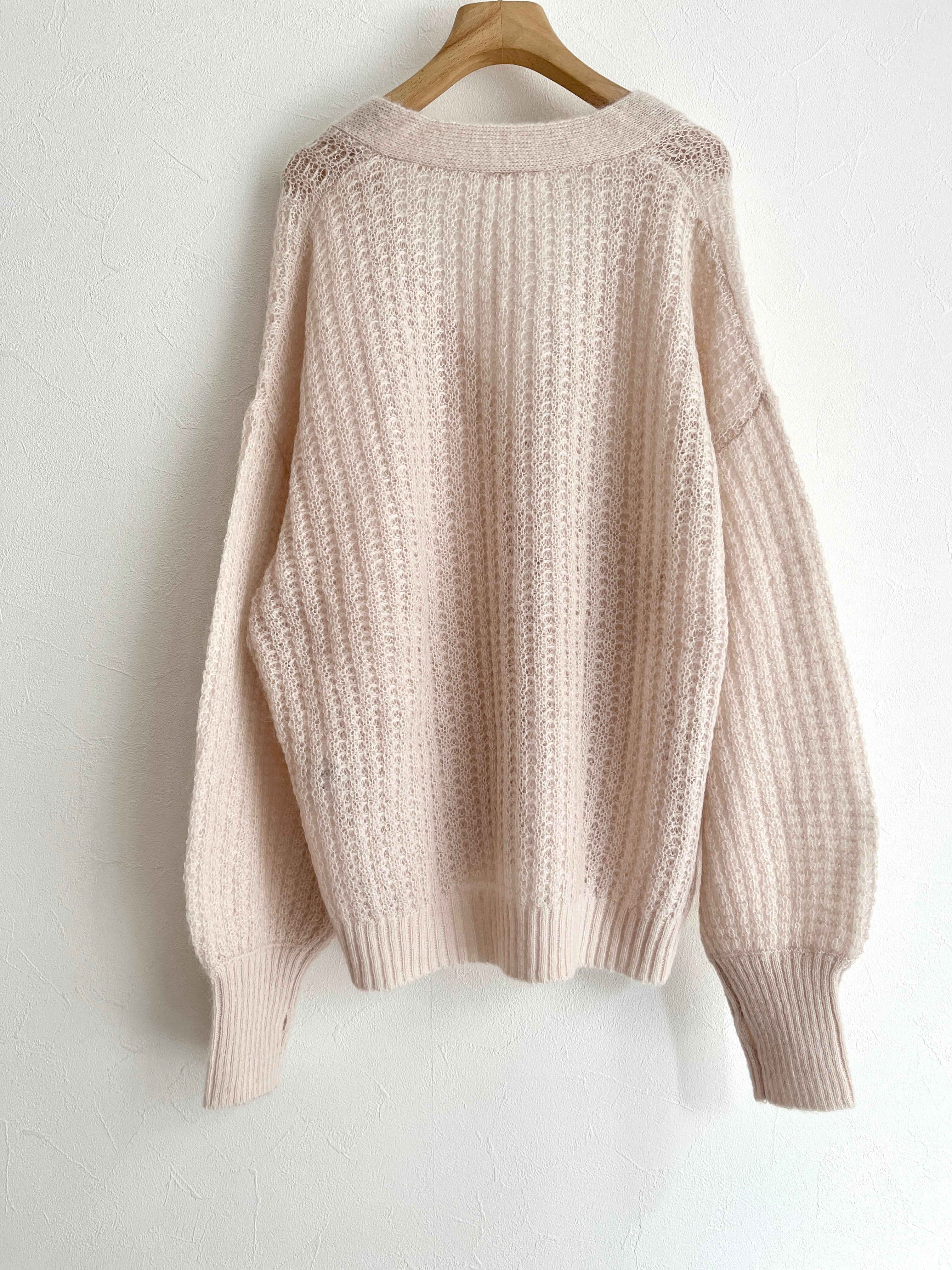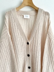 キッドモヘアにウールとナイロンを撚り合わせ、甘く編み上げた軽やかで毛足のあるニットのオーバーサイズカーディガン。