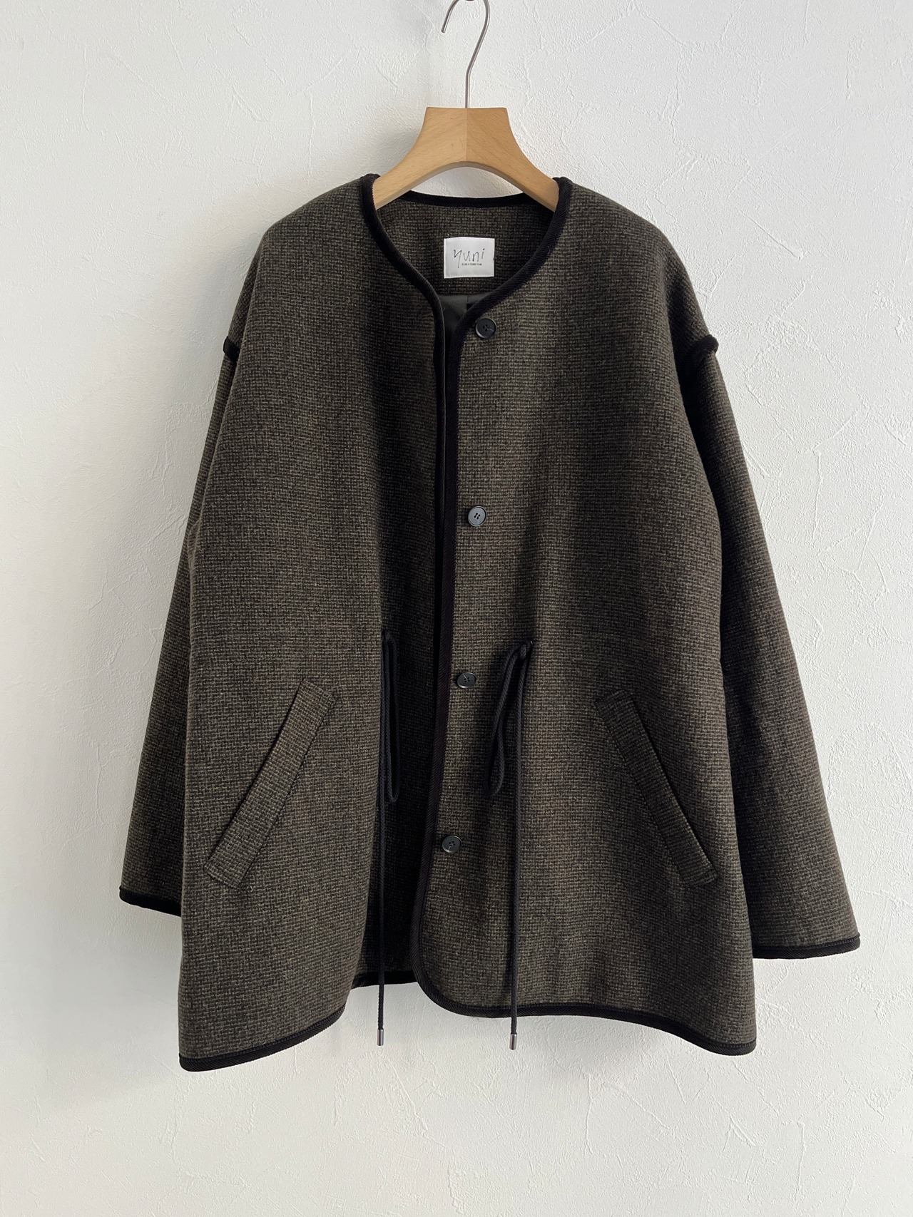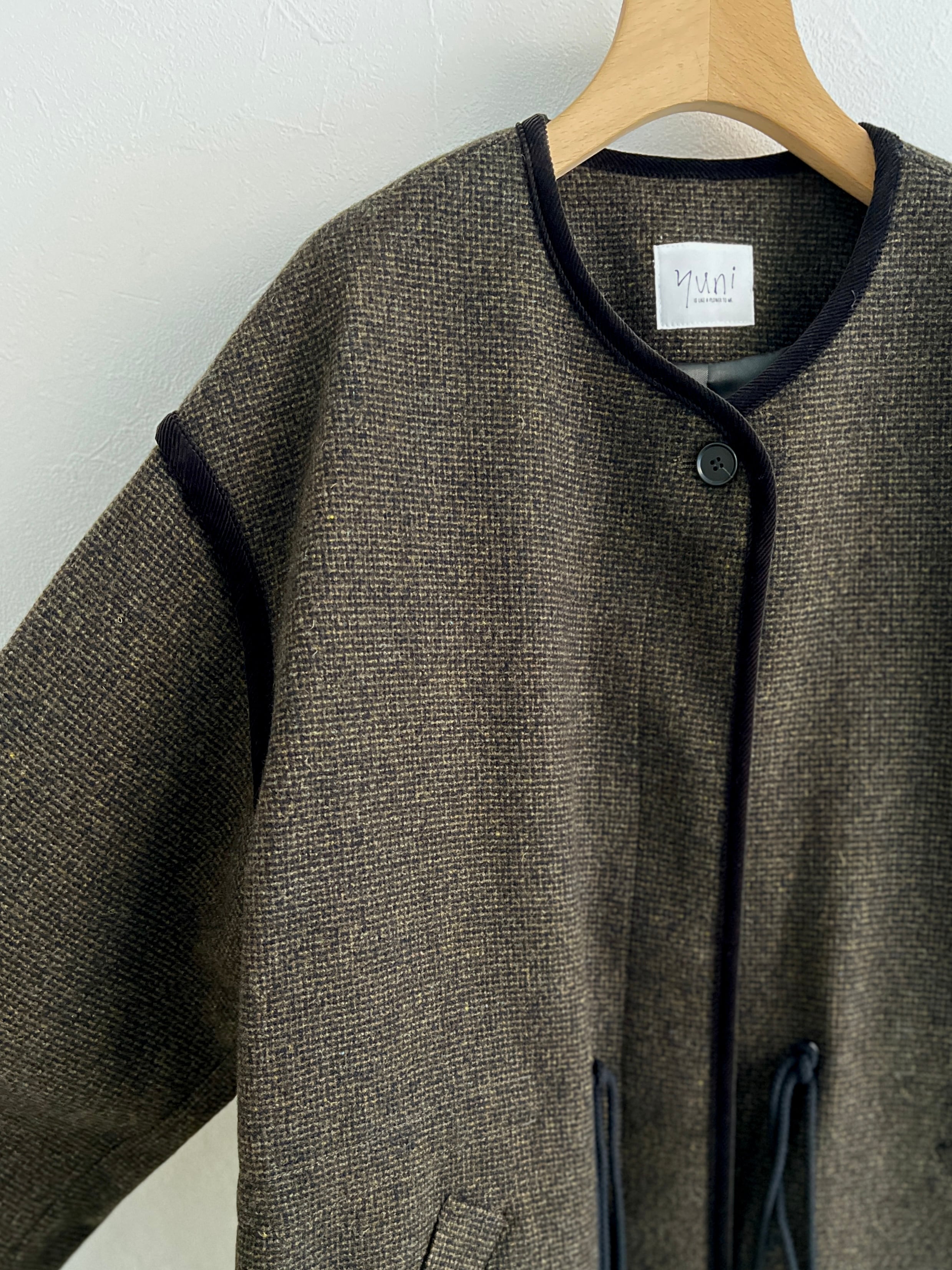 尾州で織られた、イギリスの上質な羊毛を使ったツウィード生地のコート。