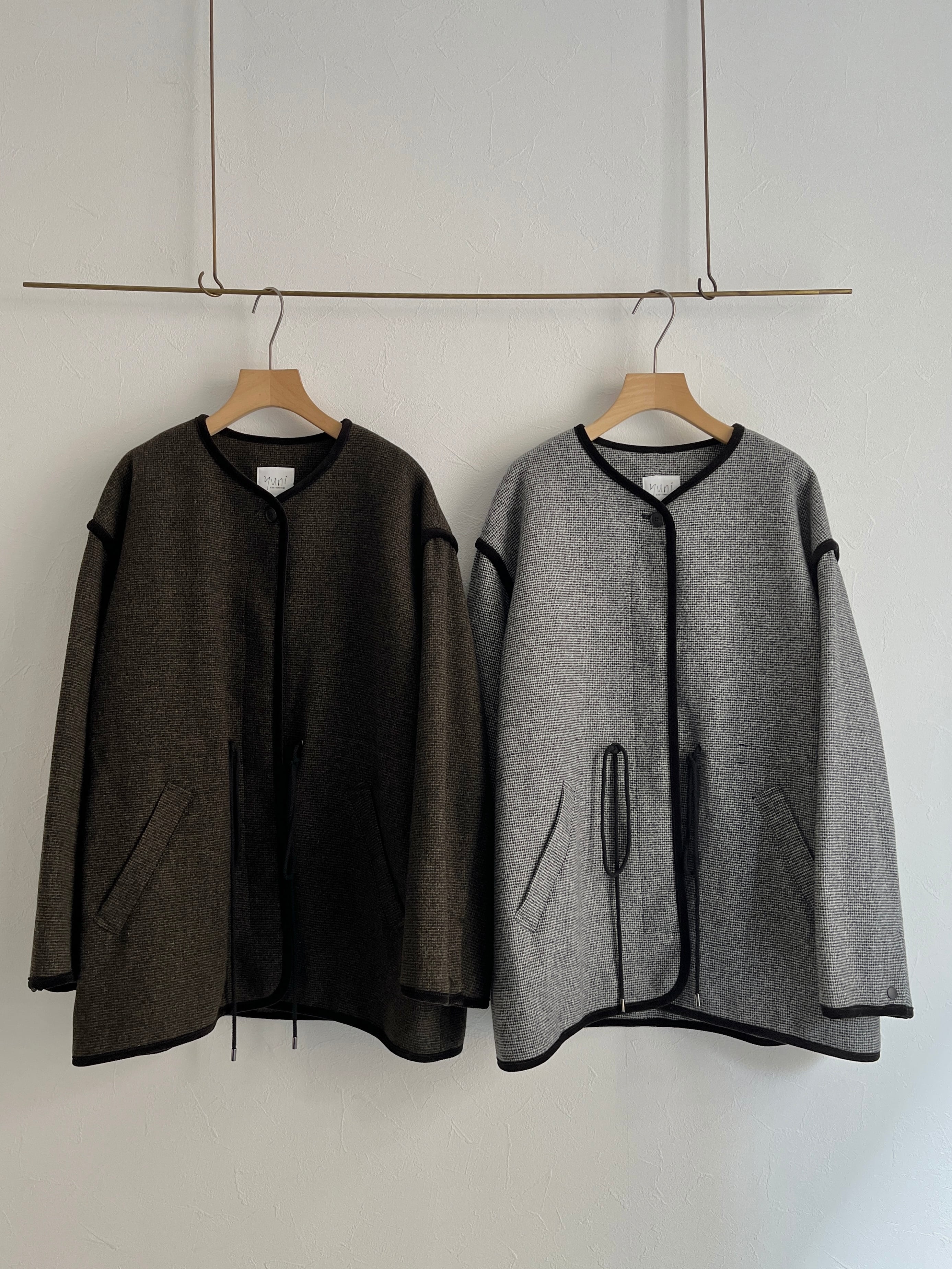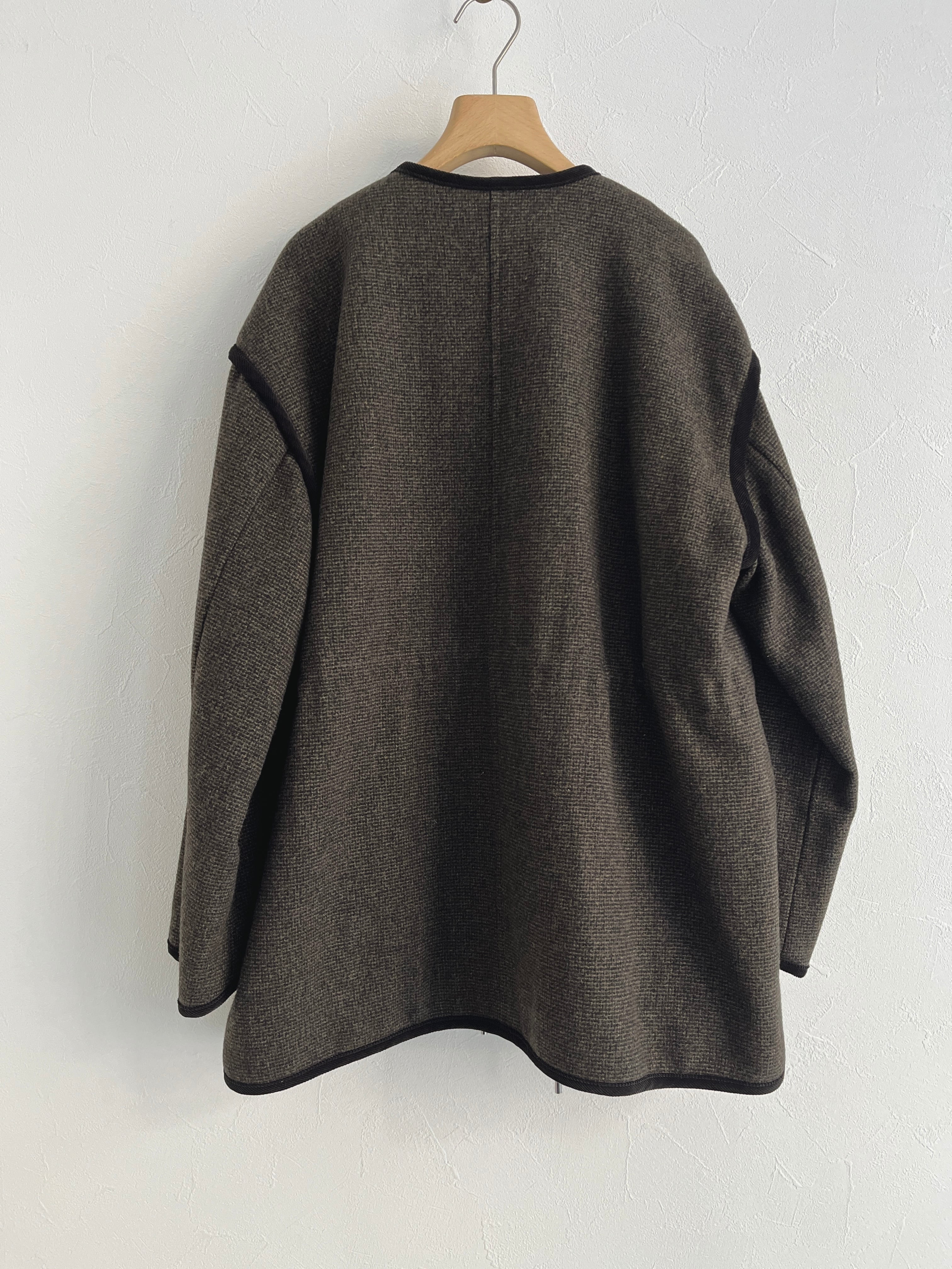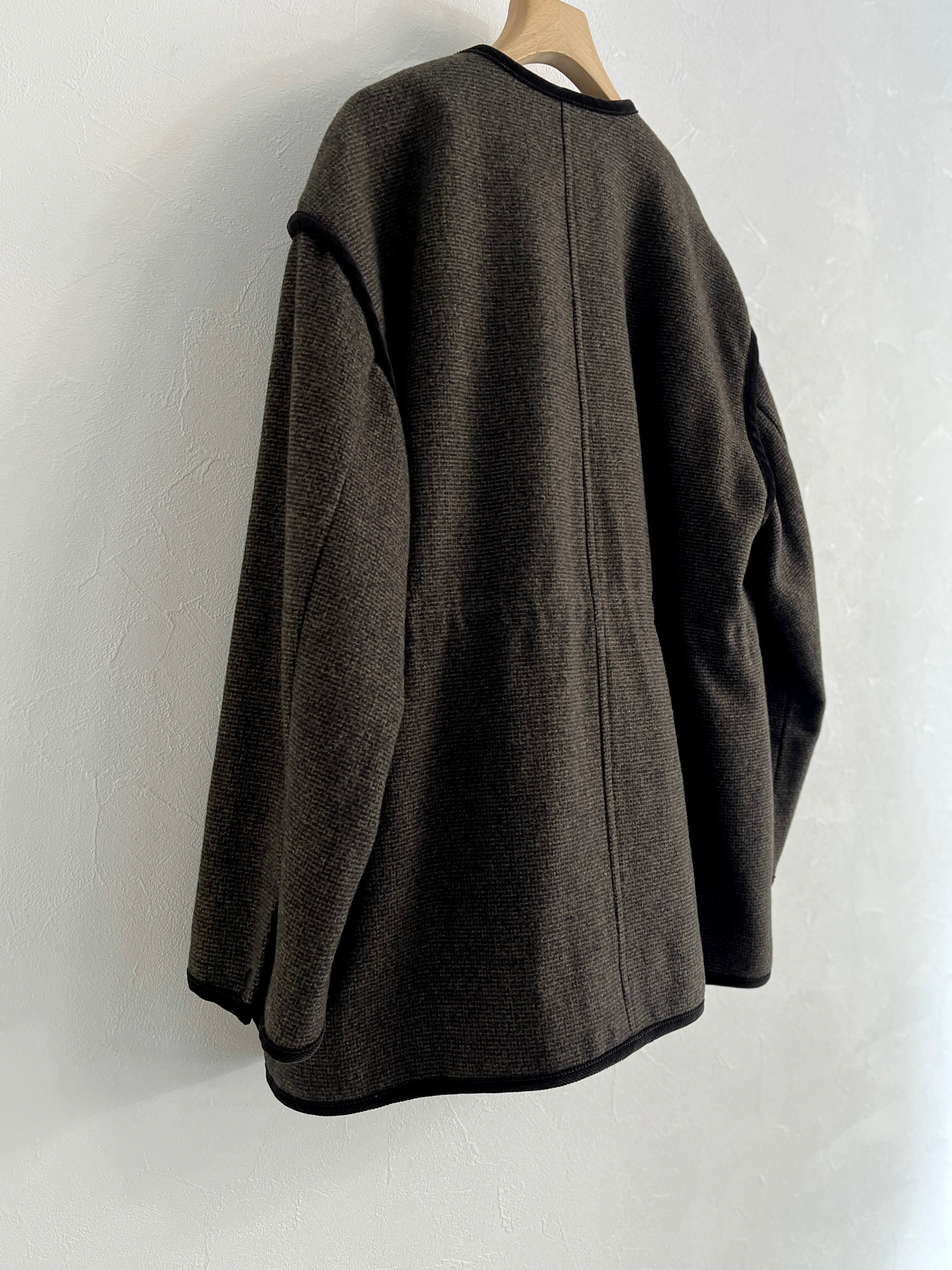 でも、ノーカラーに仕立てることで軽やかに羽織れ、しっかりとした見た目なのに着ると抜け感があるのも魅力です。