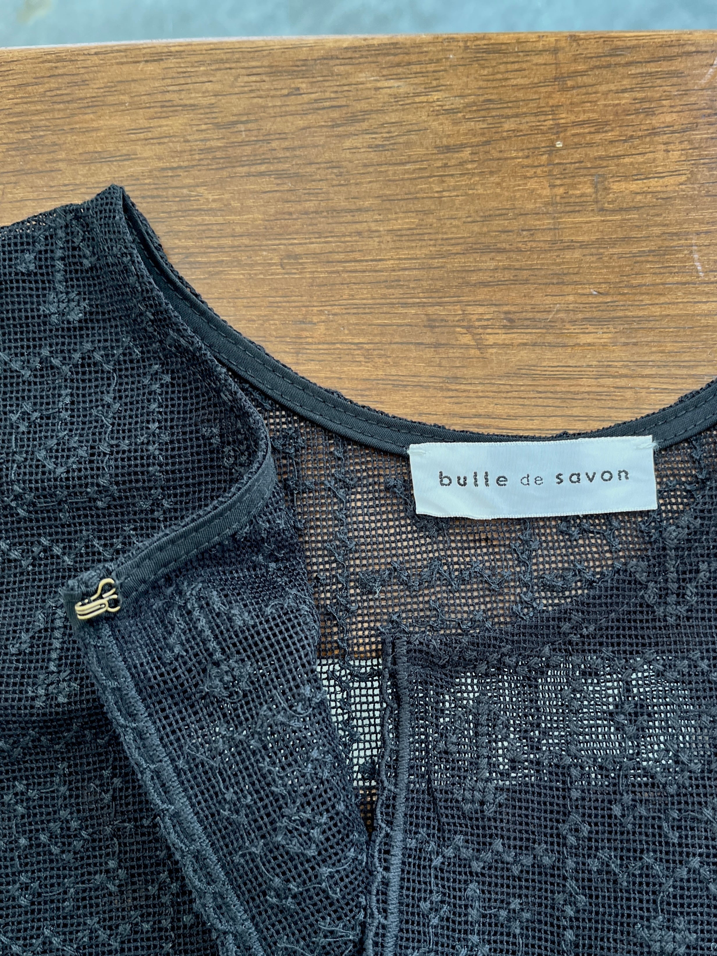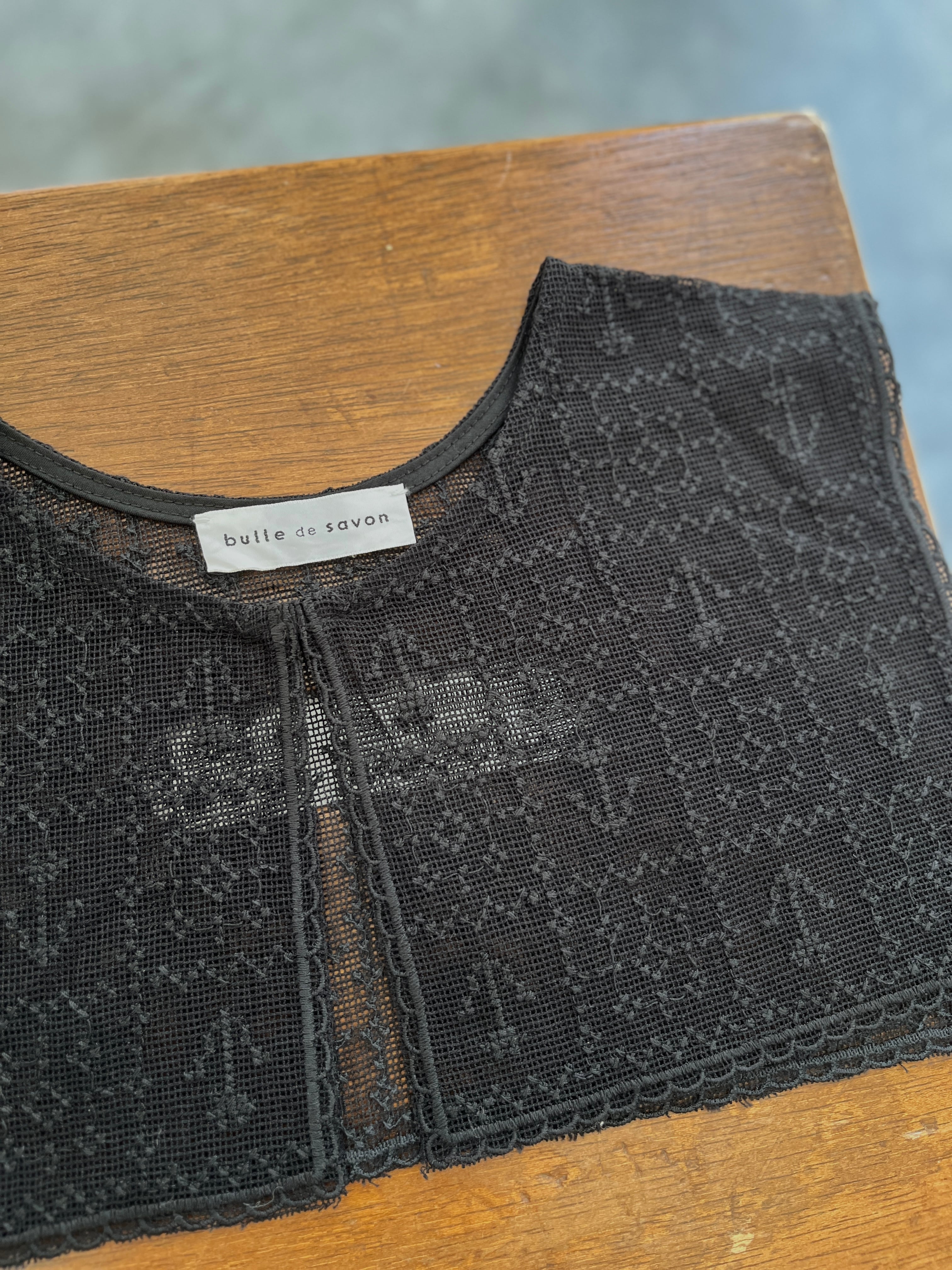 メッシュ生地にオリジナルのクロスステッチを施したレース。