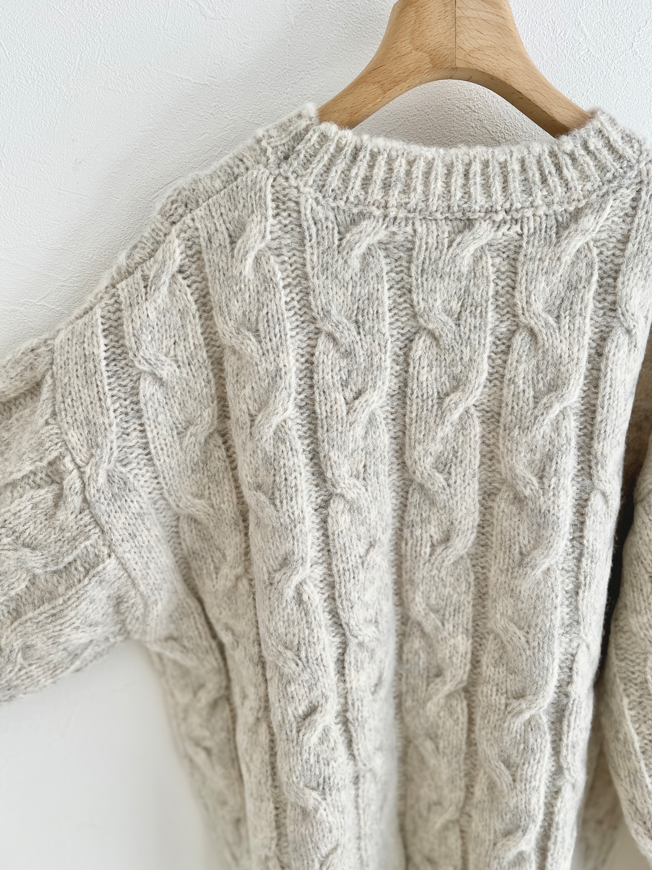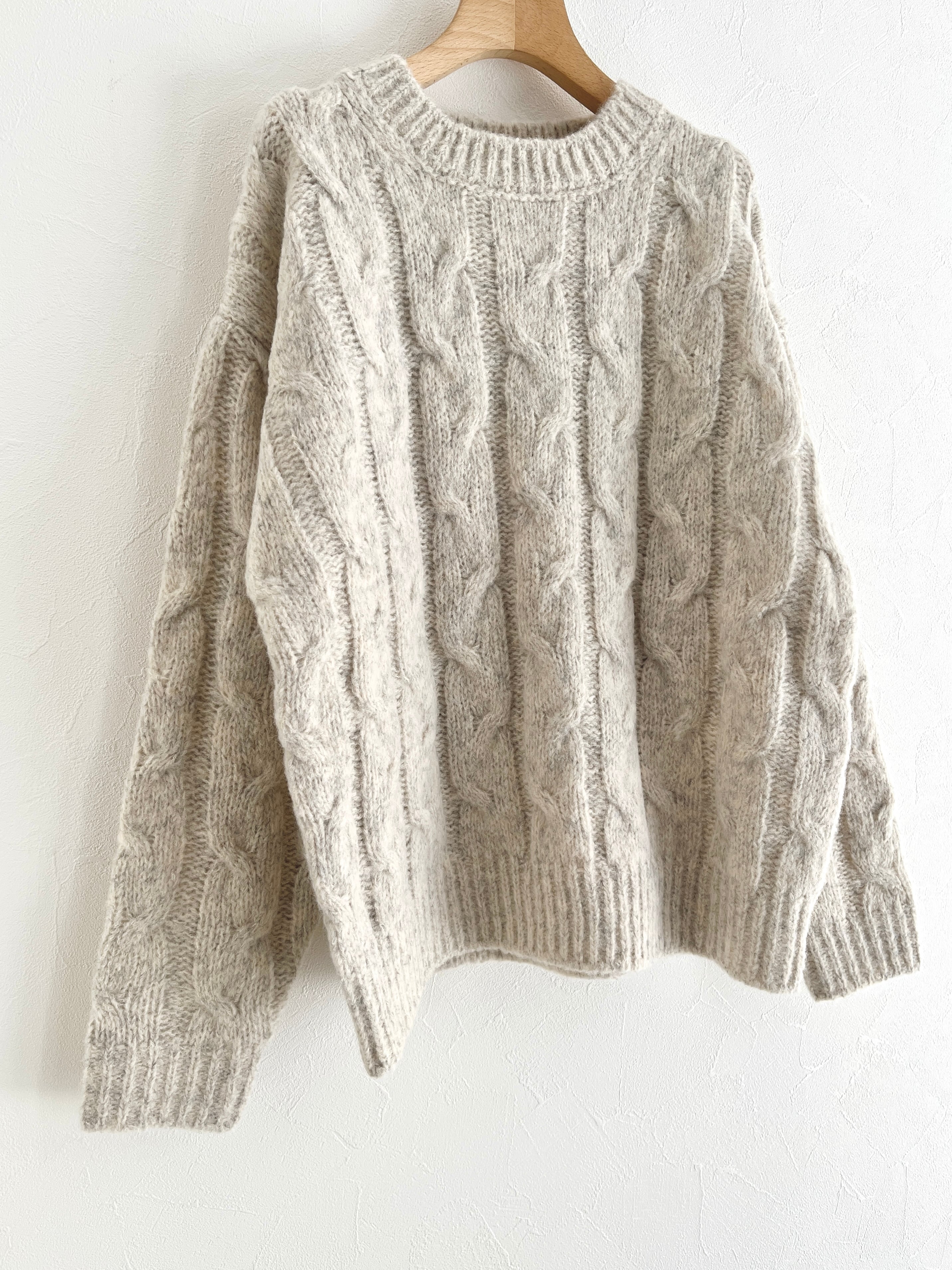 「あぁ、いいな」と思えるような素材で太めに編み込んだアラン模様が、