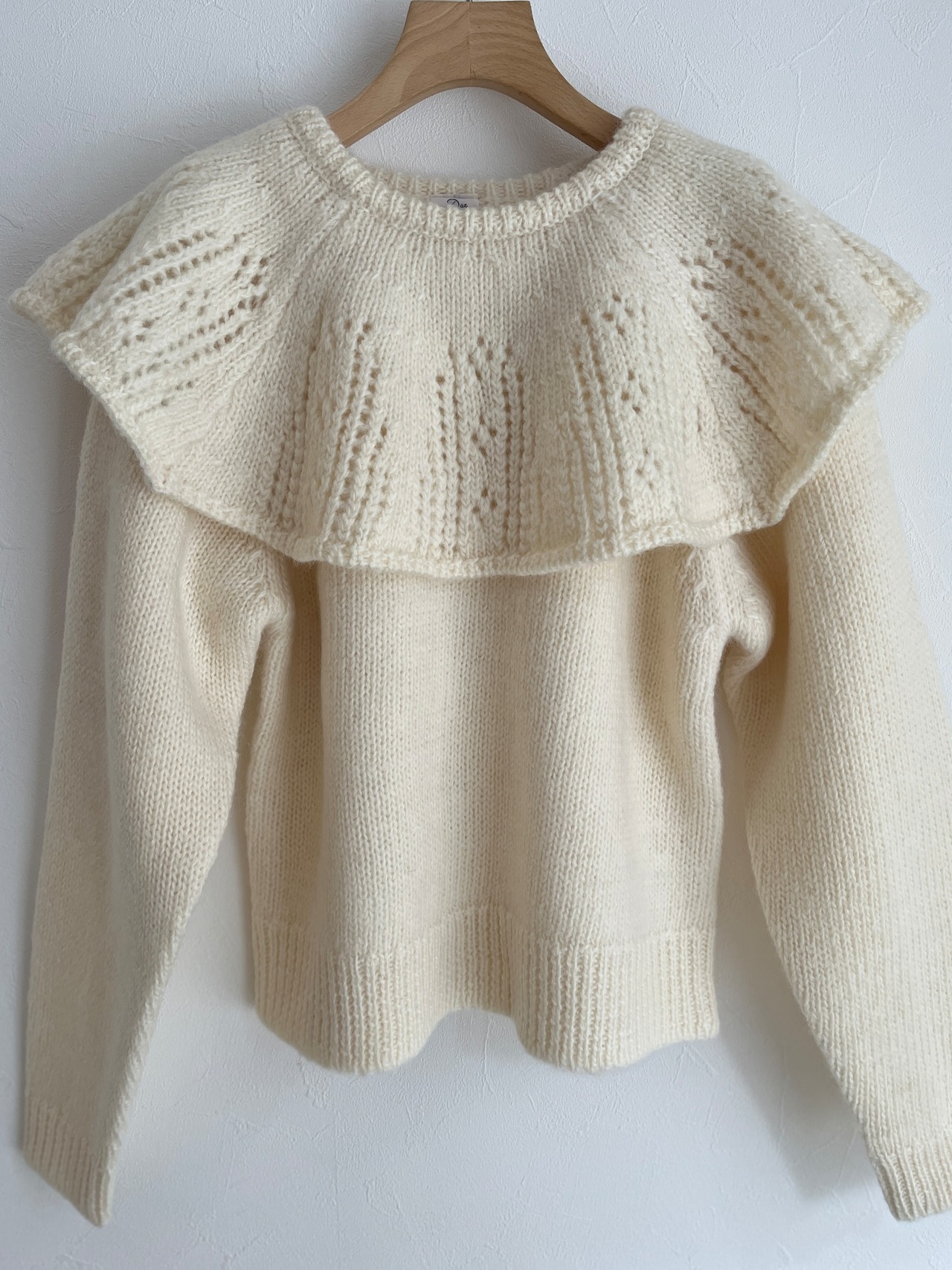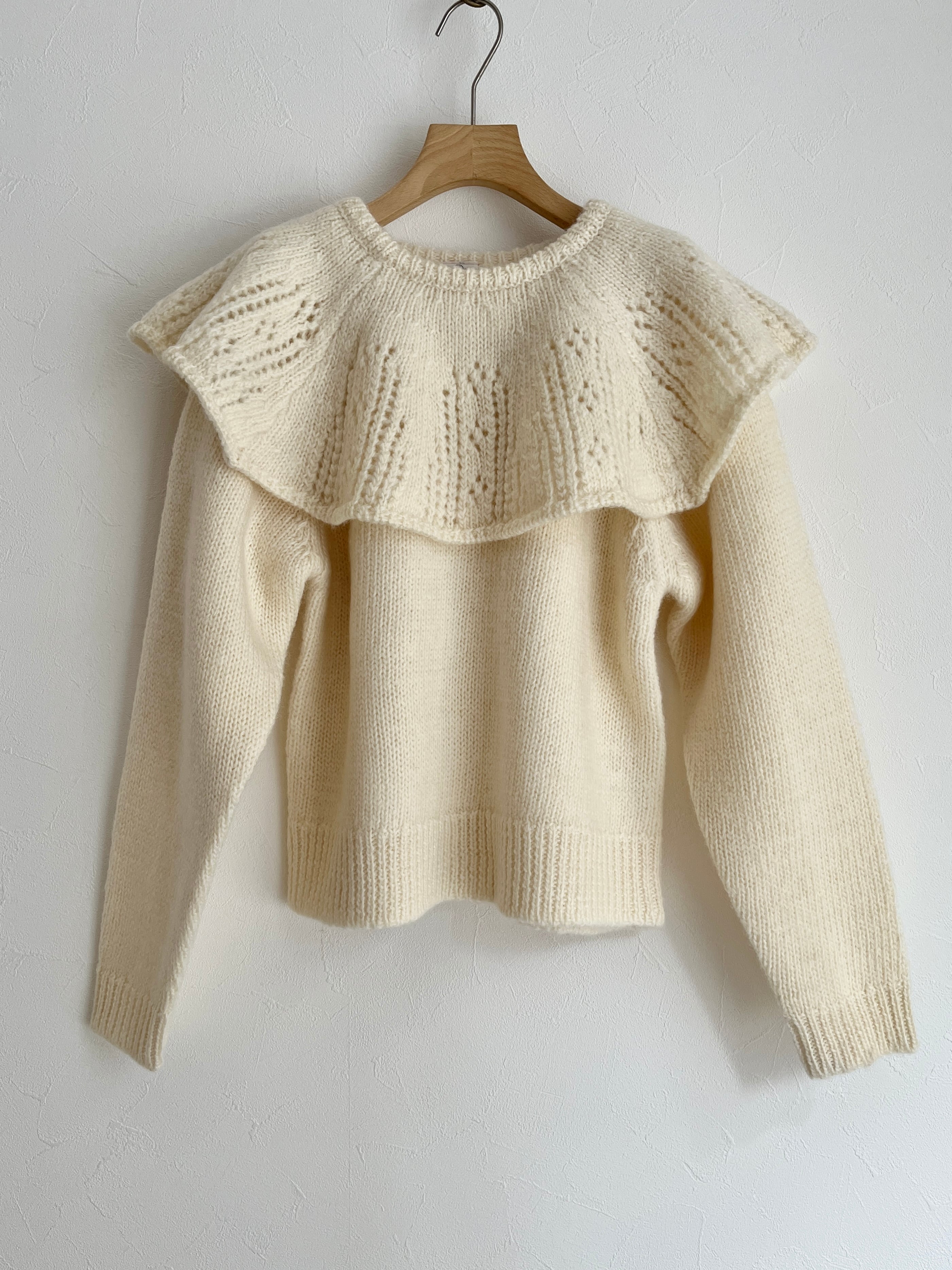 レトロな雰囲気漂う、ケープ襟のニットプルオーバー。