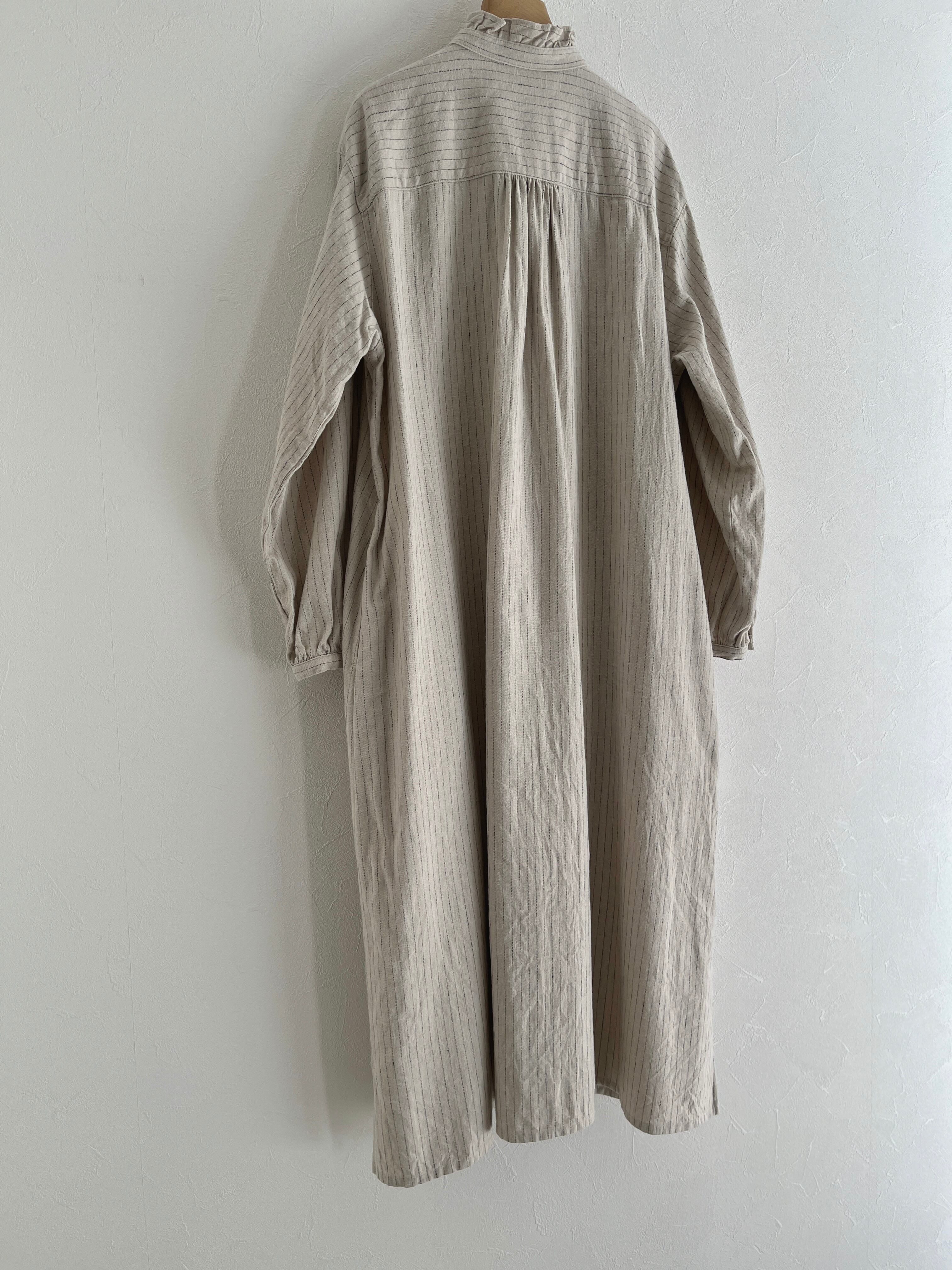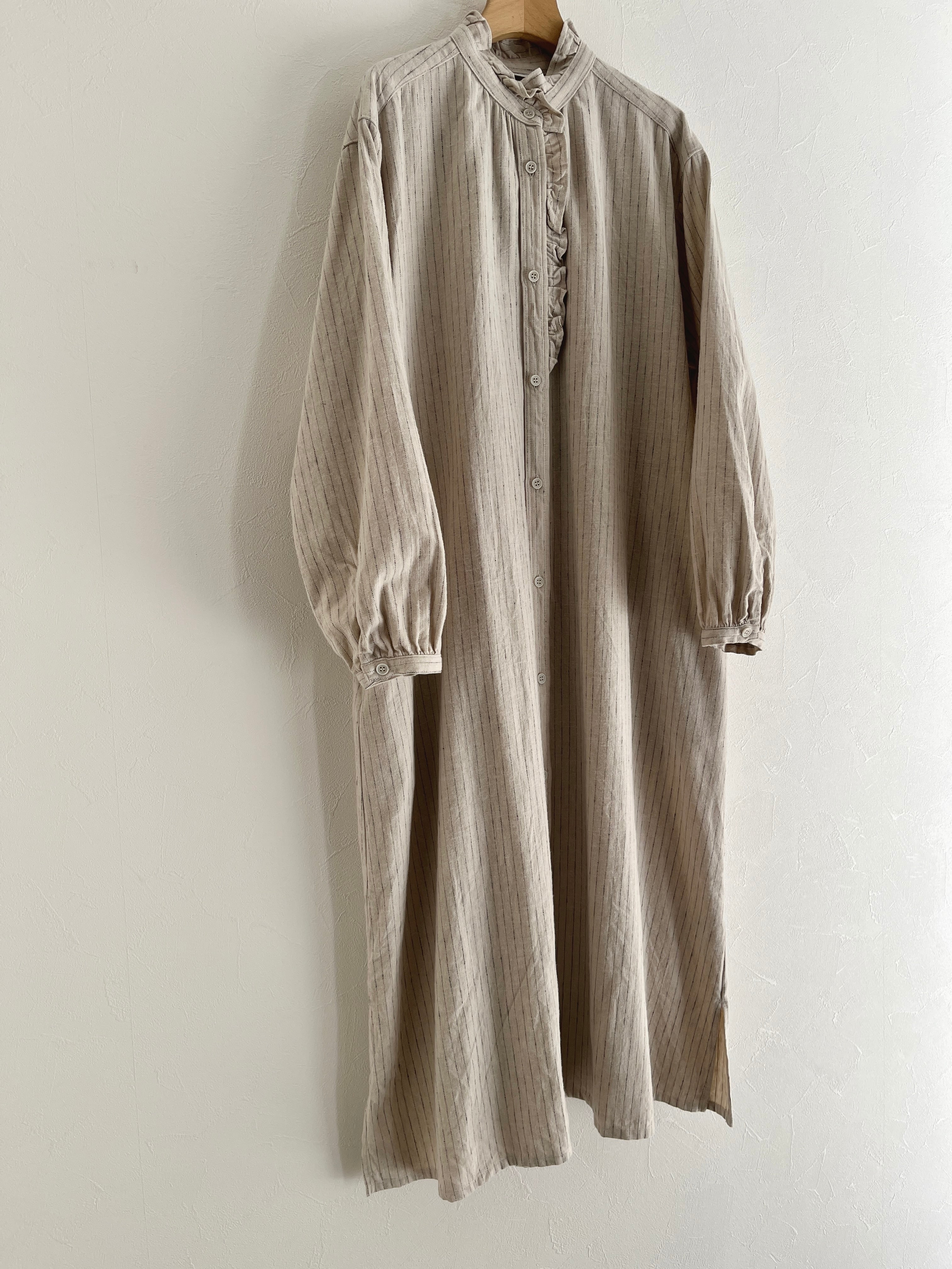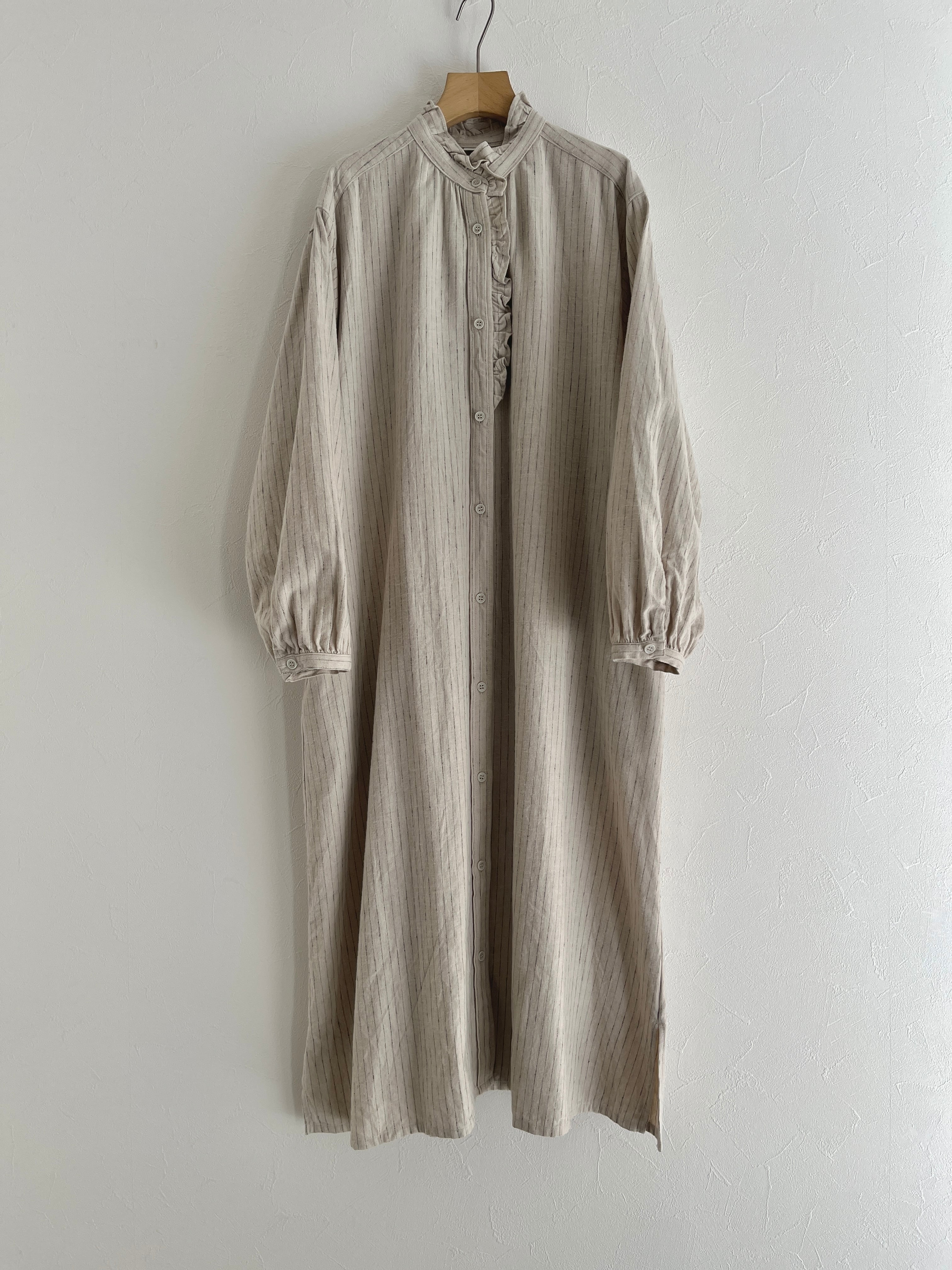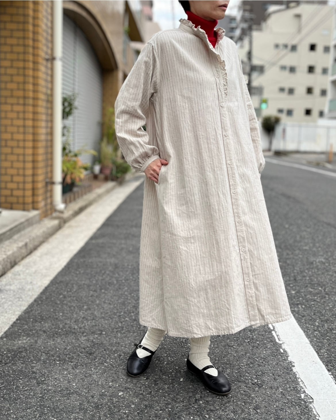 肌触りの良いコットンリネンウール素材で作ったフリルシャツワンピース。