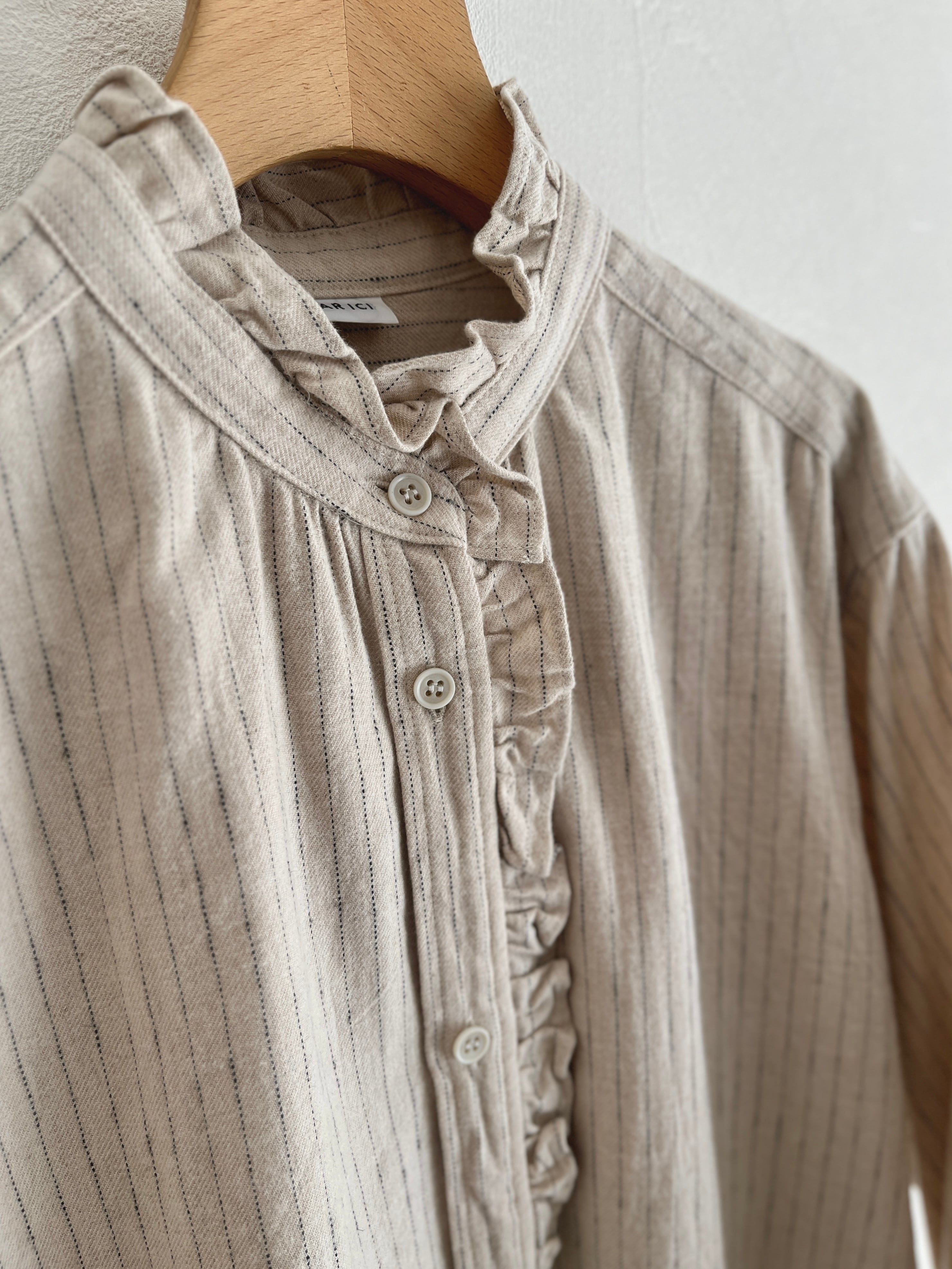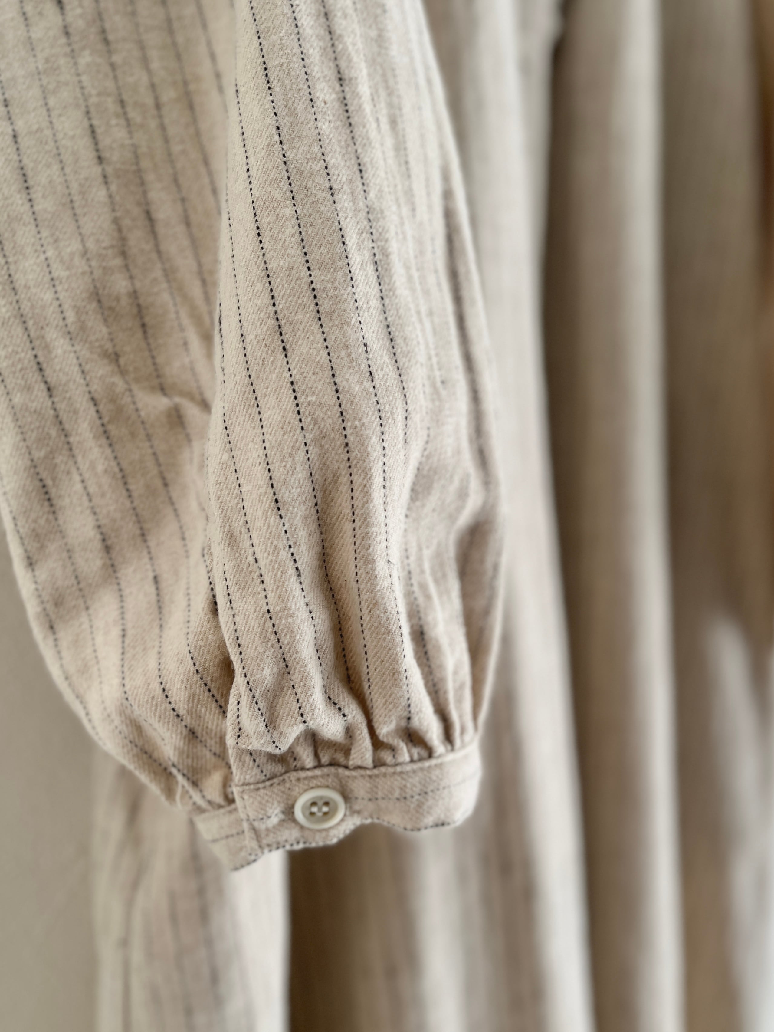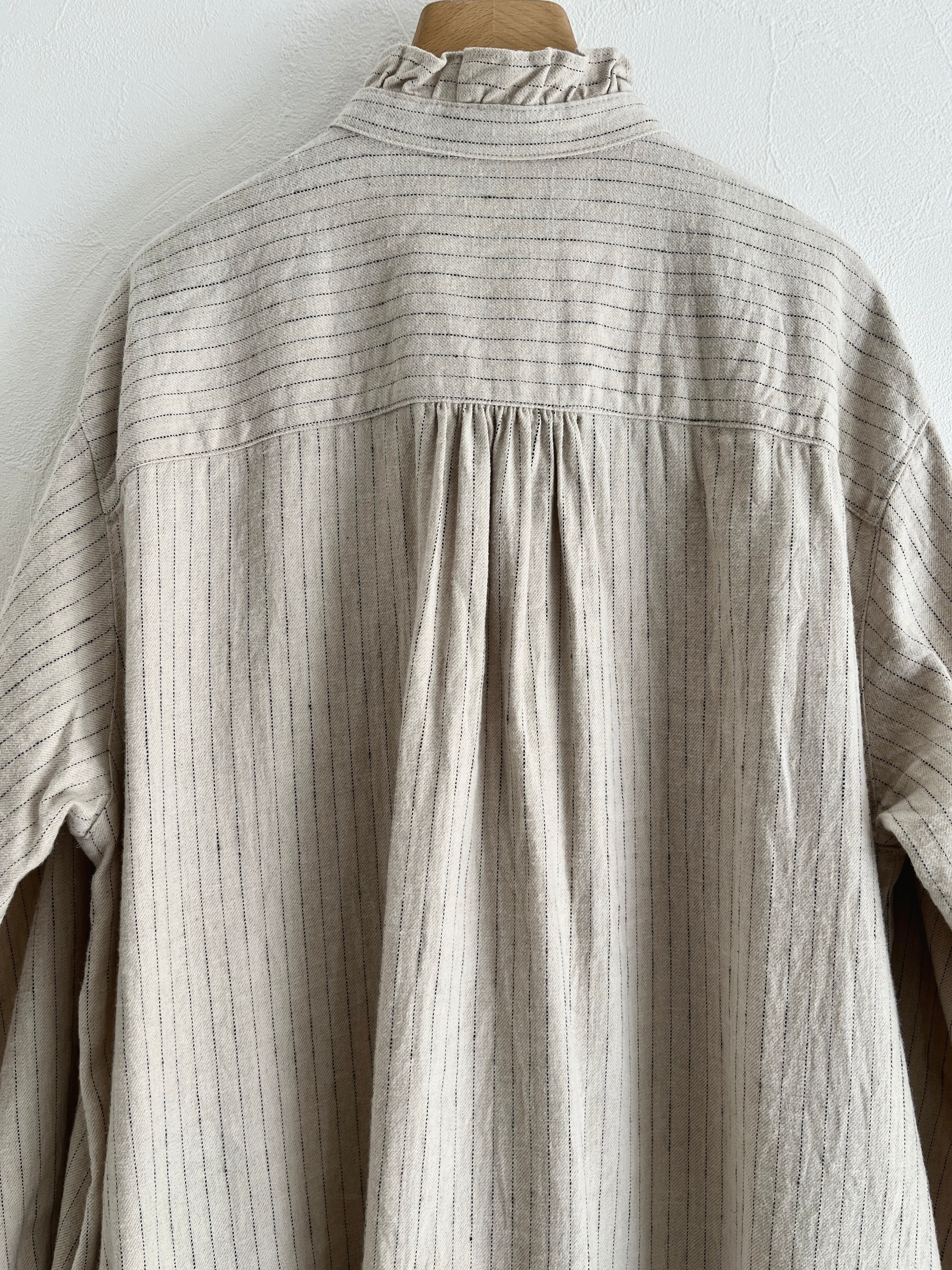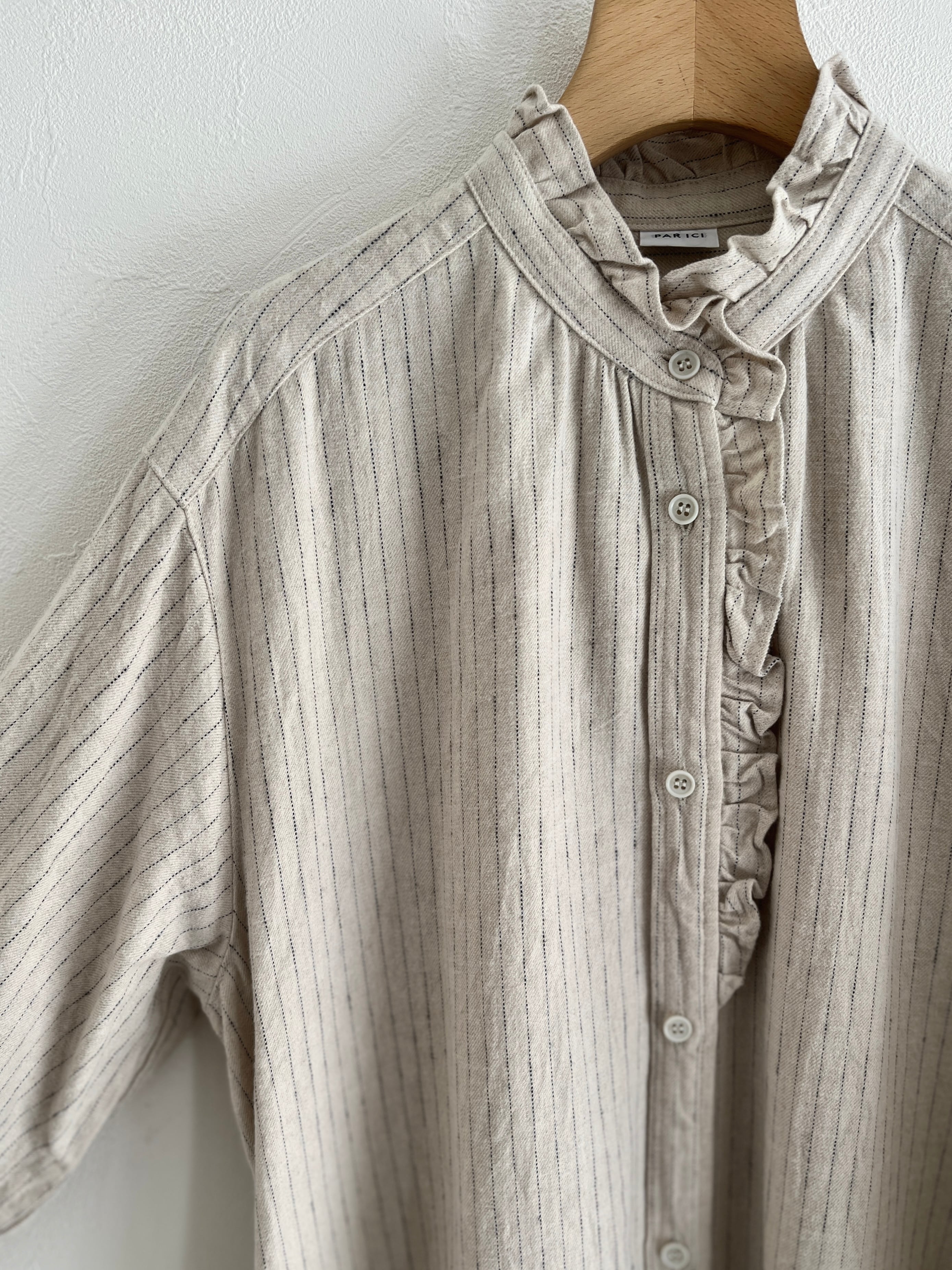 肌触りの良いコットンリネンウール素材で作ったフリルシャツワンピース。