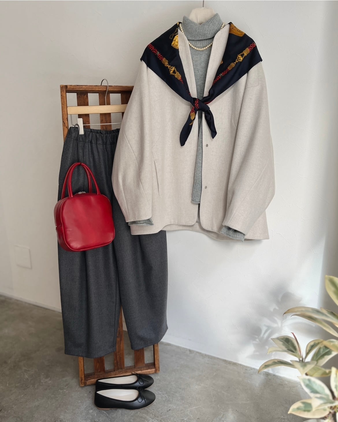 しっかりとマチがあるのでコンパクトなサイズ感でも収納力が高く、500mlのペットボトルも収納可能。持ち手も程よい長さなので、コートなど厚着をしても腕を通せます。