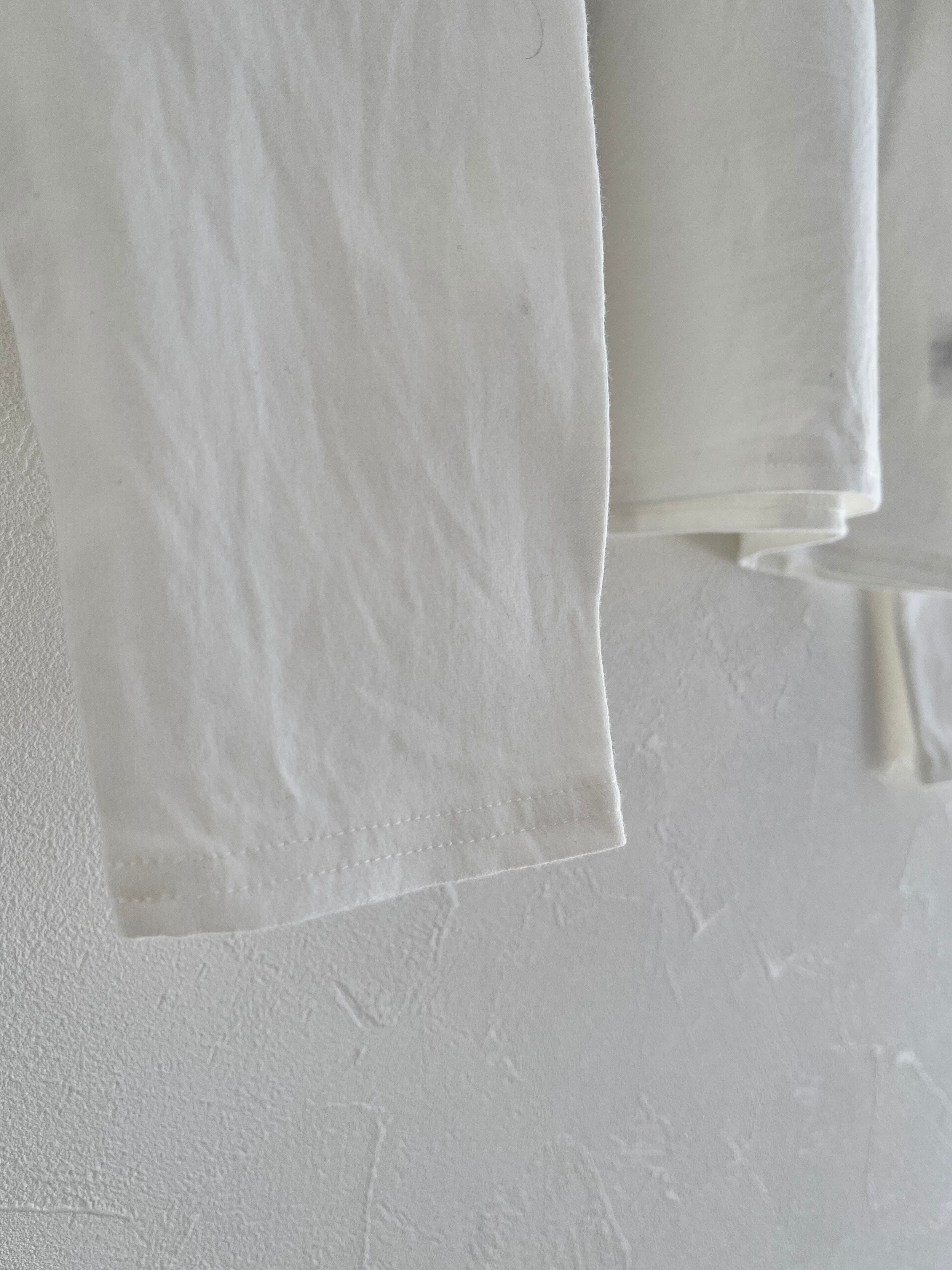 肌に馴染む快適な着心地のカットソーは、重ね着した時にも動きやすくストレスフリーに着られます。ちょこんとした小さなサイズ感が愛らしいアンティークのような貝ボタンは、サロペットやカーディガンからちらっと覗かせてもスタイリングのポイントに。