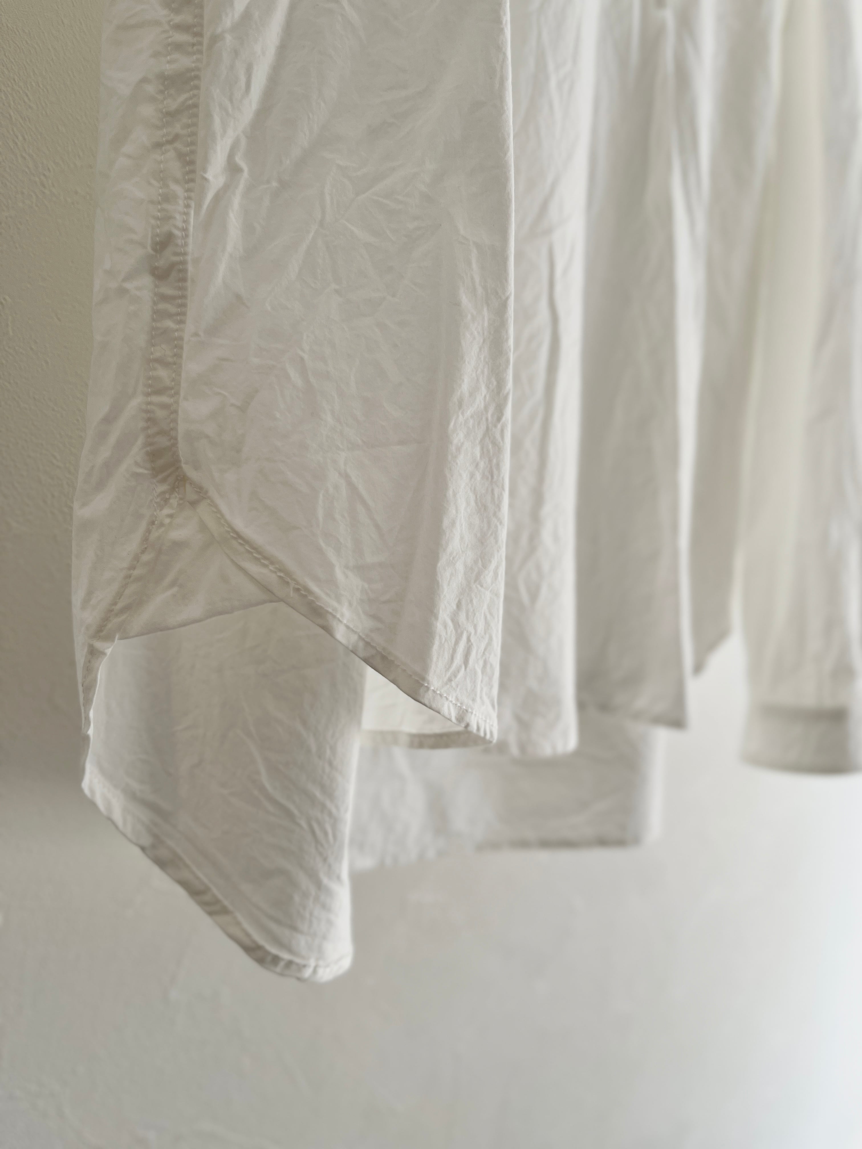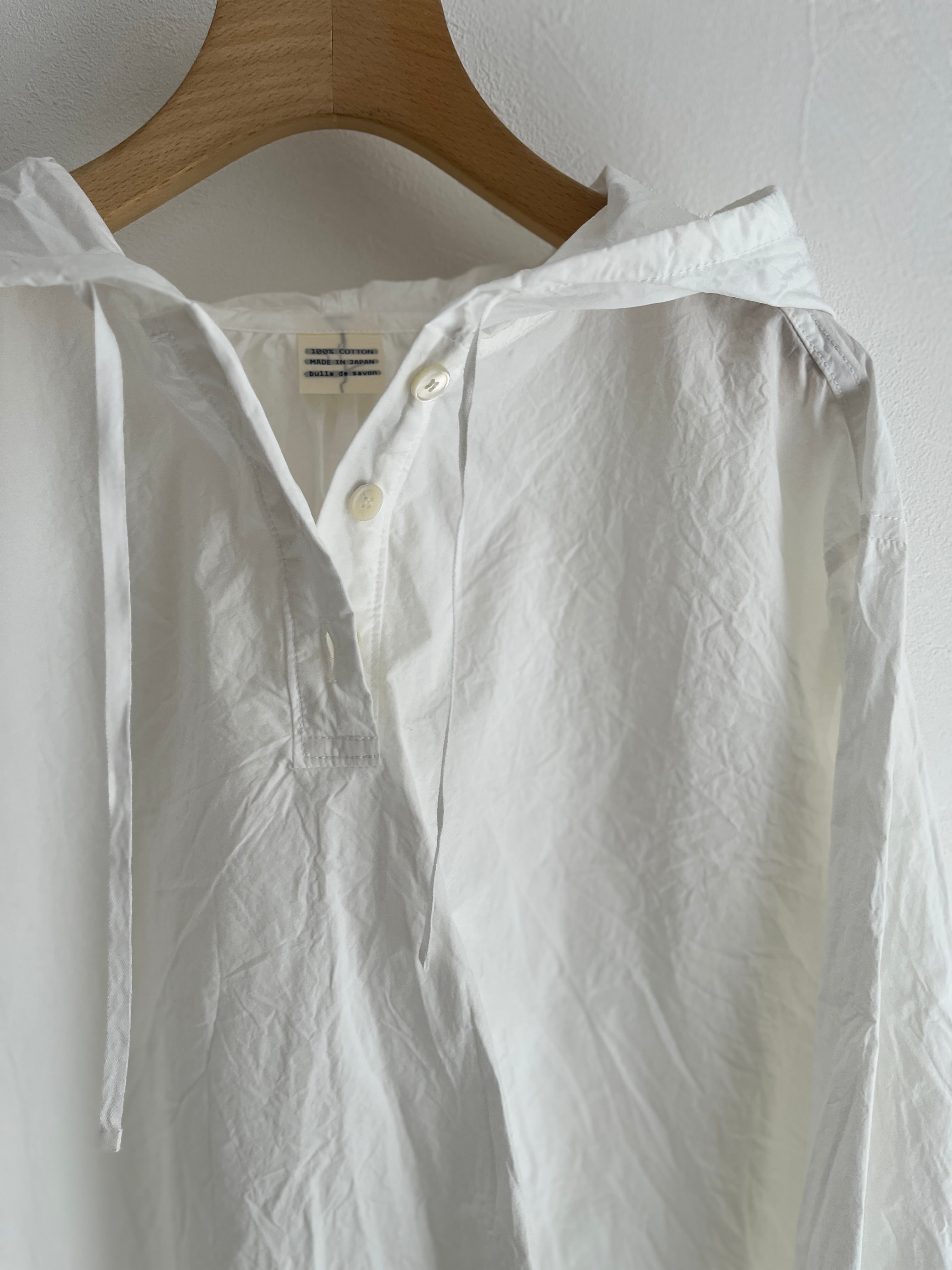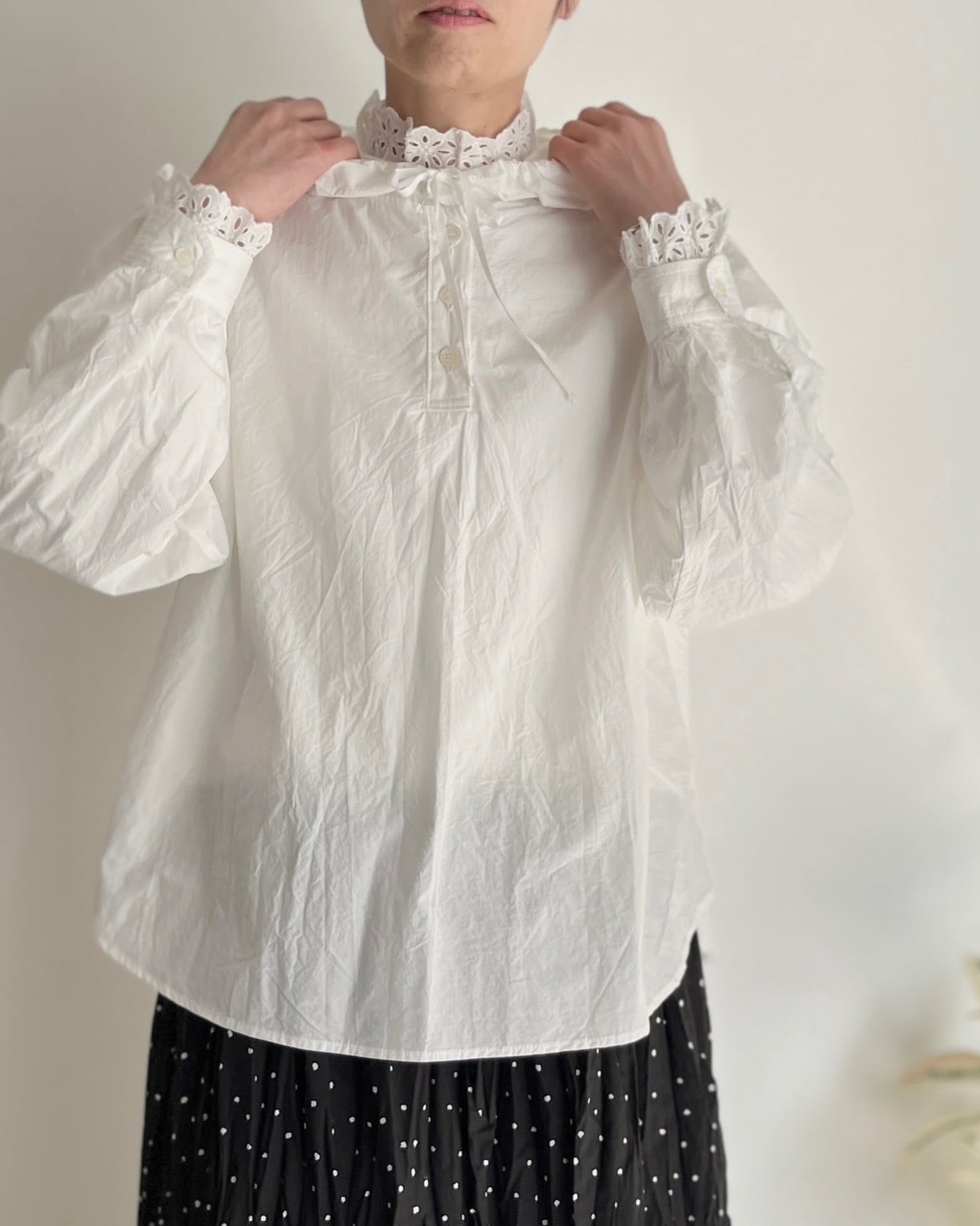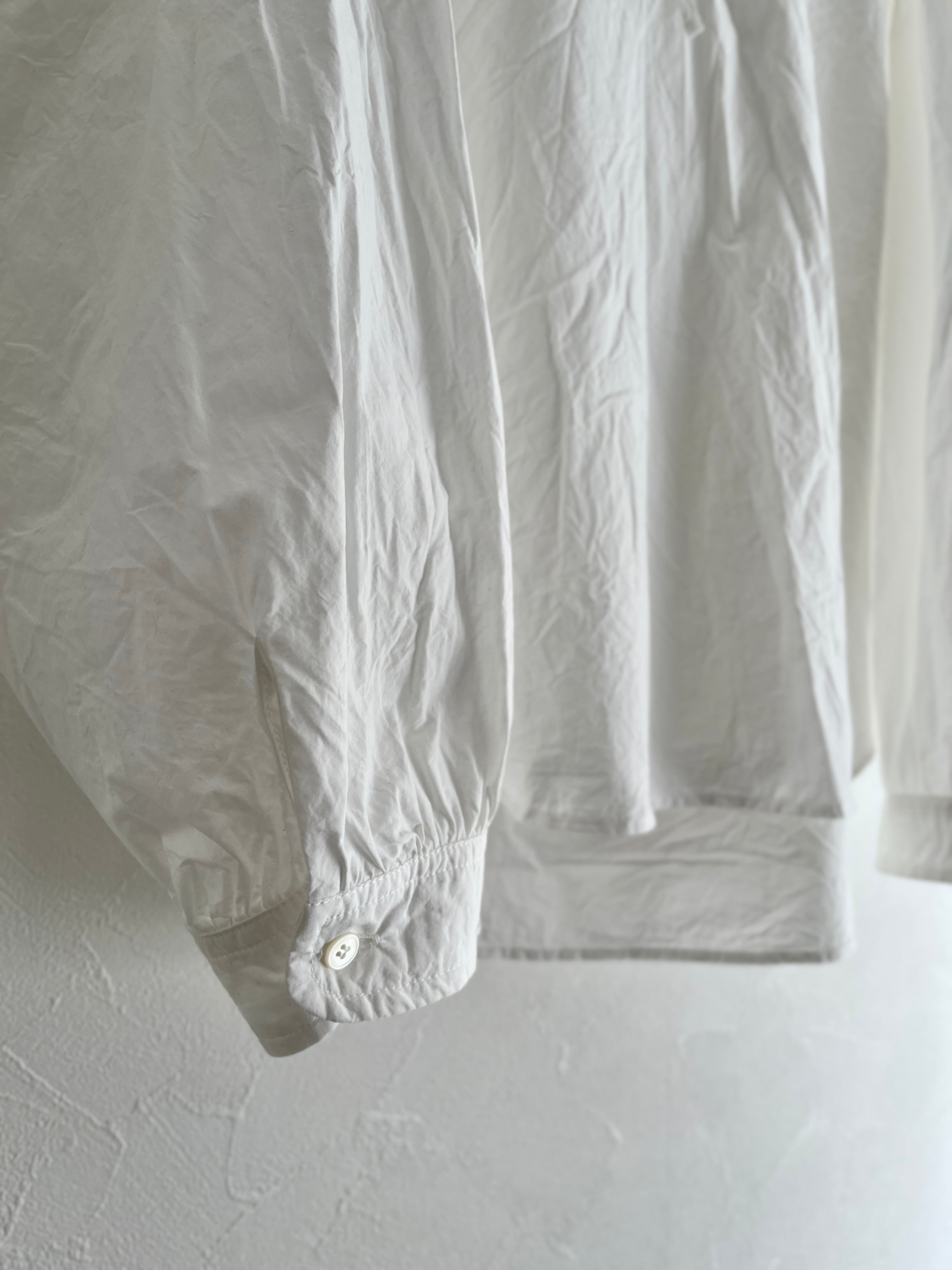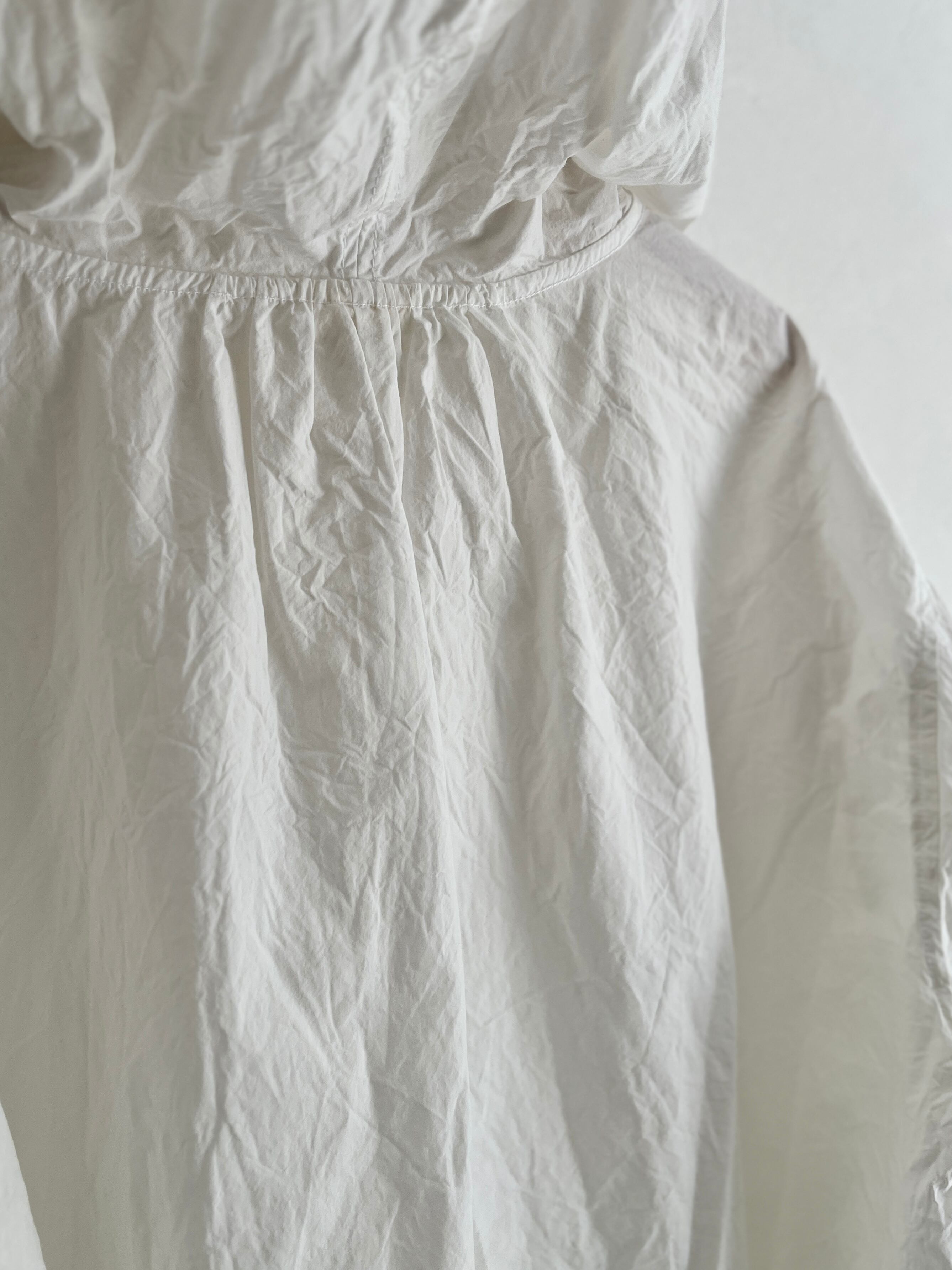 メンズに寄りすぎないようカフスにシャツのディテールを入れたり、後ろの衿ぐりにはギャザーを寄せたりこだわりの1着。