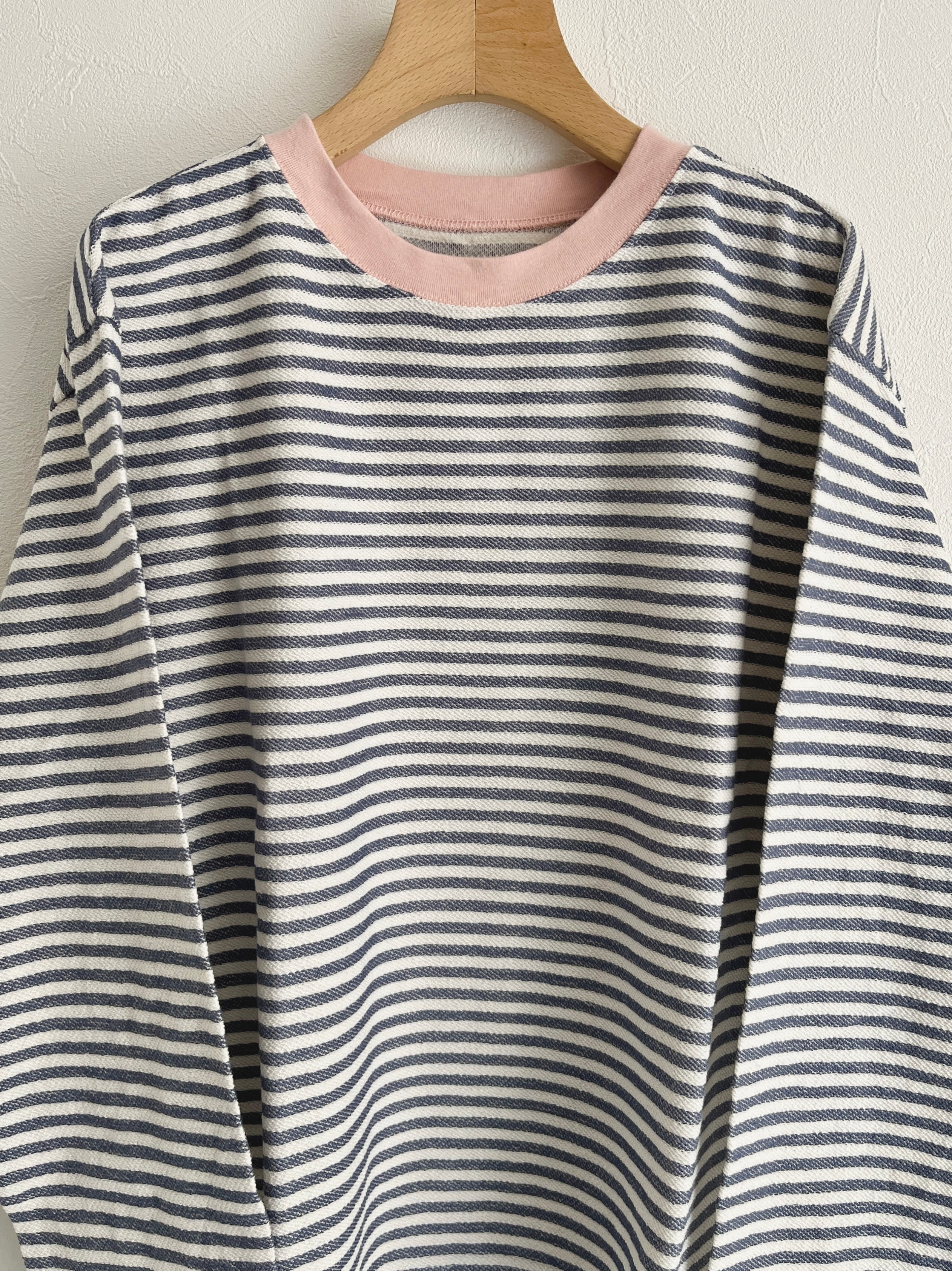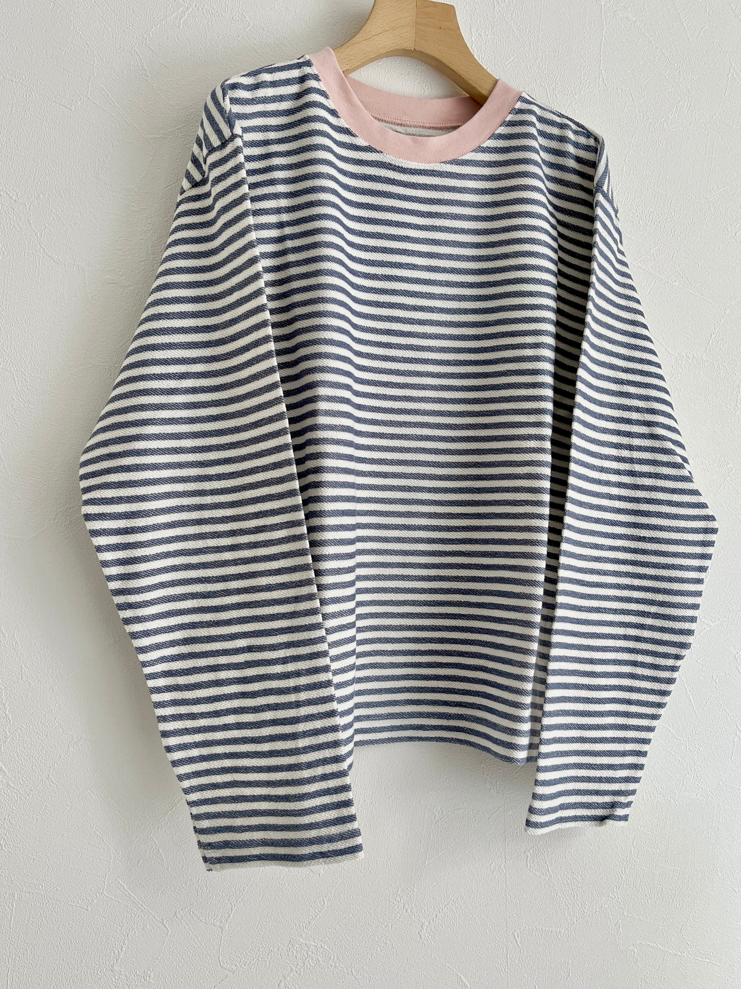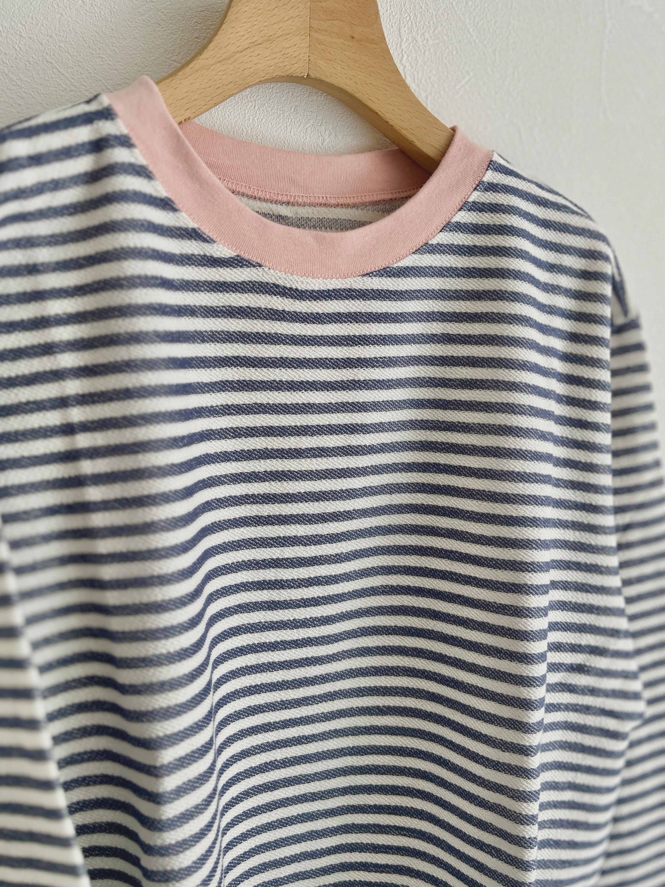 優しい配色のボーダーなので、春を意識させてくれる1枚。