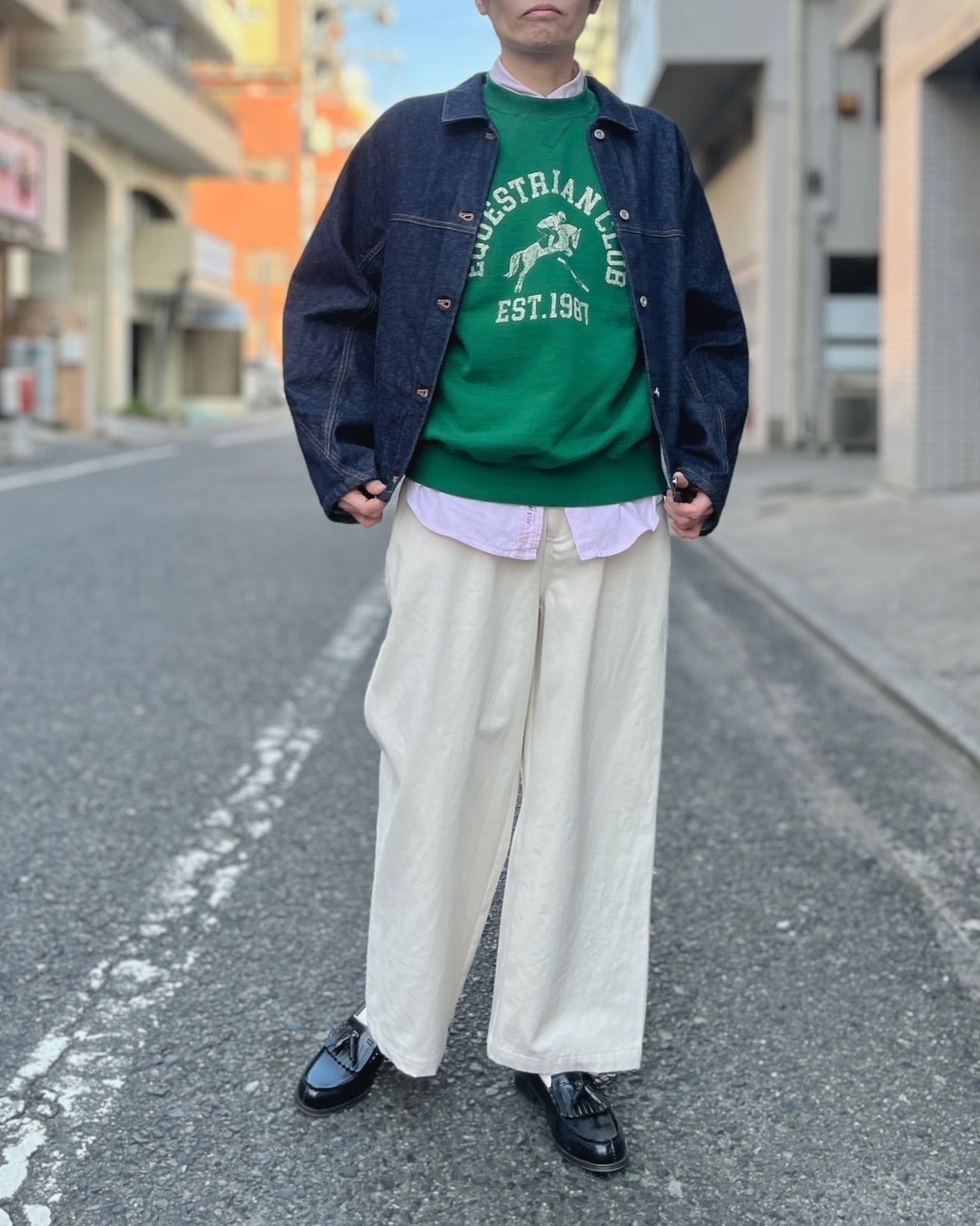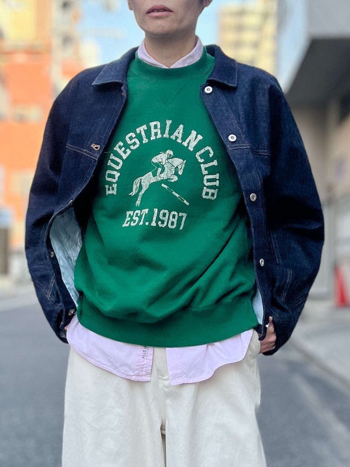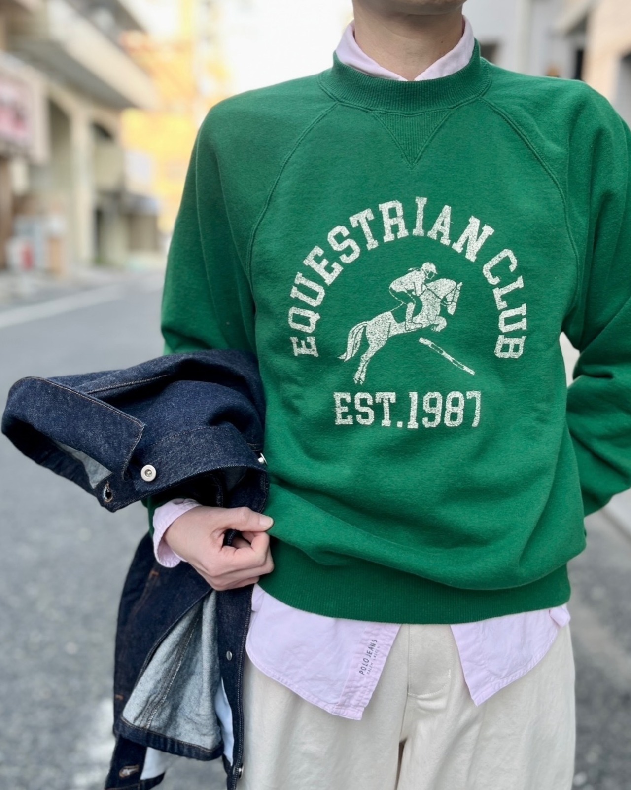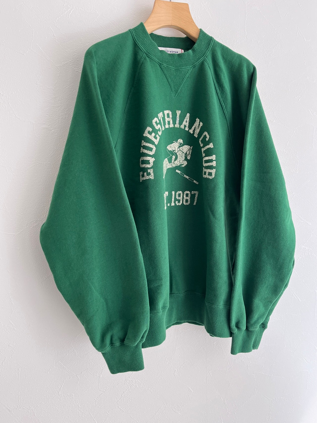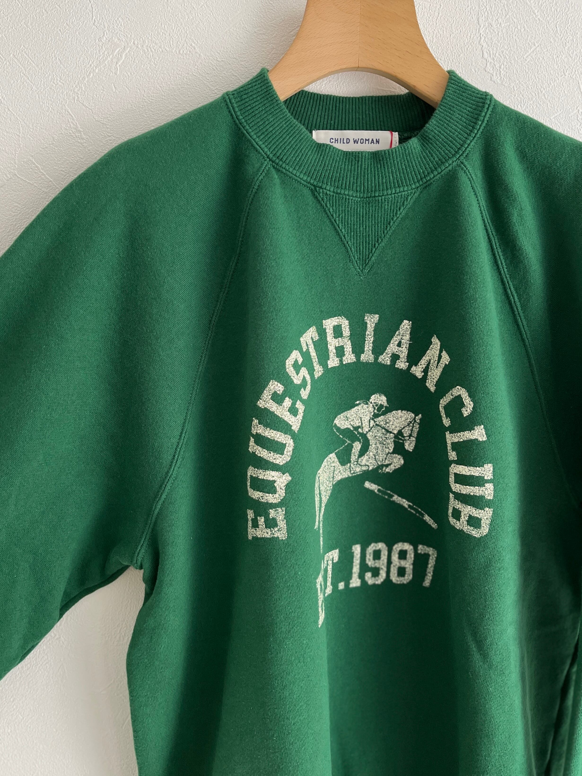 目を引くプリントは歴史ある架空の馬術クラブチームをイメージしたカレッジ風のプリントが施されています。