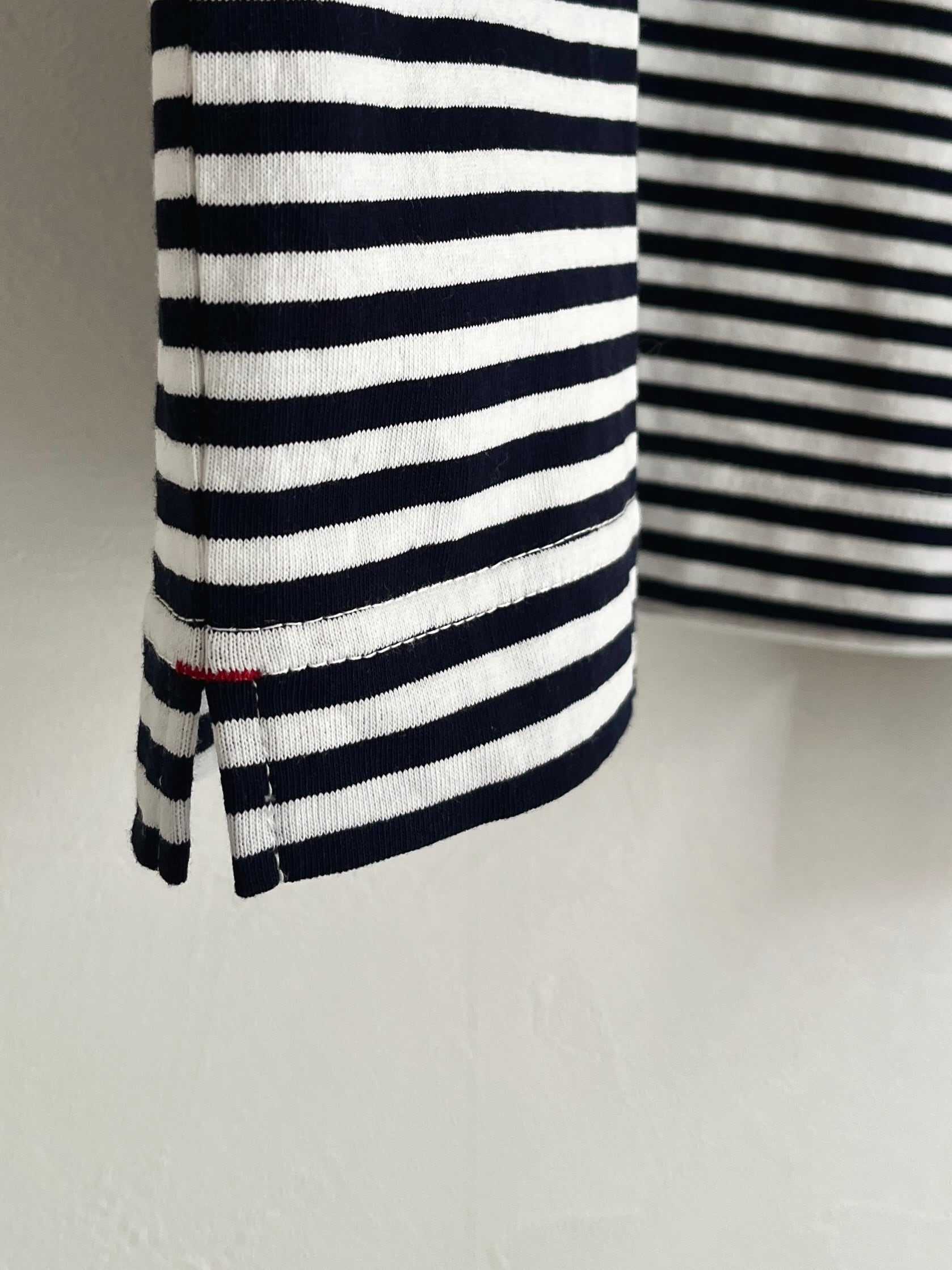 マリンコーディネートには欠かせない定番のボーダーに、配色バインダーやスリット止まりのカンヌキなどちょっとしたエッセンスを加えたこだわりの一枚。デザイン性だけではなく、着用と洗濯を繰り返してもへたりにくいタフさが嬉しい、スタッフ人気も高いアイテムです。