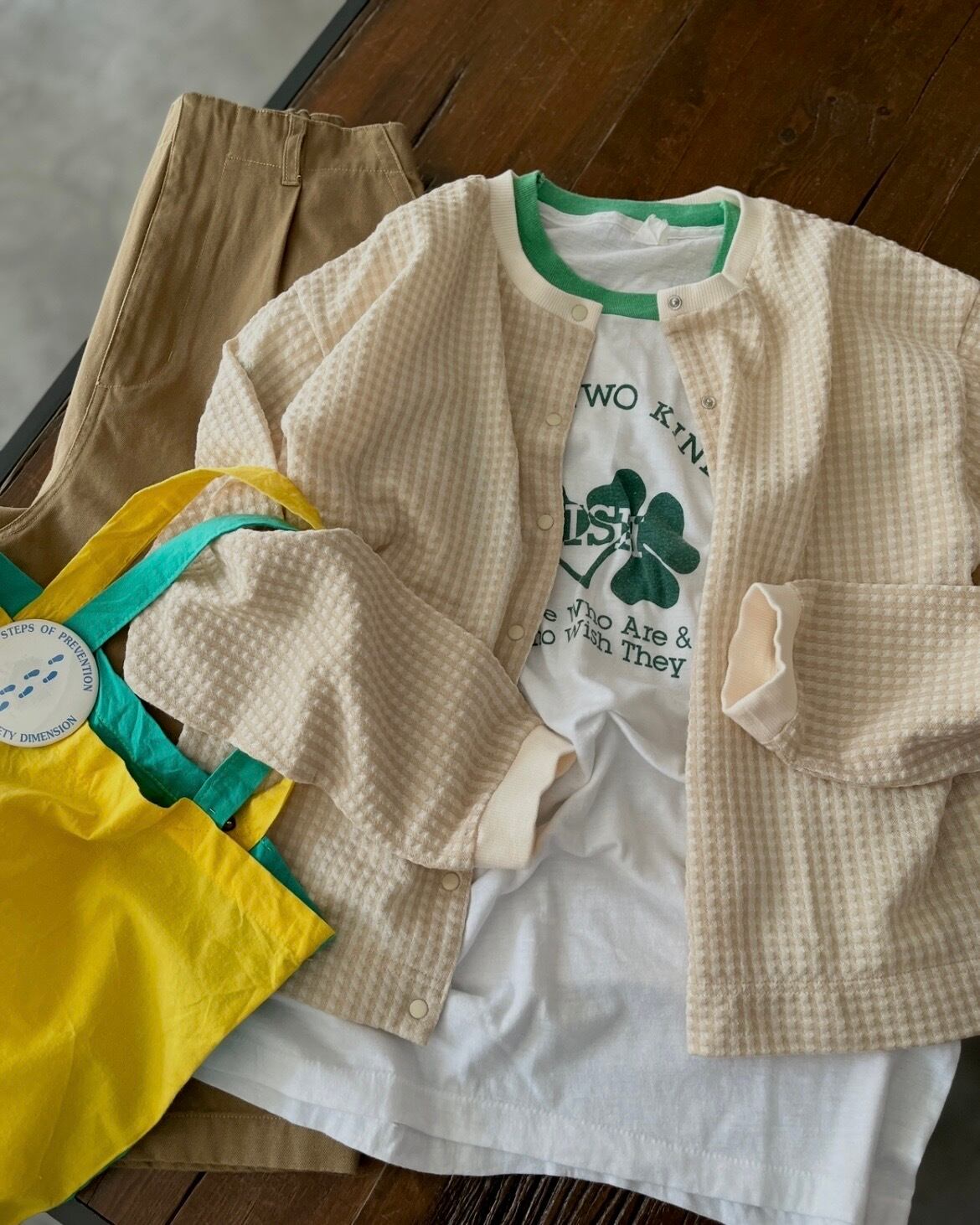 PAR ICI/ギンガムジャガード ゆるっとカーディガン (ベージュ) :5001CT015261