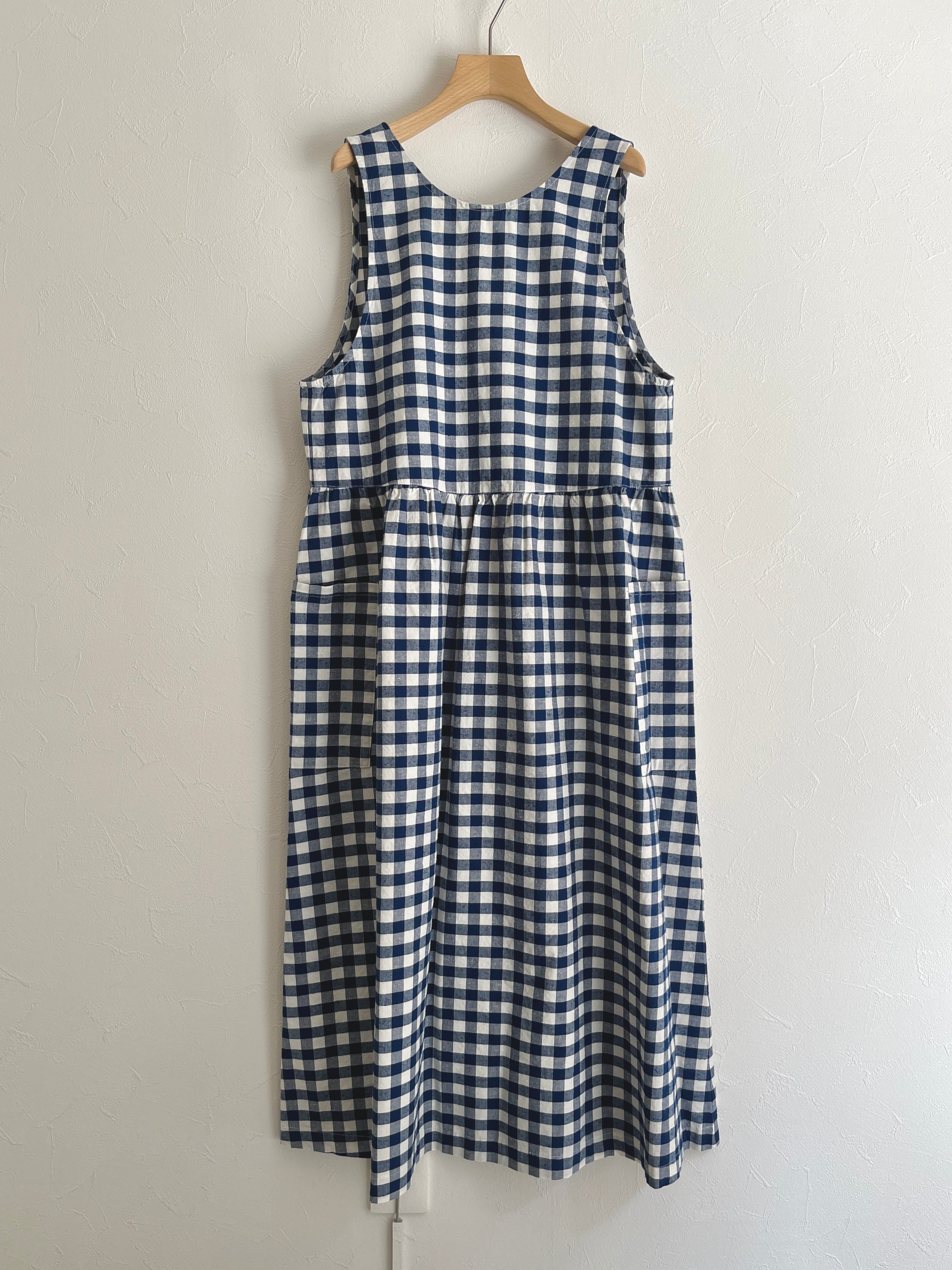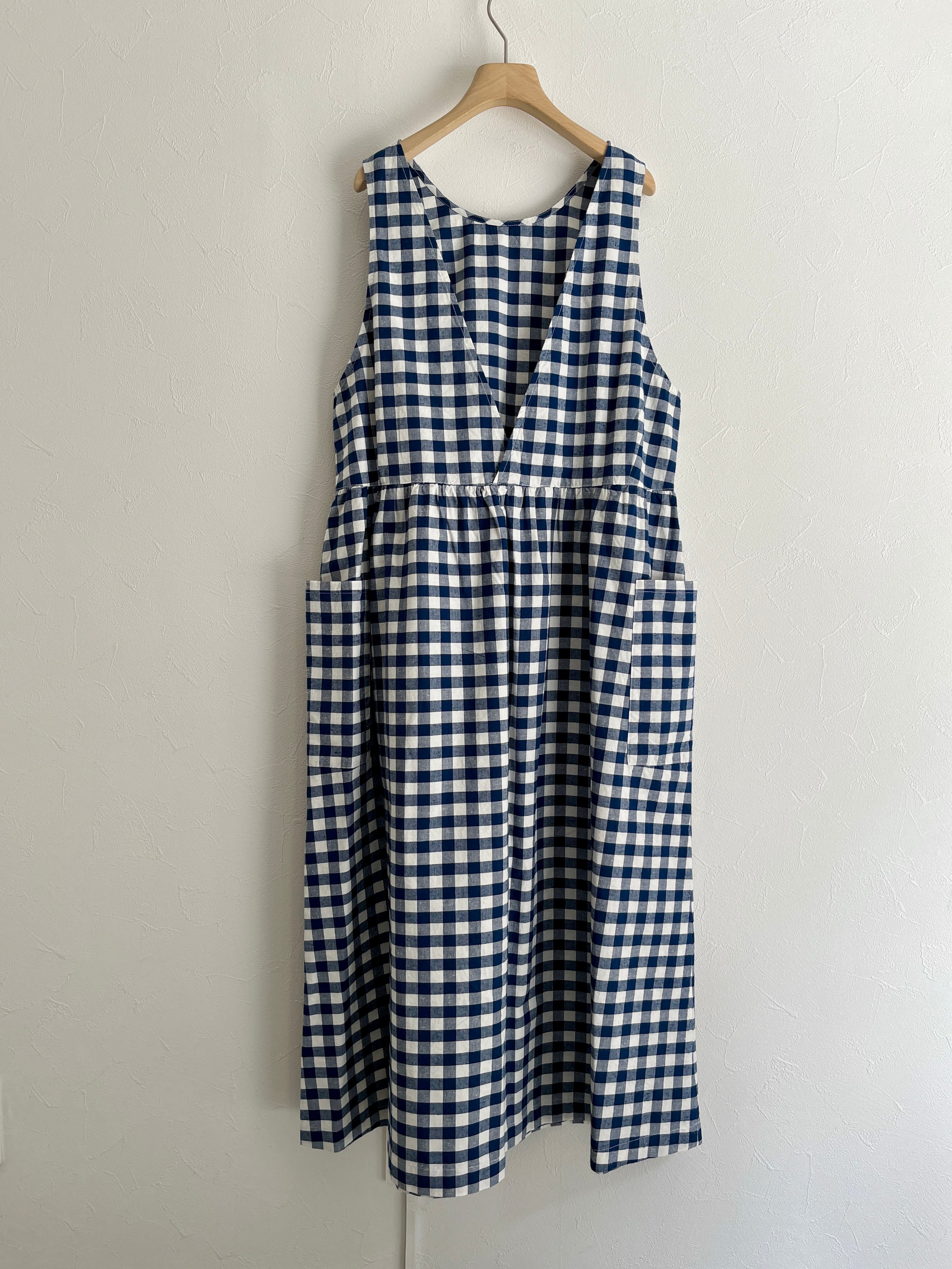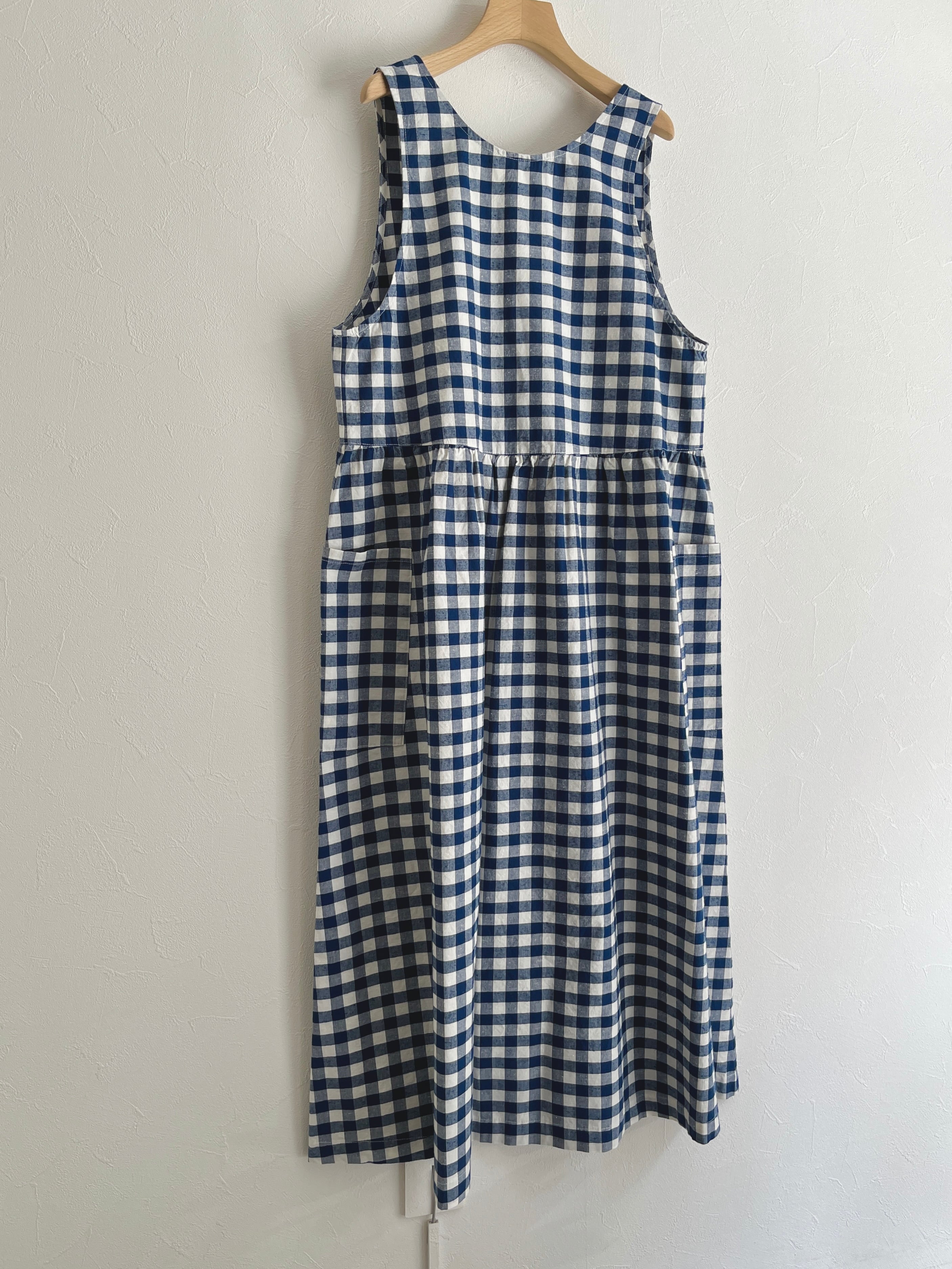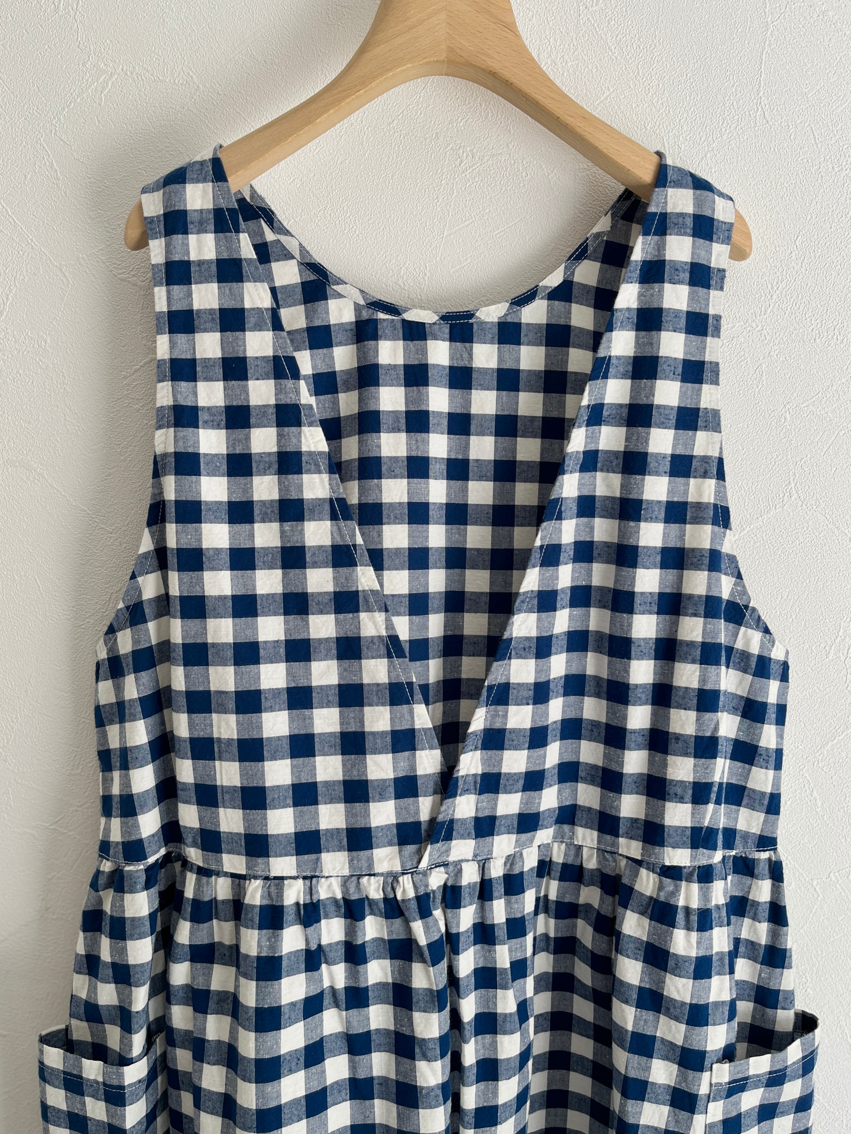 クルーネックと深めのVネックの前後で着用可能な2WAY仕様でスタイリングを変えて着ていただけます。ウエスト部分にギャザーを入れて立体感を出し、ふわっとしたシルエットと長めの丈で着映えする一枚。大きめのポケットでナチュラルになりすぎず、ワークな気持ちを忘れずに。アームホールを広めにデザインすることで、着られるインナーの幅が広がります。エプロンのような雰囲気で、グッドガールな印象に。