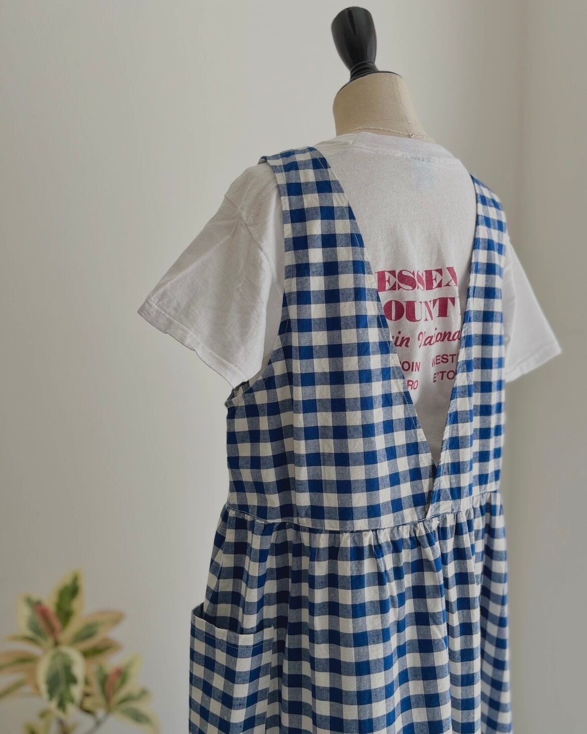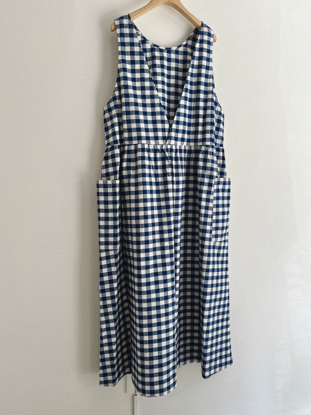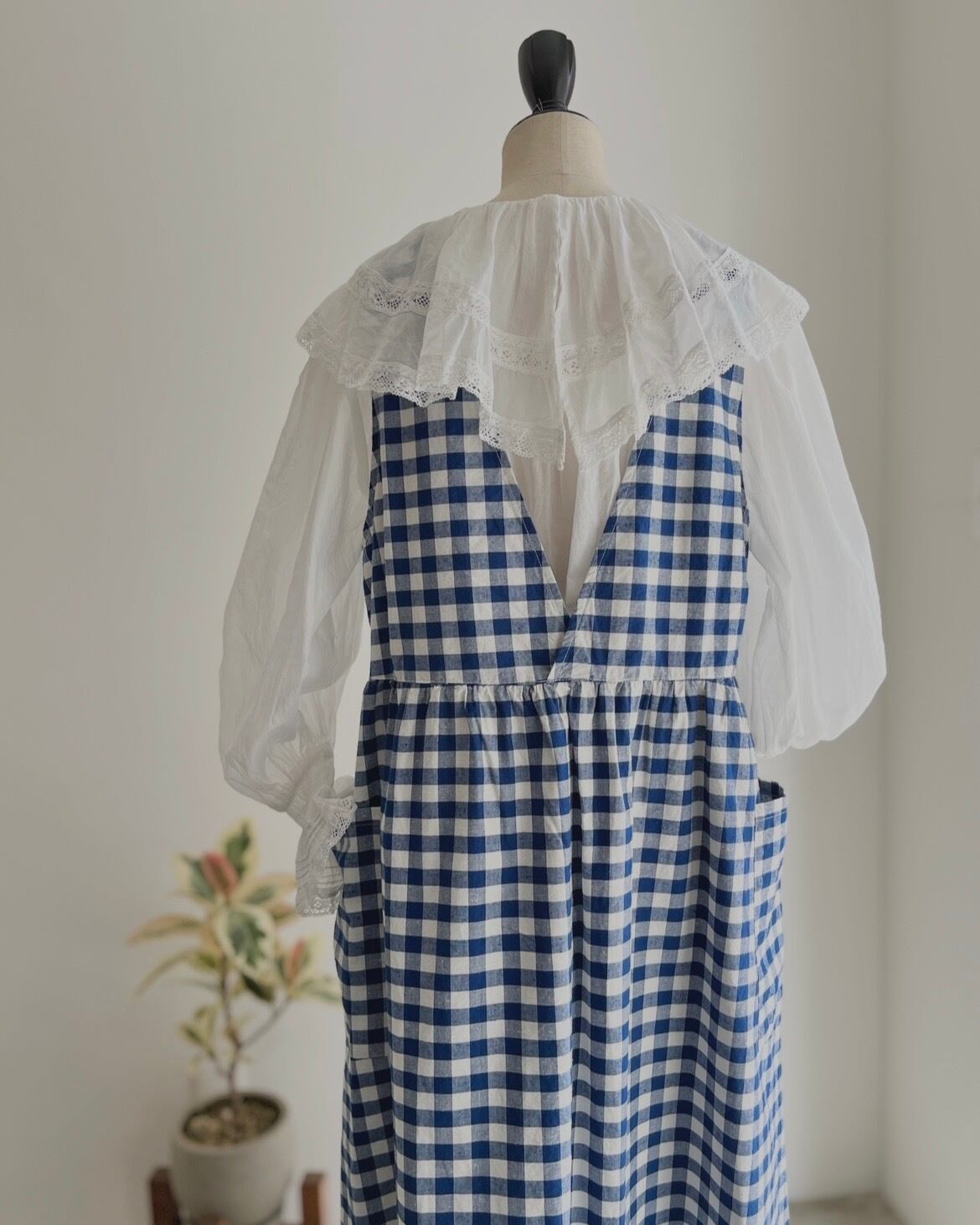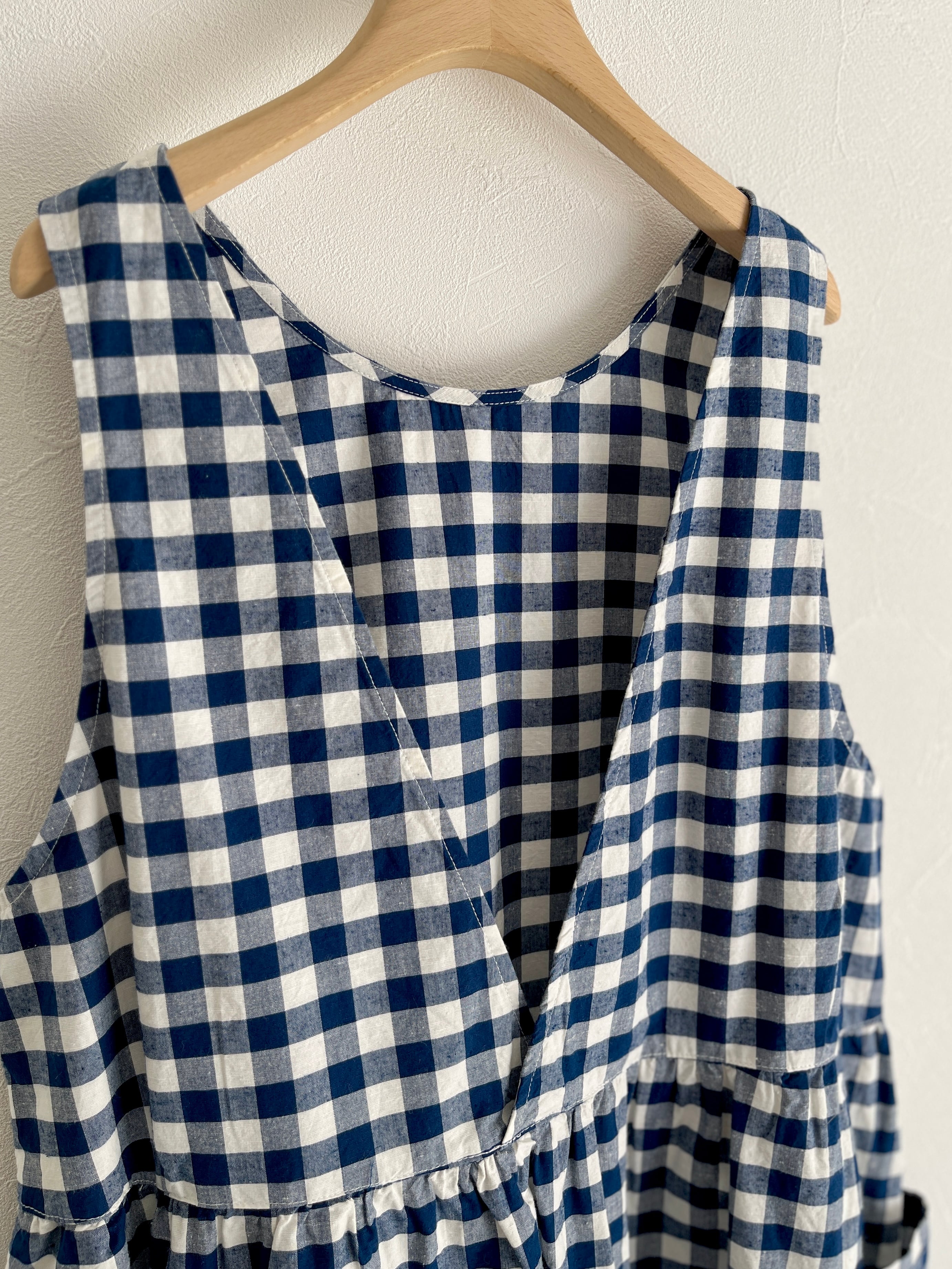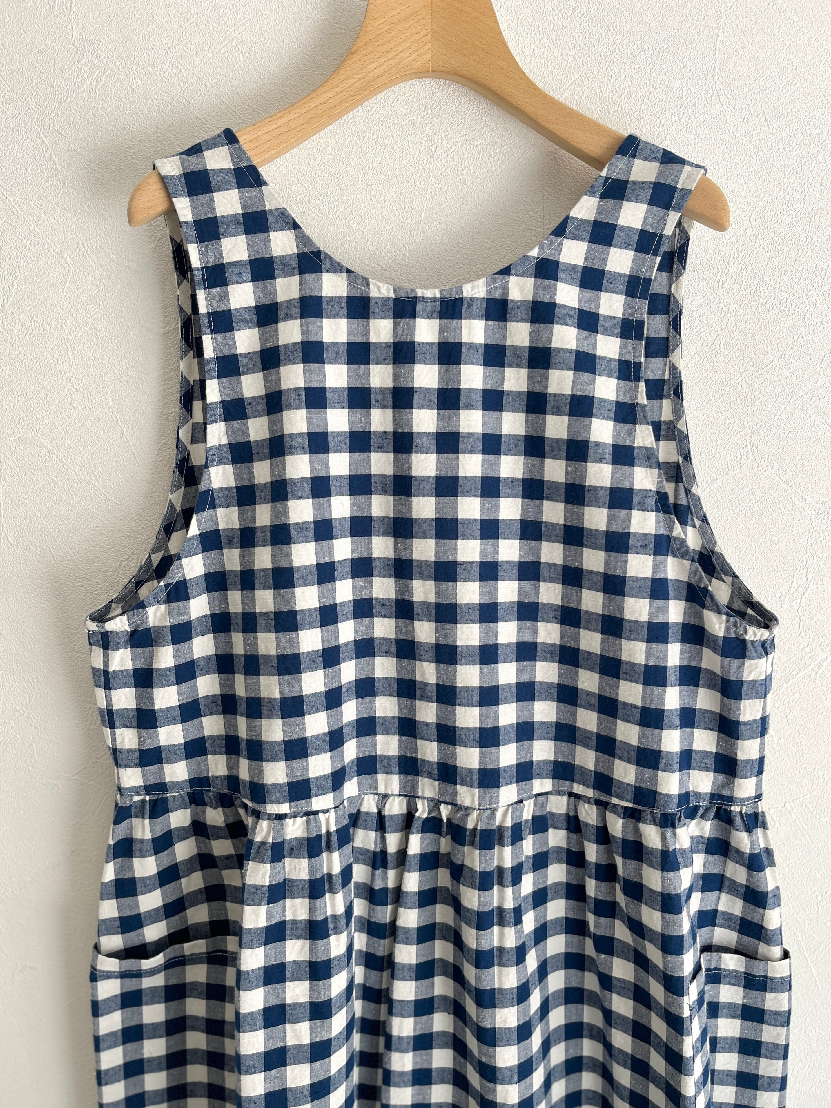 クルーネックと深めのVネックの前後で着用可能な2WAY仕様でスタイリングを変えて着ていただけます。ウエスト部分にギャザーを入れて立体感を出し、ふわっとしたシルエットと長めの丈で着映えする一枚。大きめのポケットでナチュラルになりすぎず、ワークな気持ちを忘れずに。アームホールを広めにデザインすることで、着られるインナーの幅が広がります。エプロンのような雰囲気で、グッドガールな印象に。