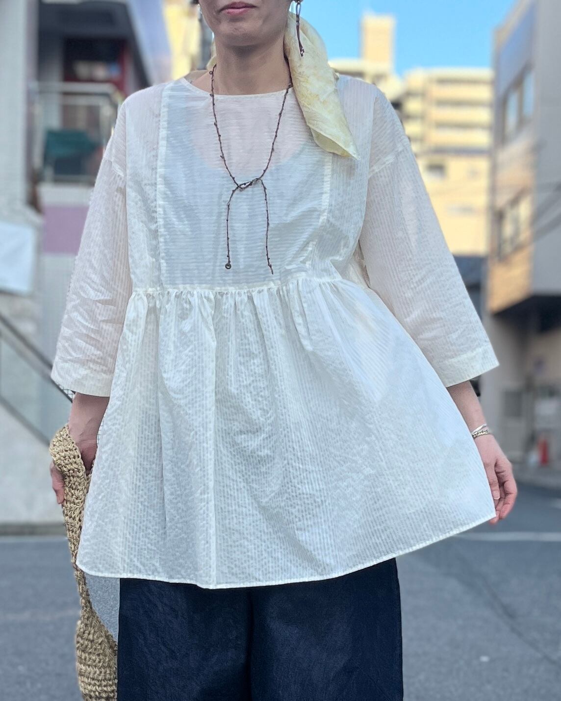 yuni/Cotton Polyester stripe tunic tiered 2way ブラウス (キナリ) :1701BL028261
