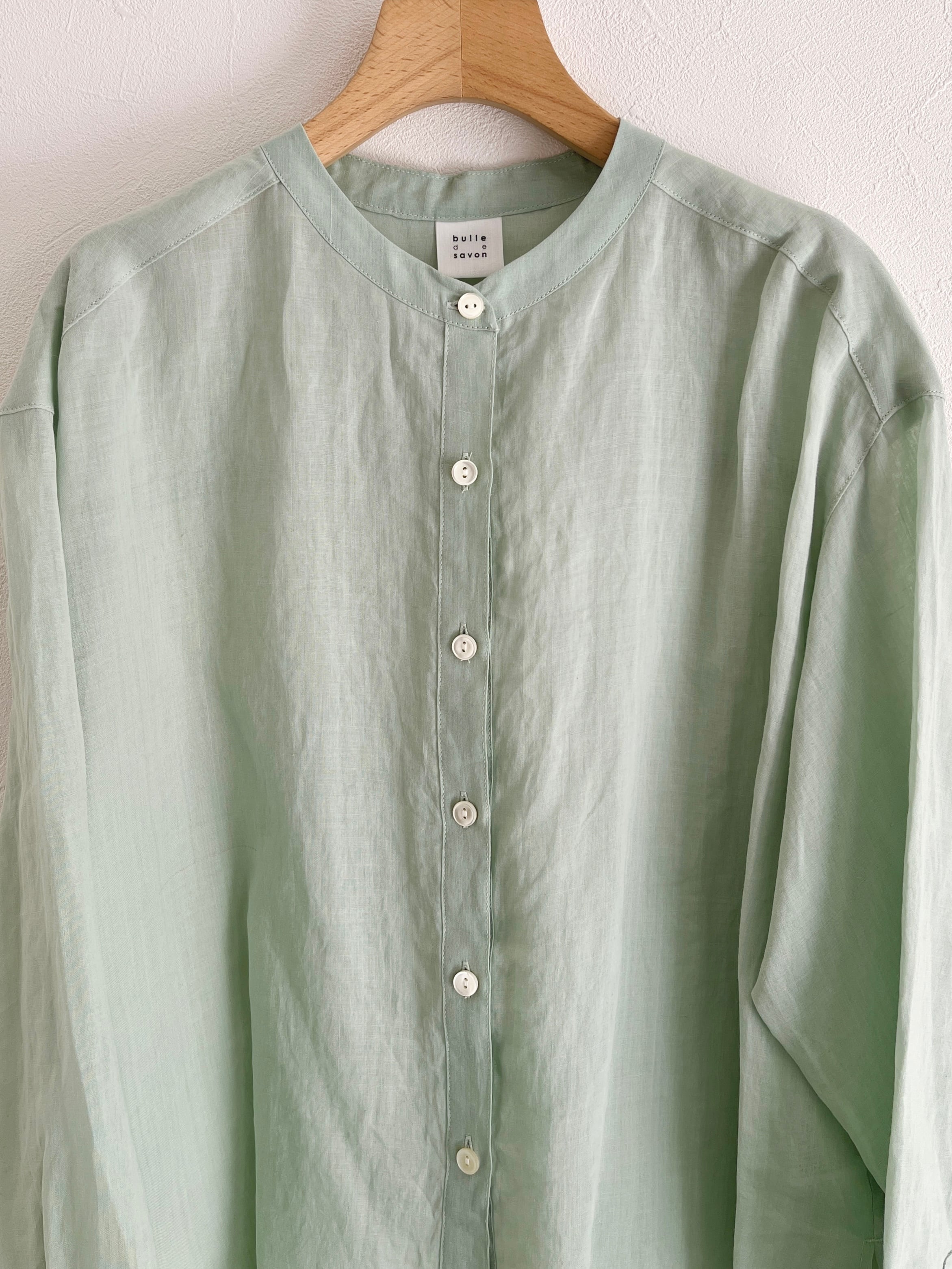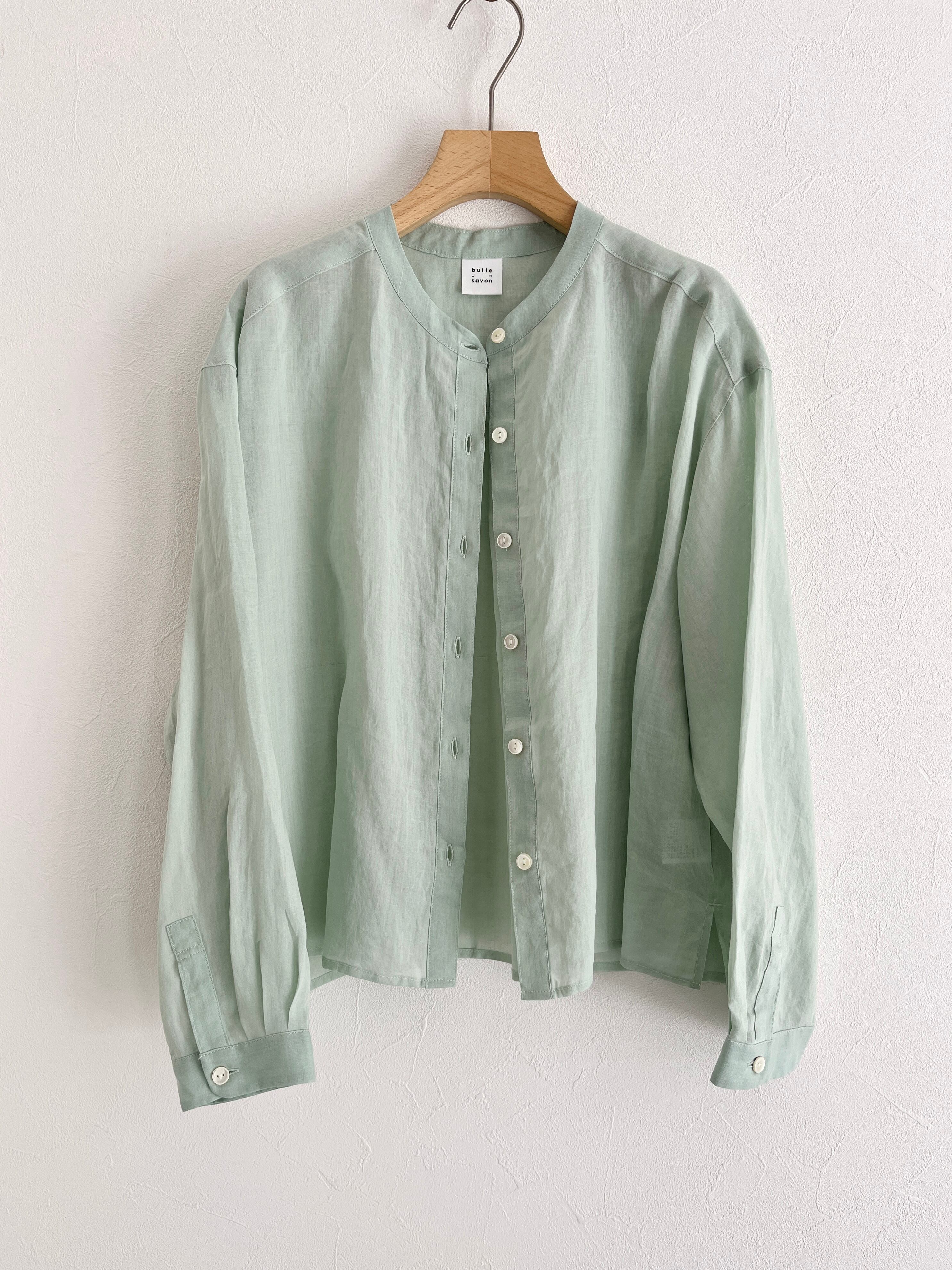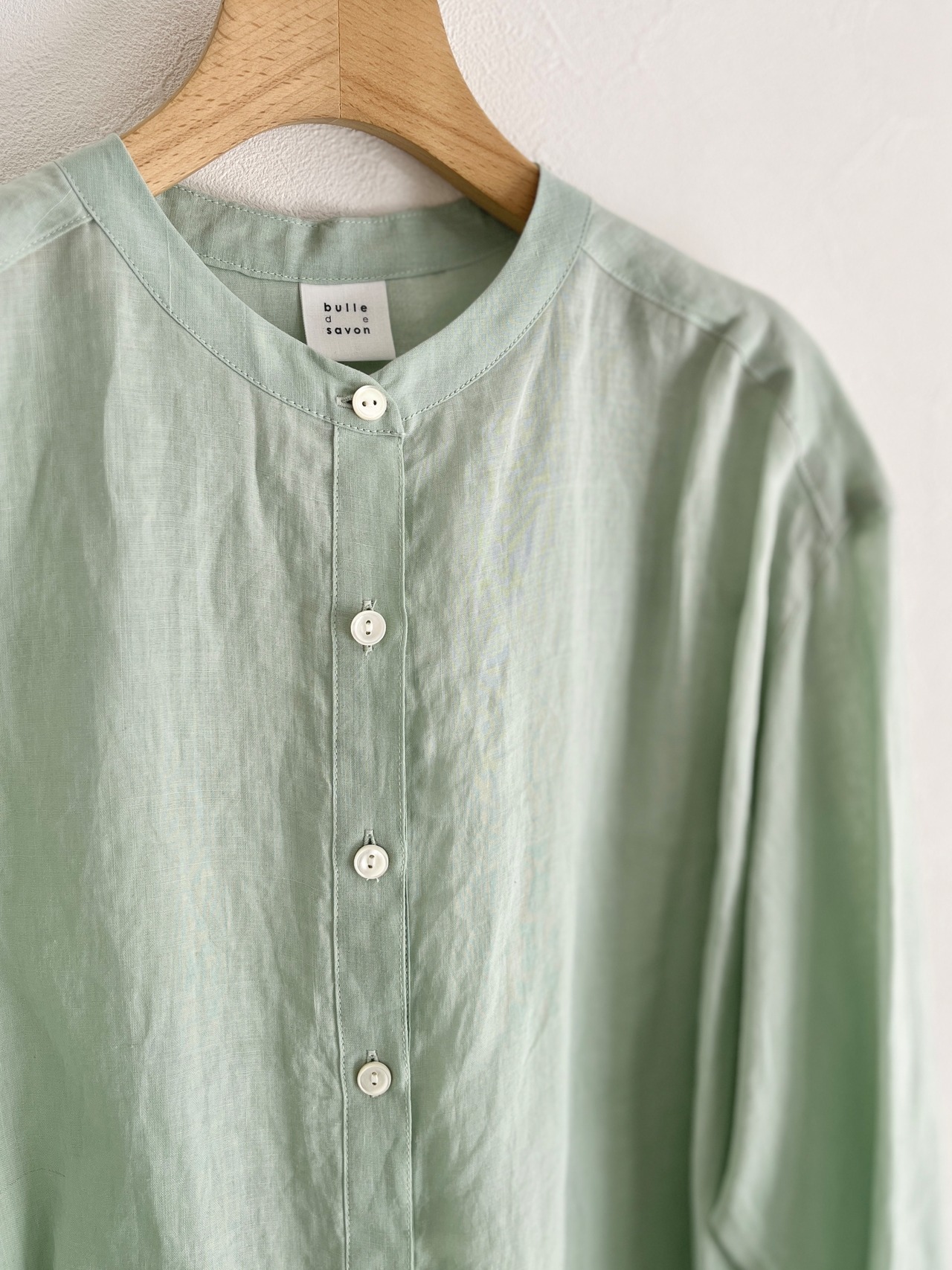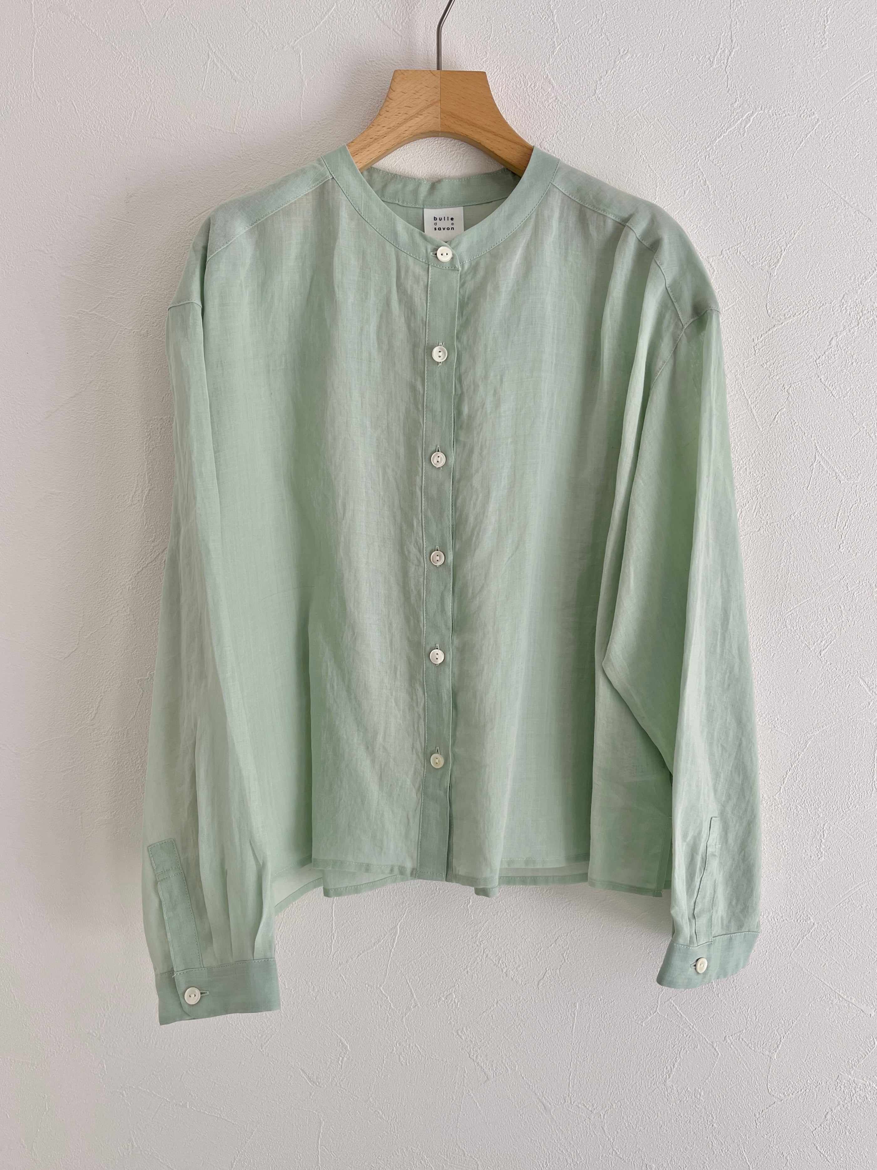 天然素材のラミーを贅沢に使い、洗いざらしのような風合いと、ほんのり上品な光沢感をあわせ持つブラウスをつくりました。