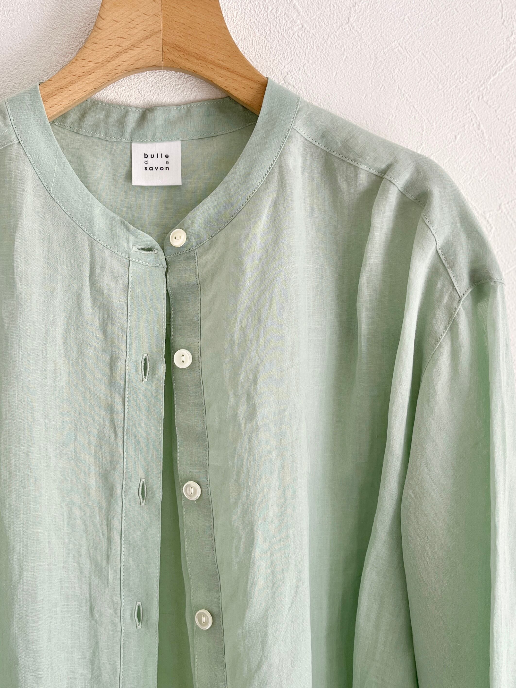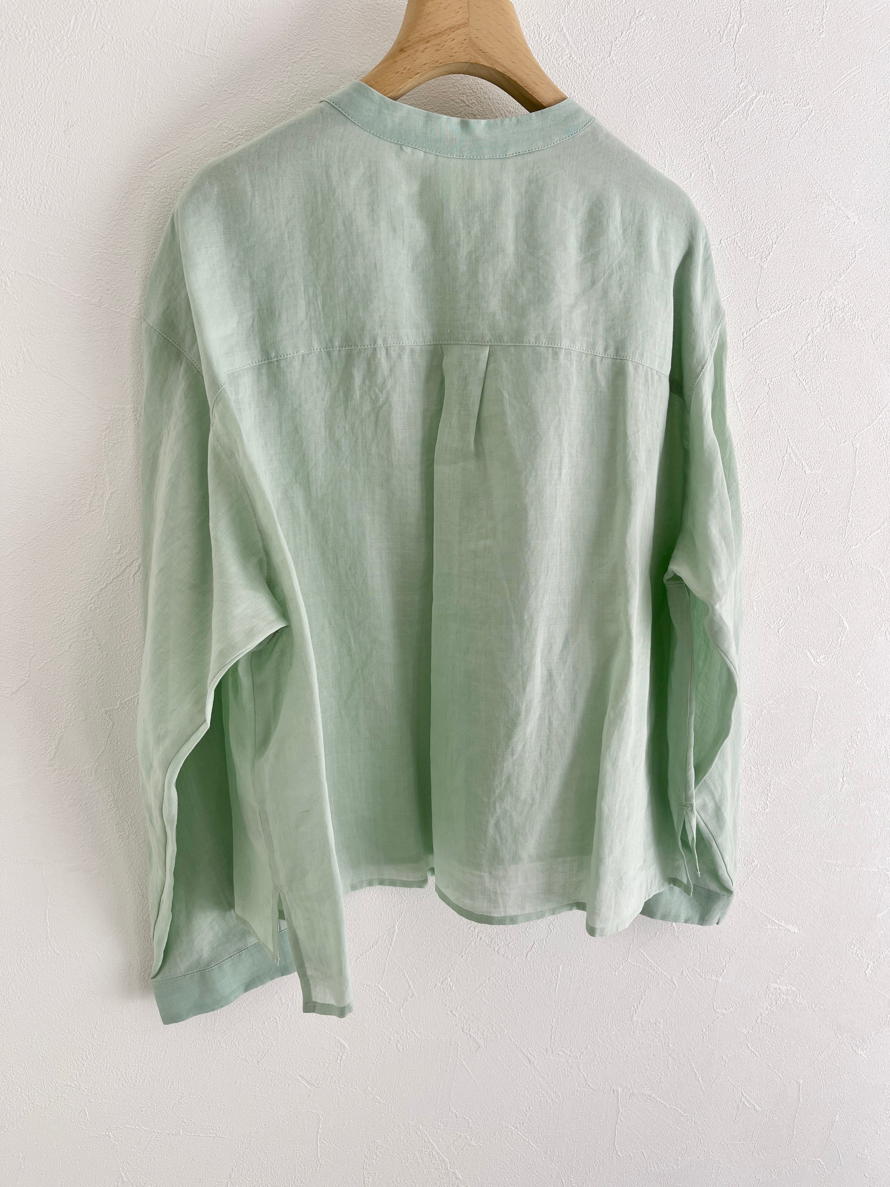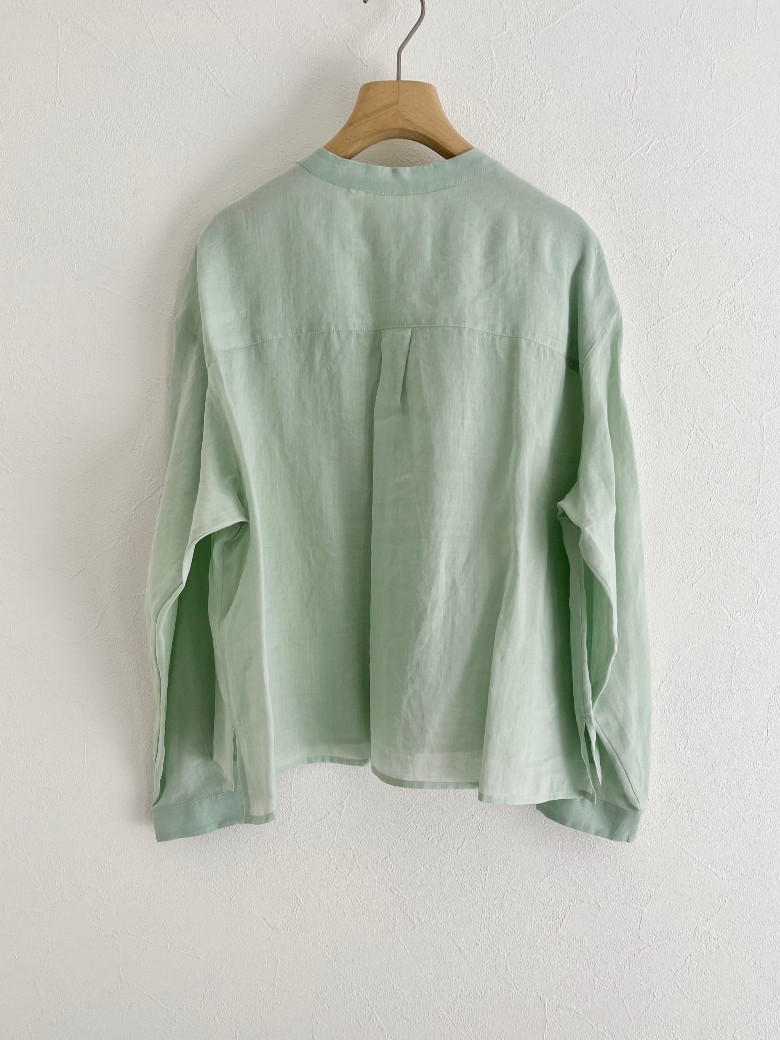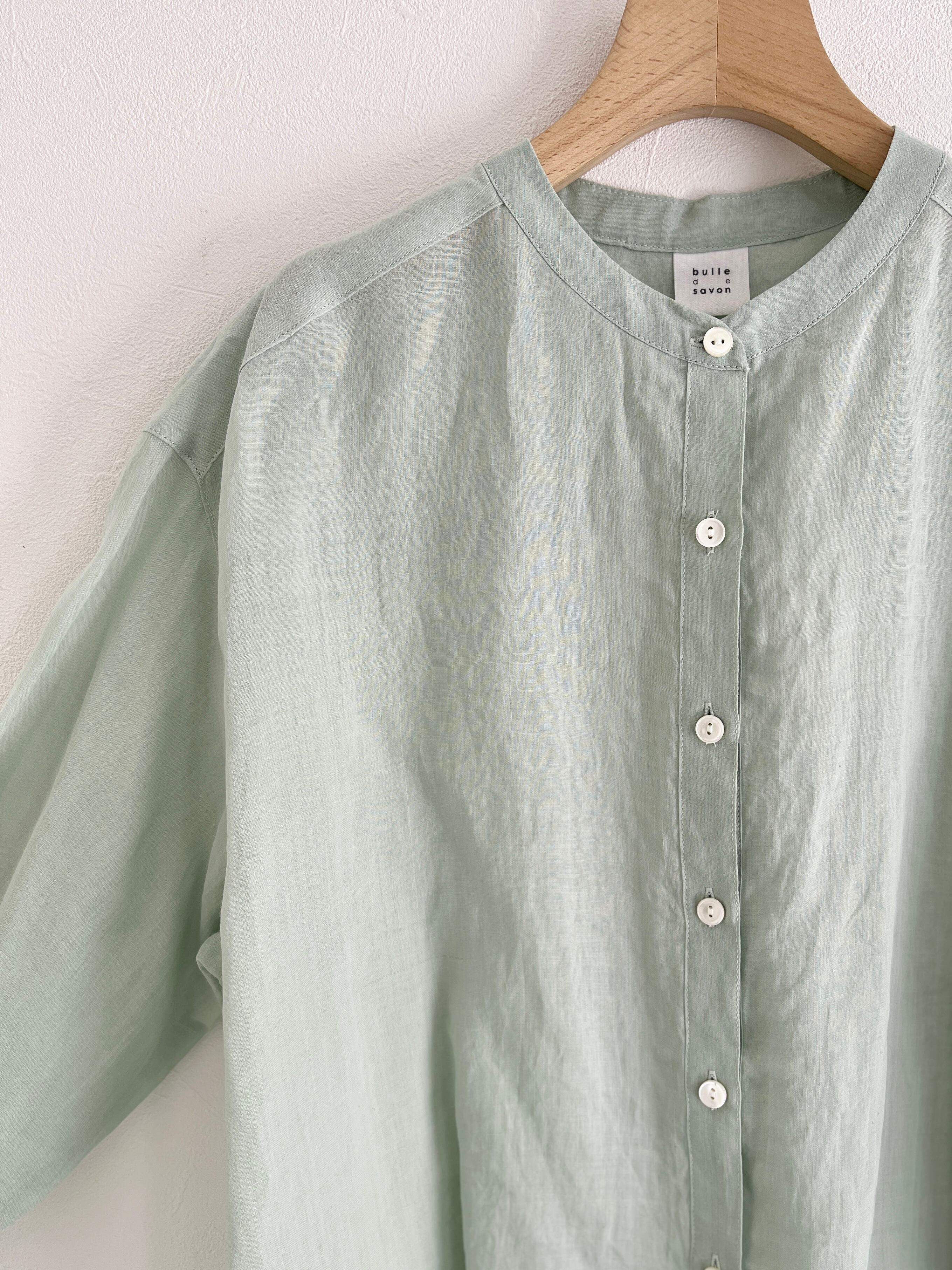 天然素材のラミーを贅沢に使い、洗いざらしのような風合いと、ほんのり上品な光沢感をあわせ持つブラウスをつくりました。