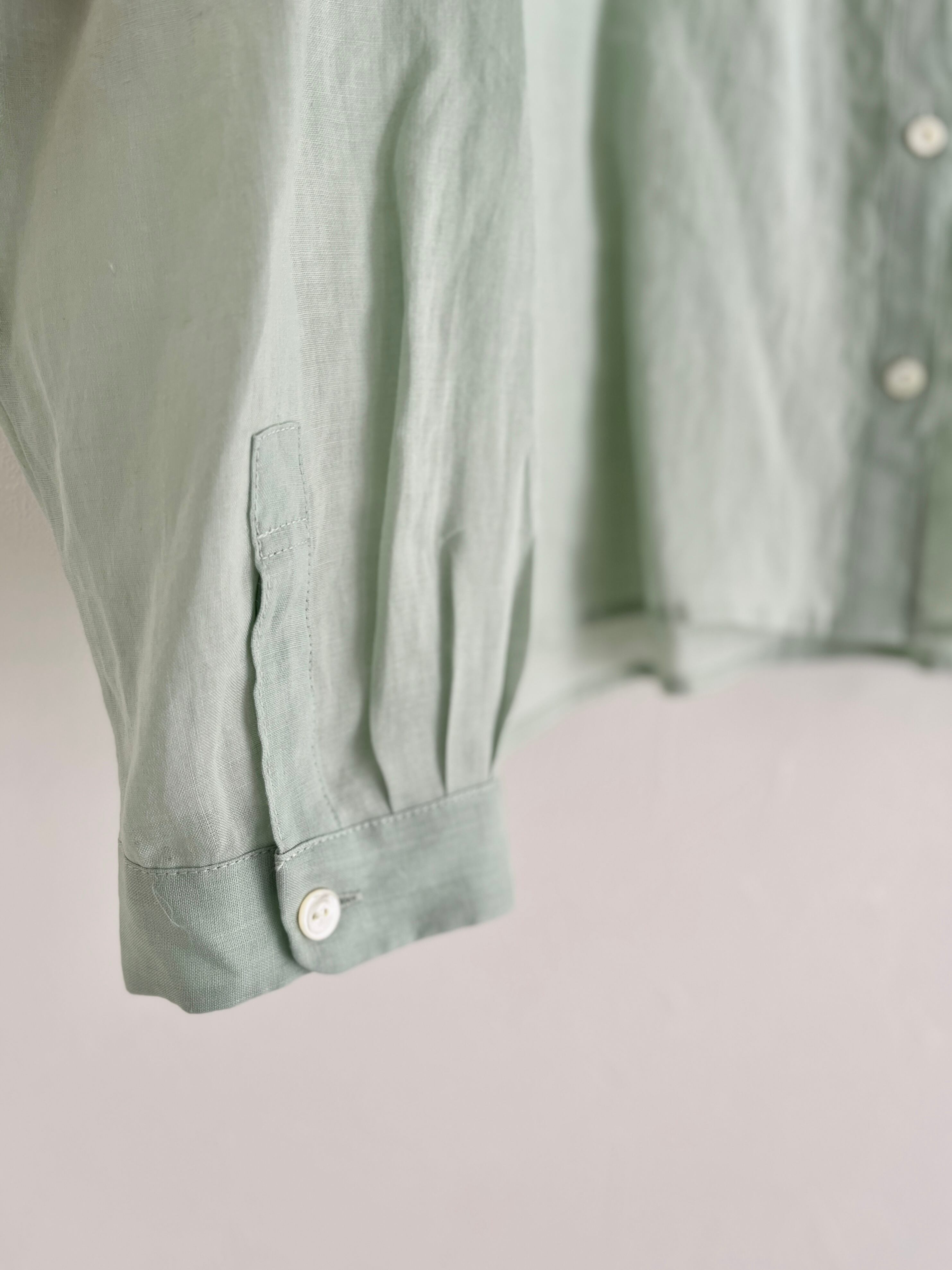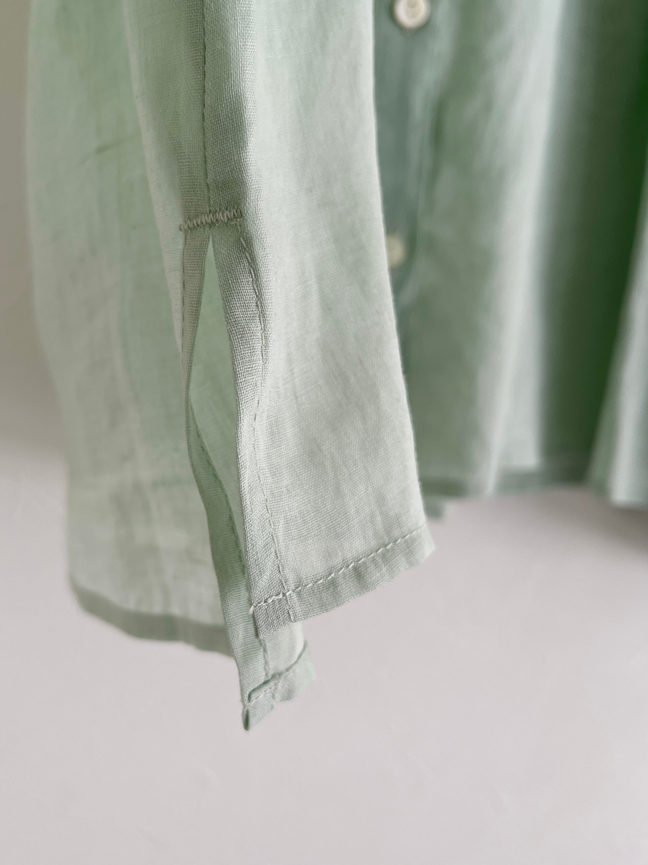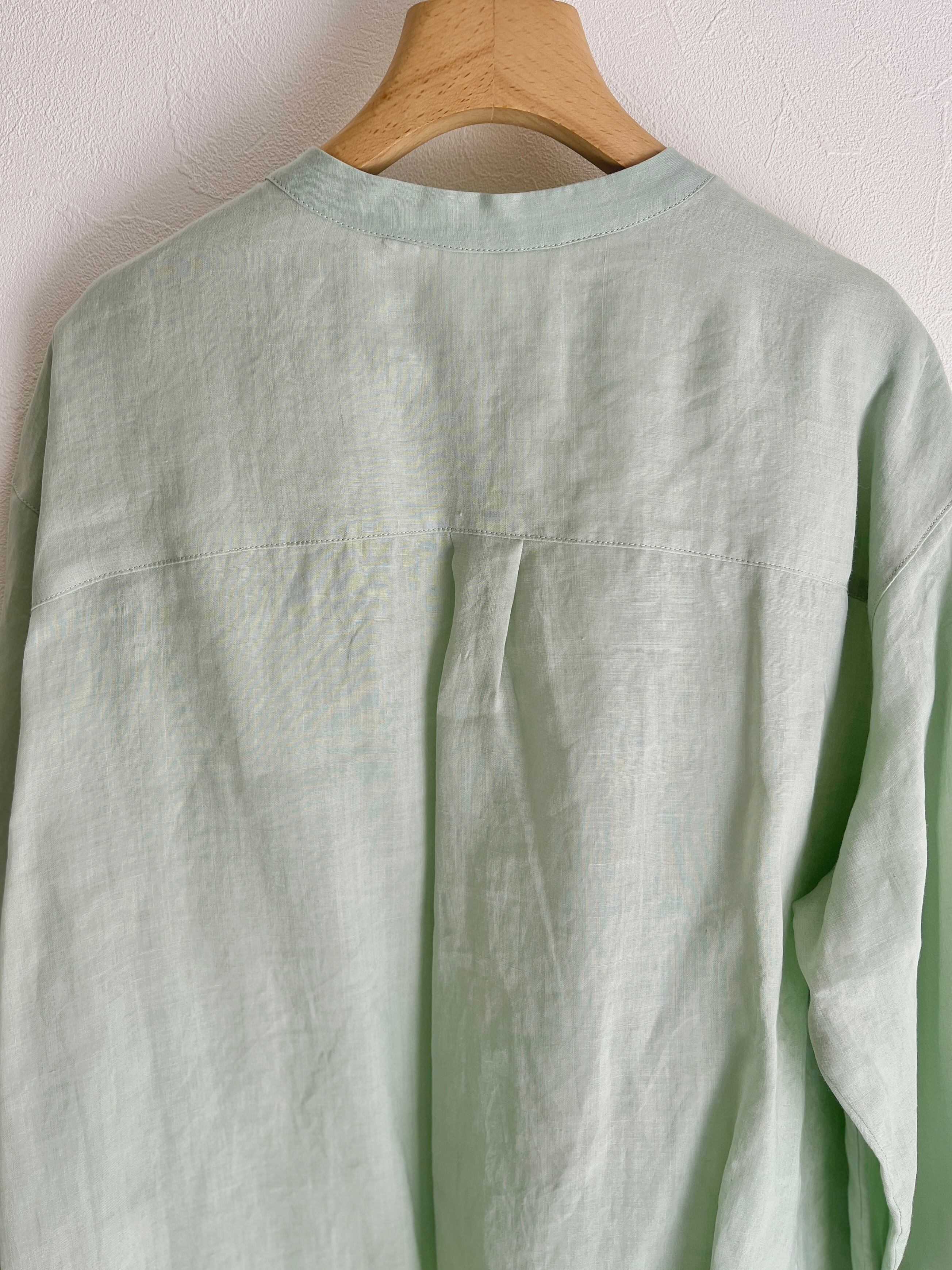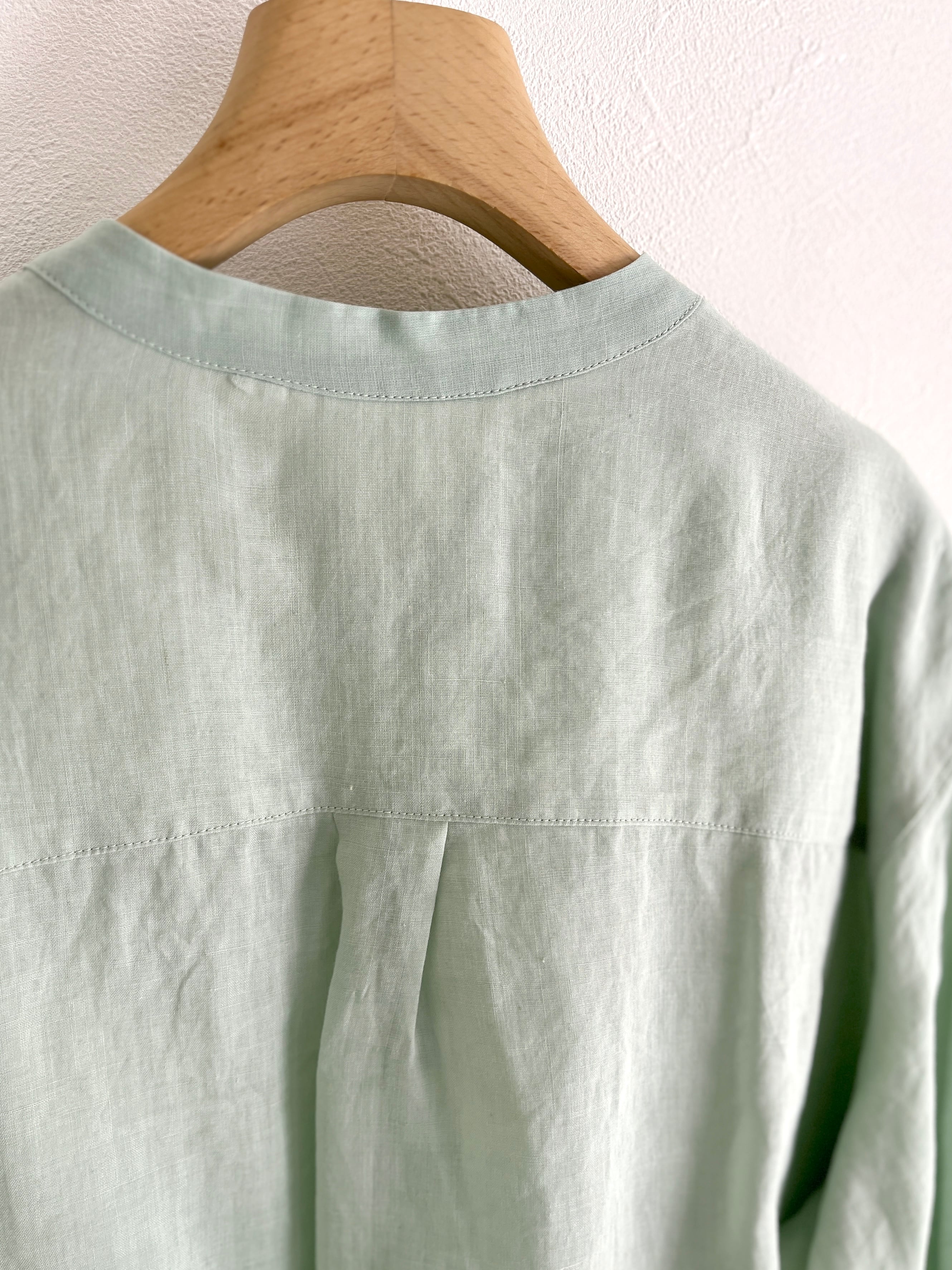 天然素材のラミーを贅沢に使い、洗いざらしのような風合いと、ほんのり上品な光沢感をあわせ持つブラウスをつくりました。