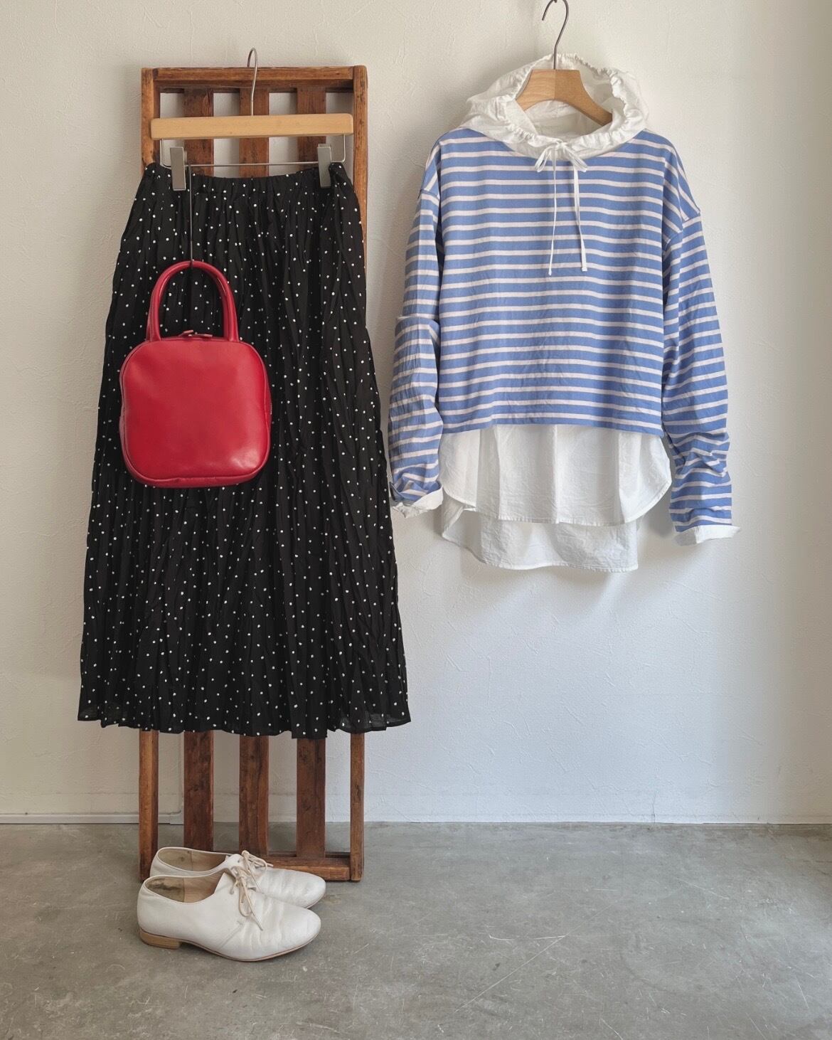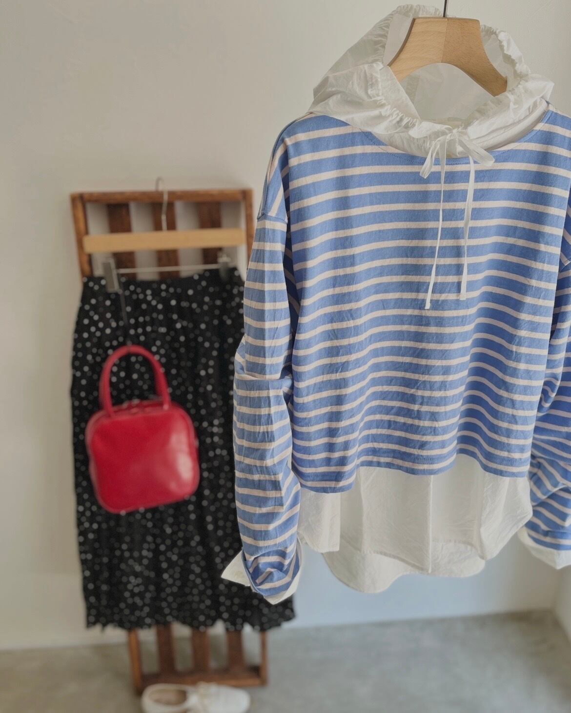 すとんと着るだけで、ウエストの位置がさりげなく上がって、ボリュームのあるタックスカートや、太めのチノパンツと合わせたときの「もたつかない」絶妙なバランス。