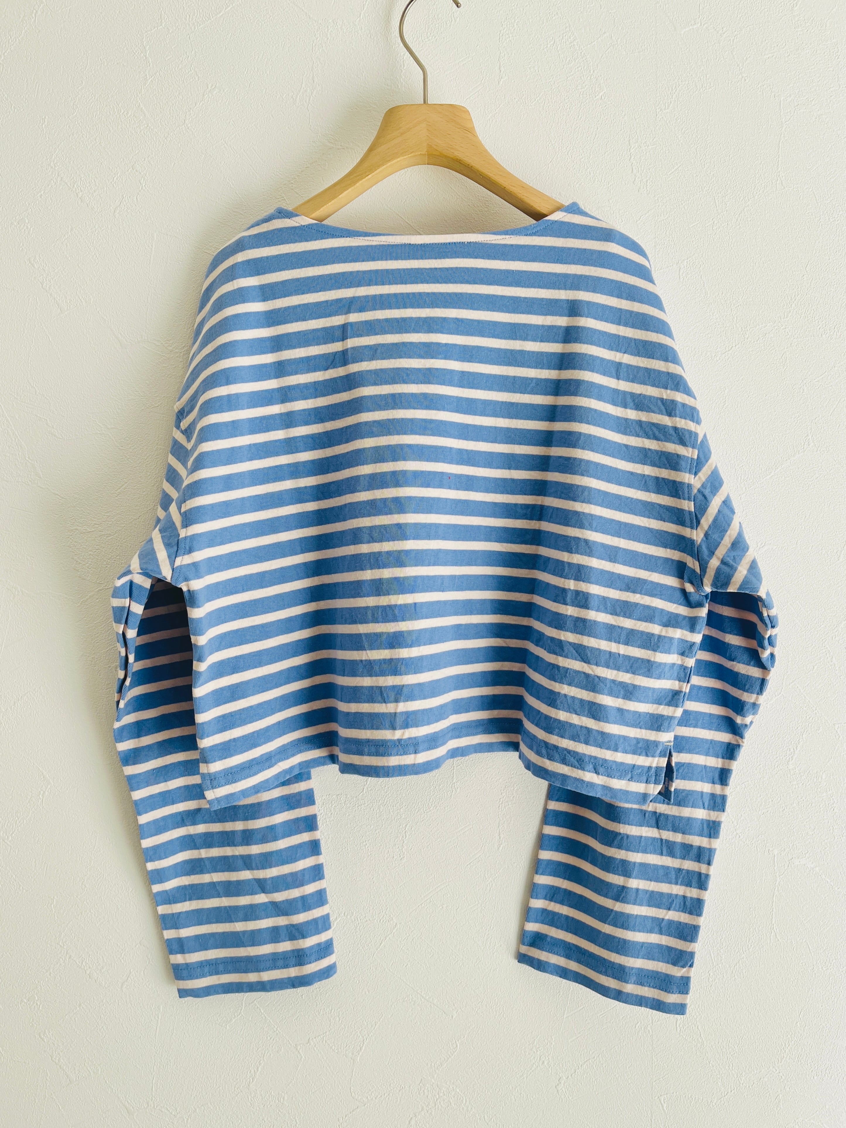 いつものボーダーも、丈を少し短くするだけでなんだか新鮮なコーデに。