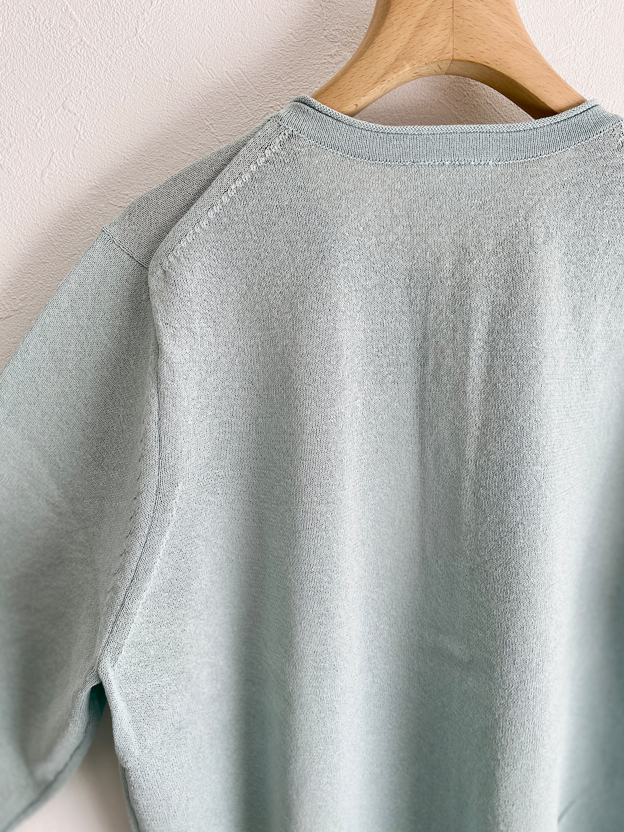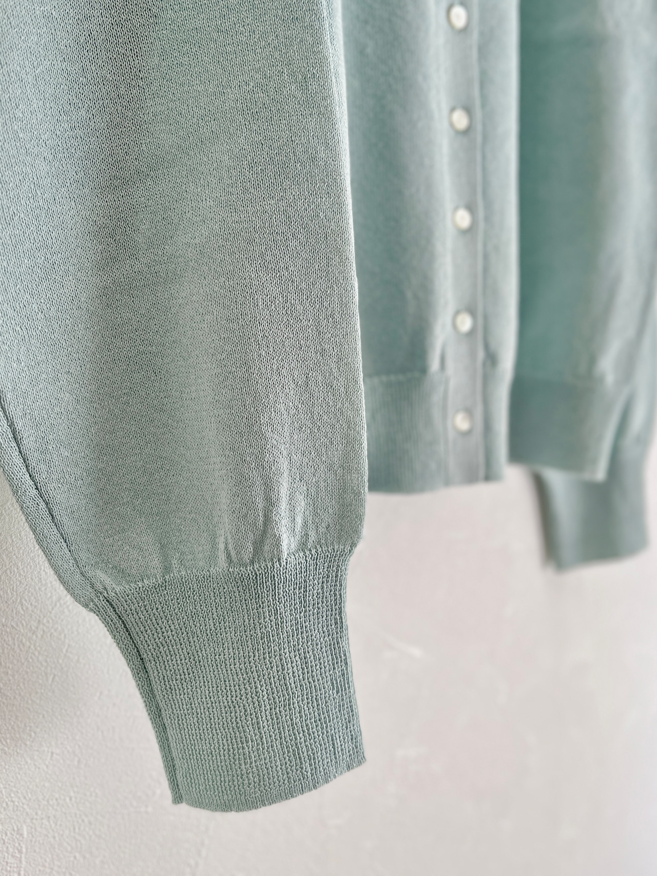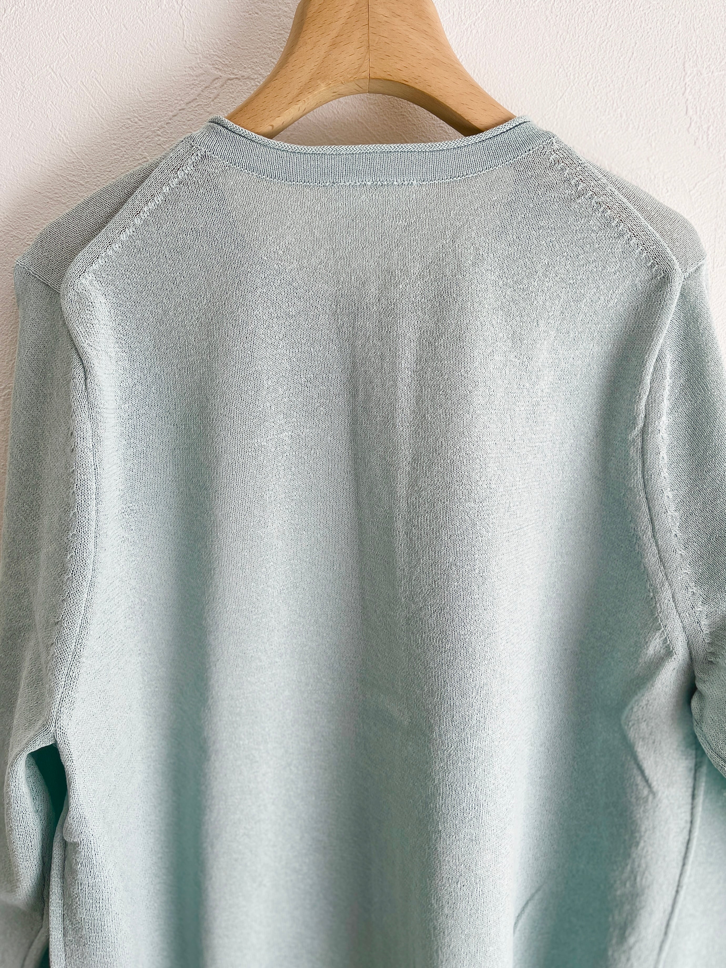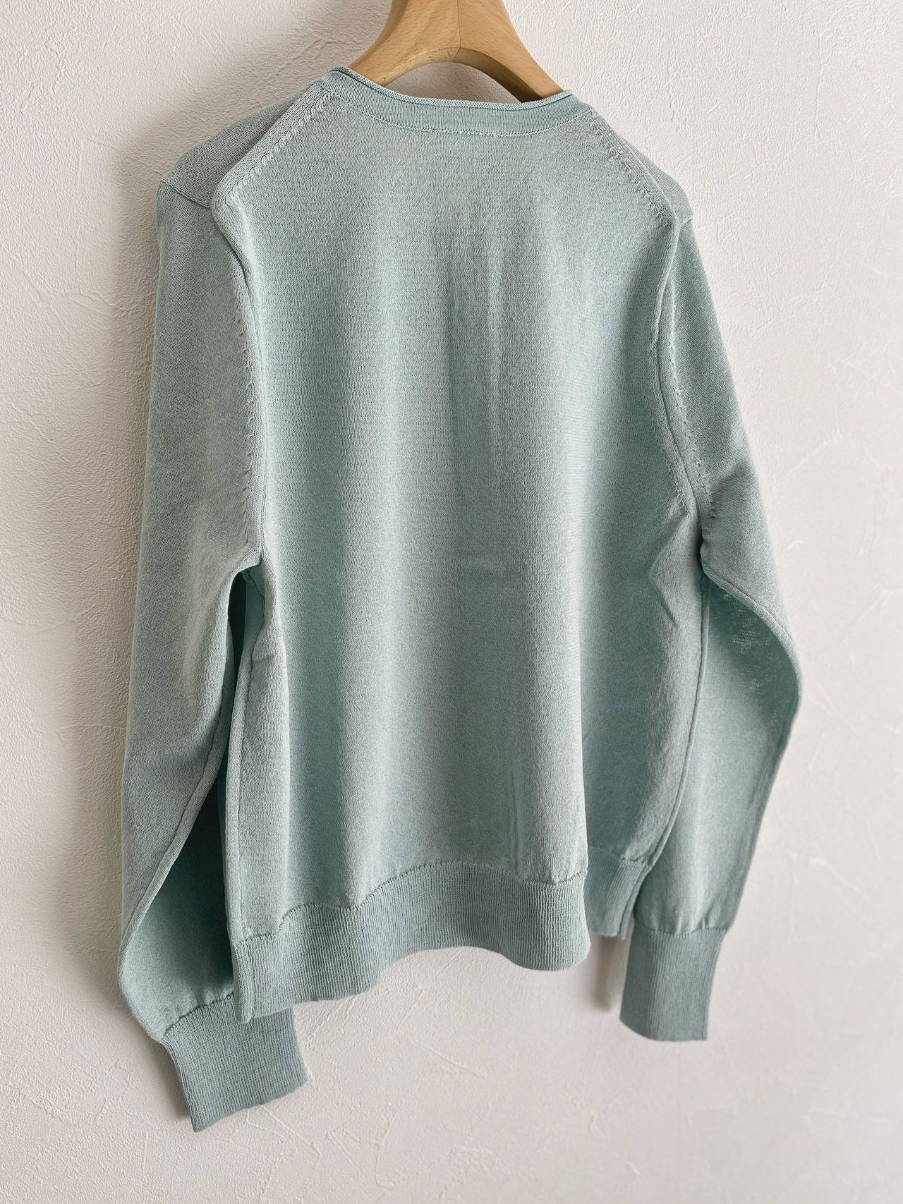 定番の丸首カーディガンも、紙素材が加わることでぐっと表情豊かになりました。