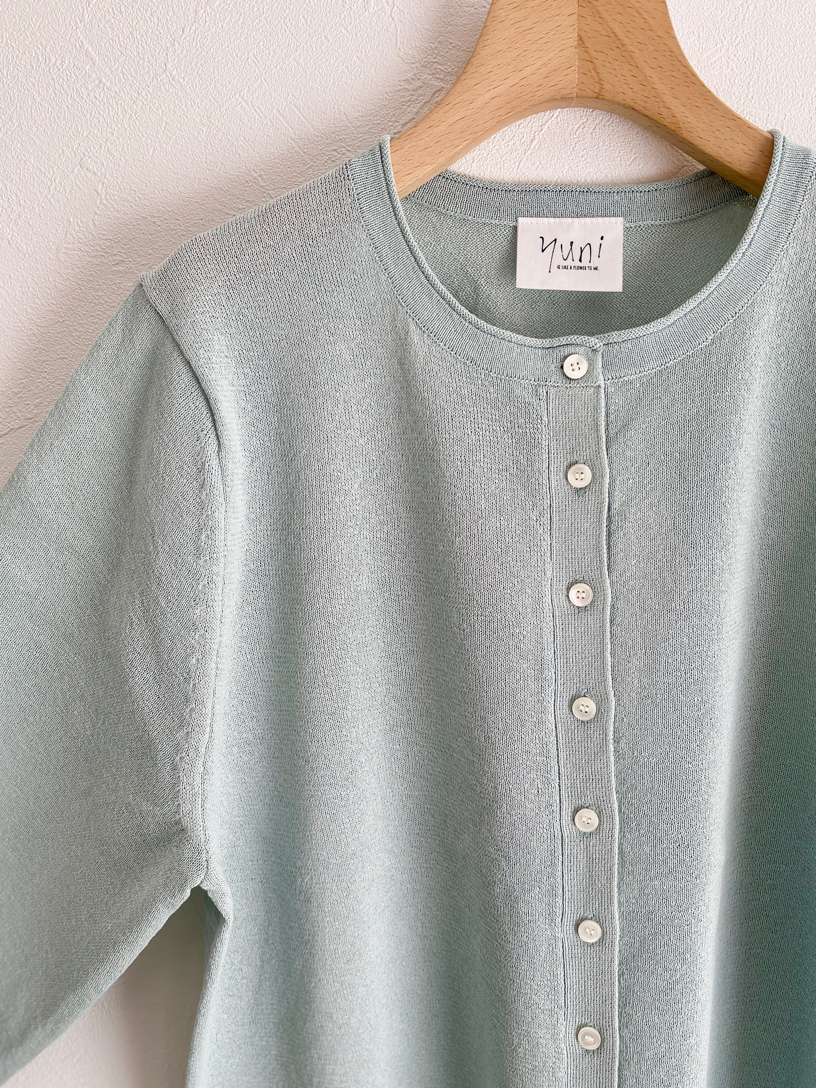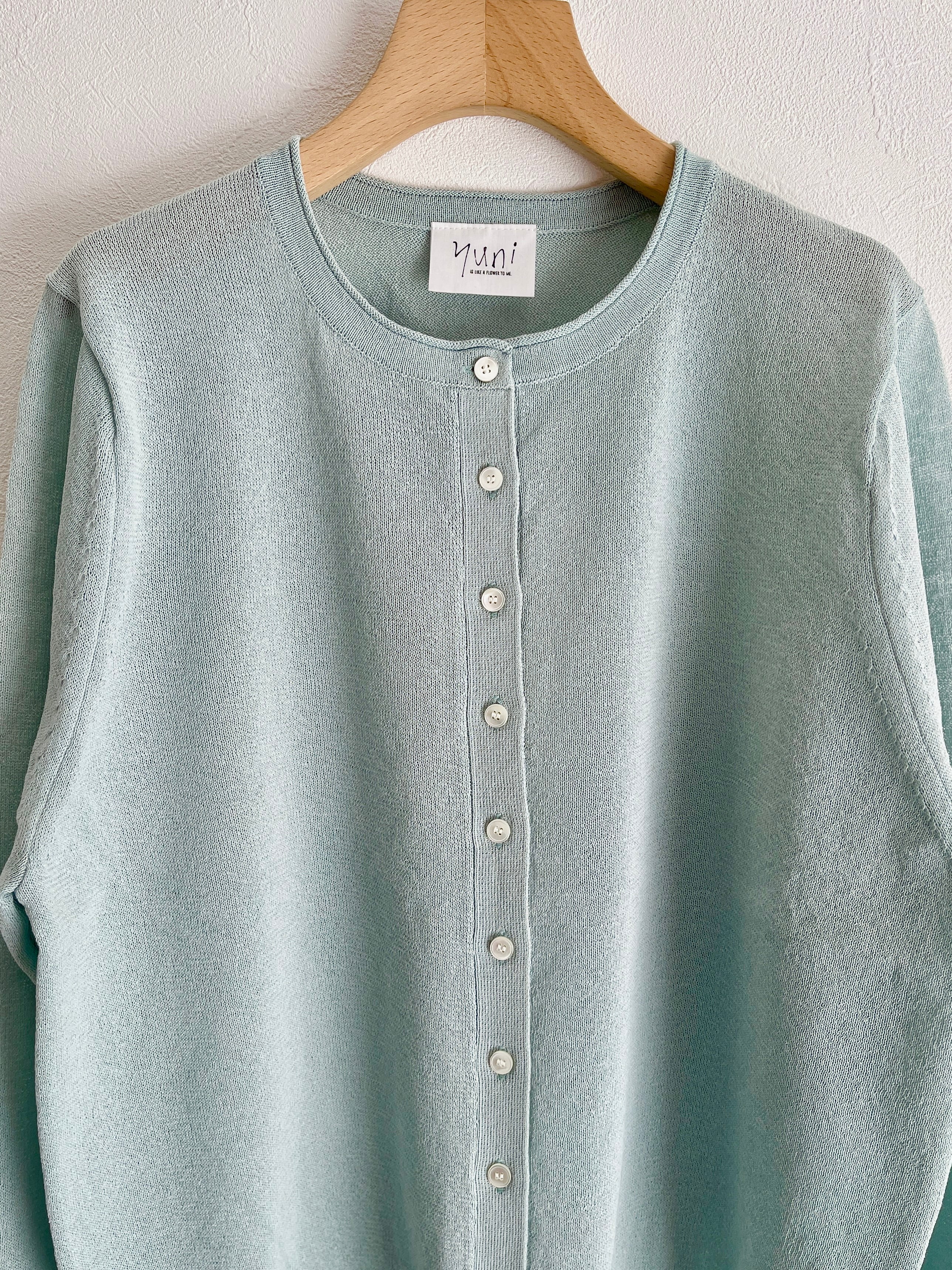 【涼やかな空気を纏う、紙素材の丸首カーディガン】