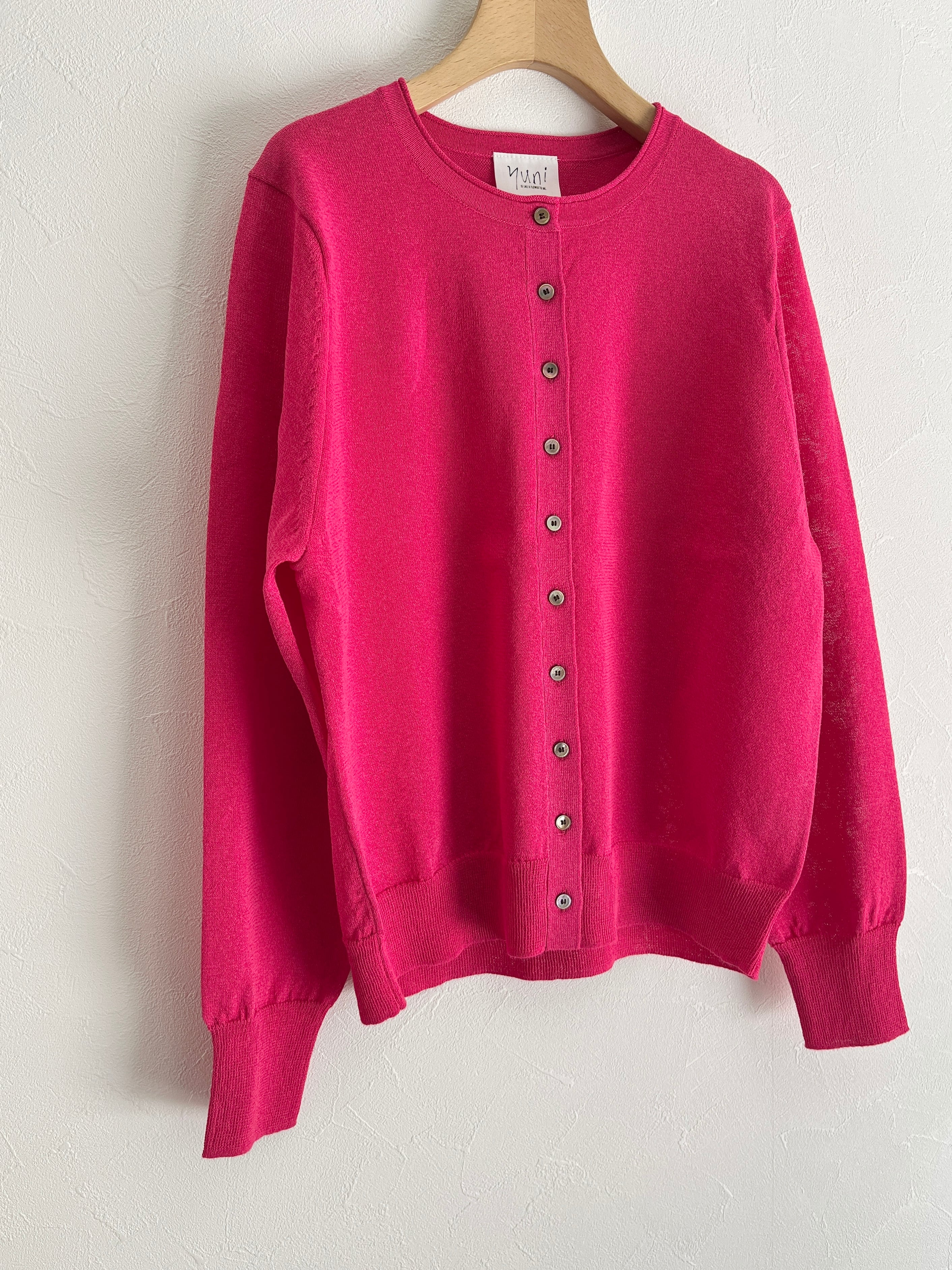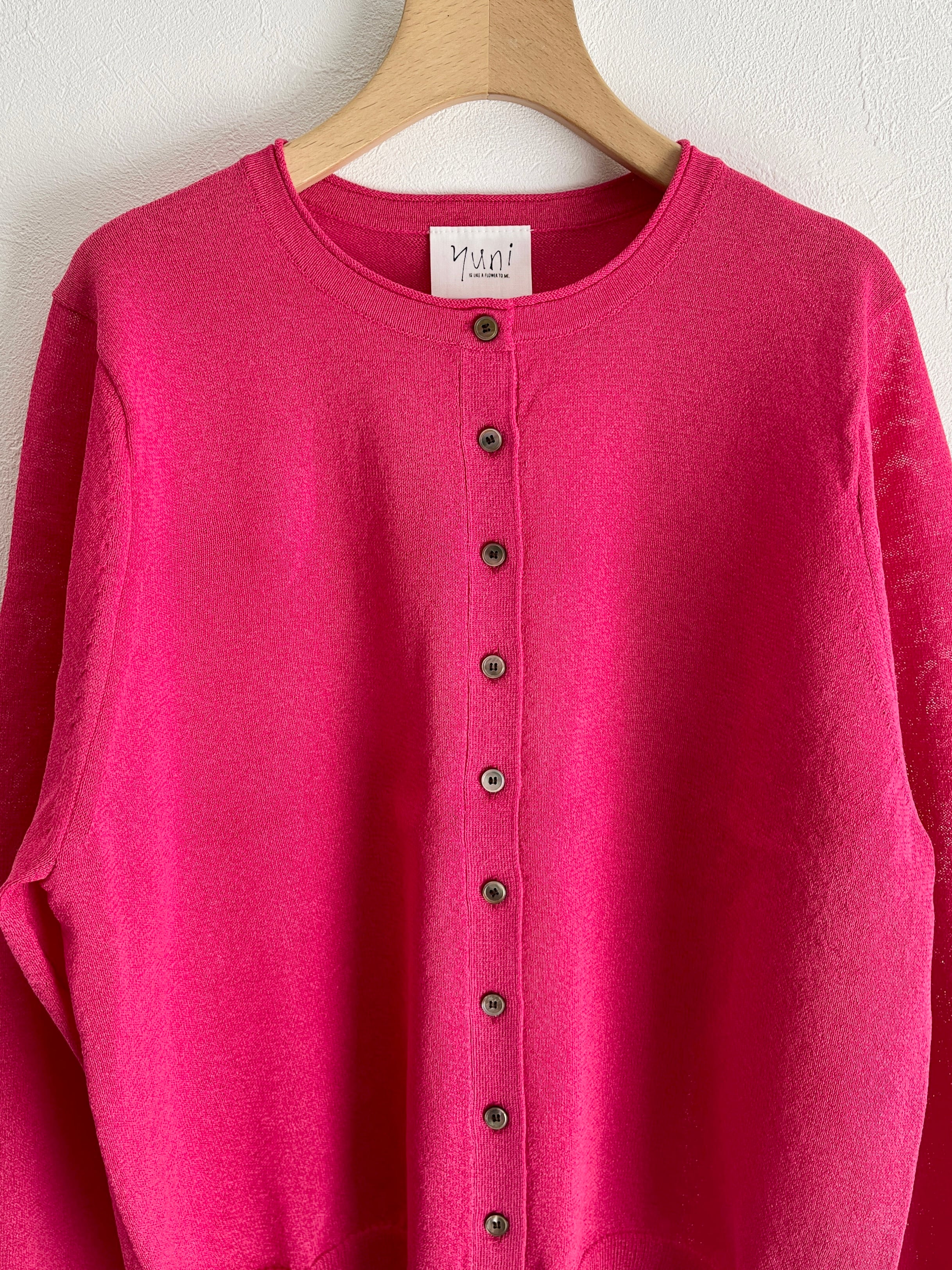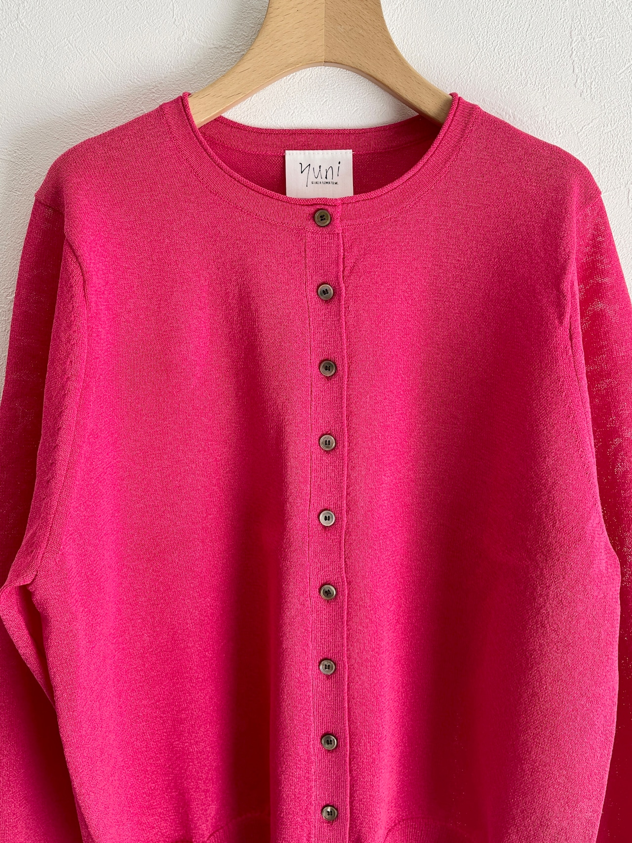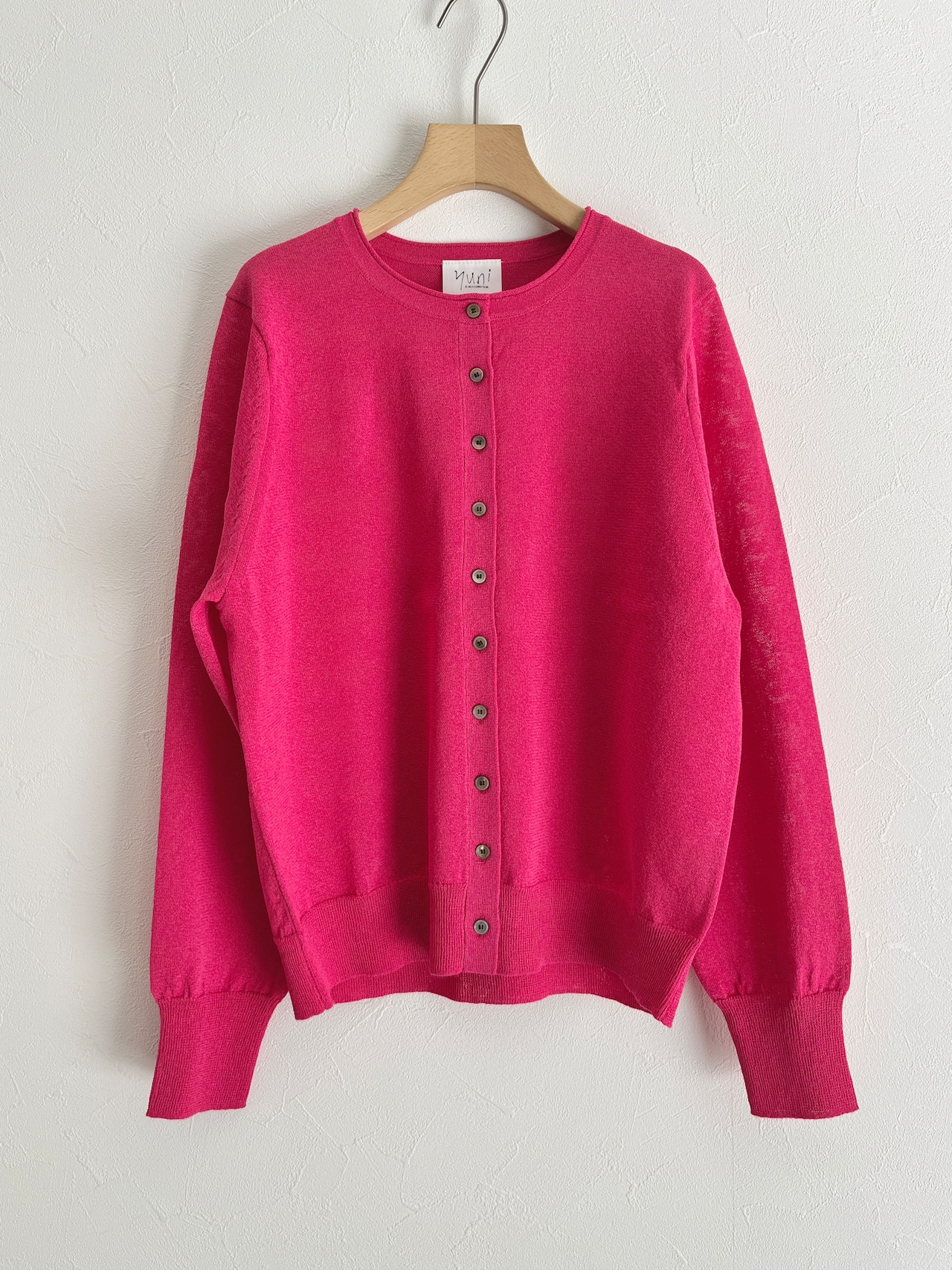 定番の丸首カーディガンも、紙素材が加わることでぐっと表情豊かになりました。