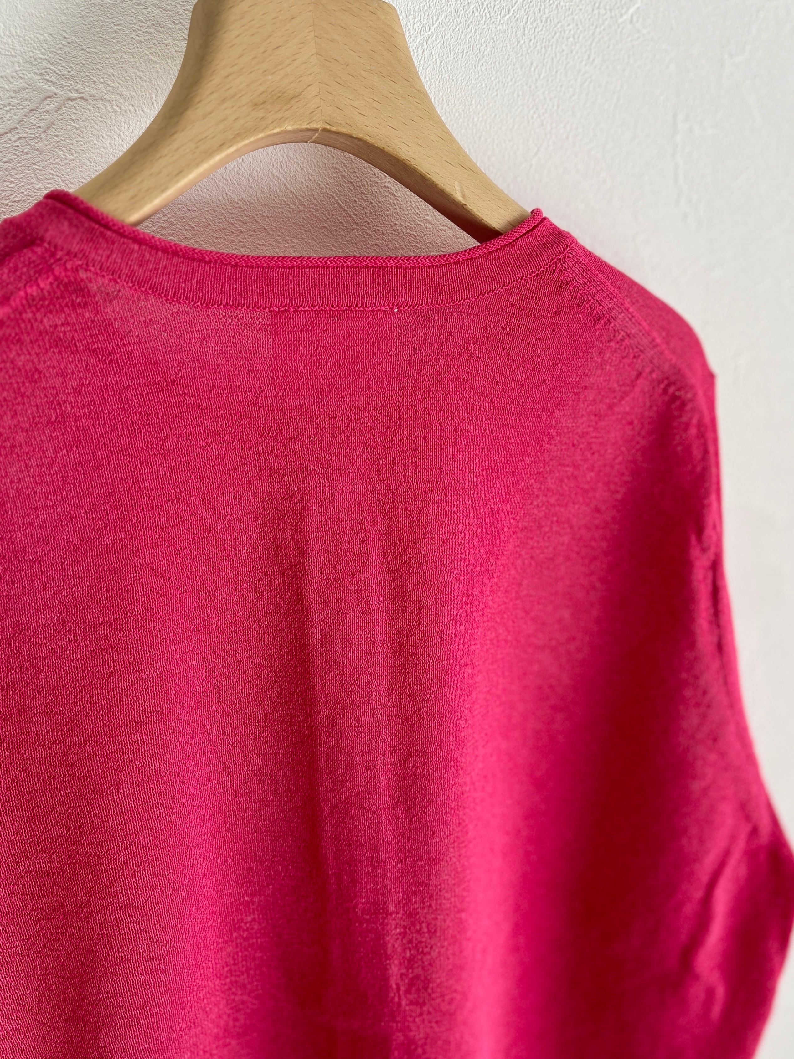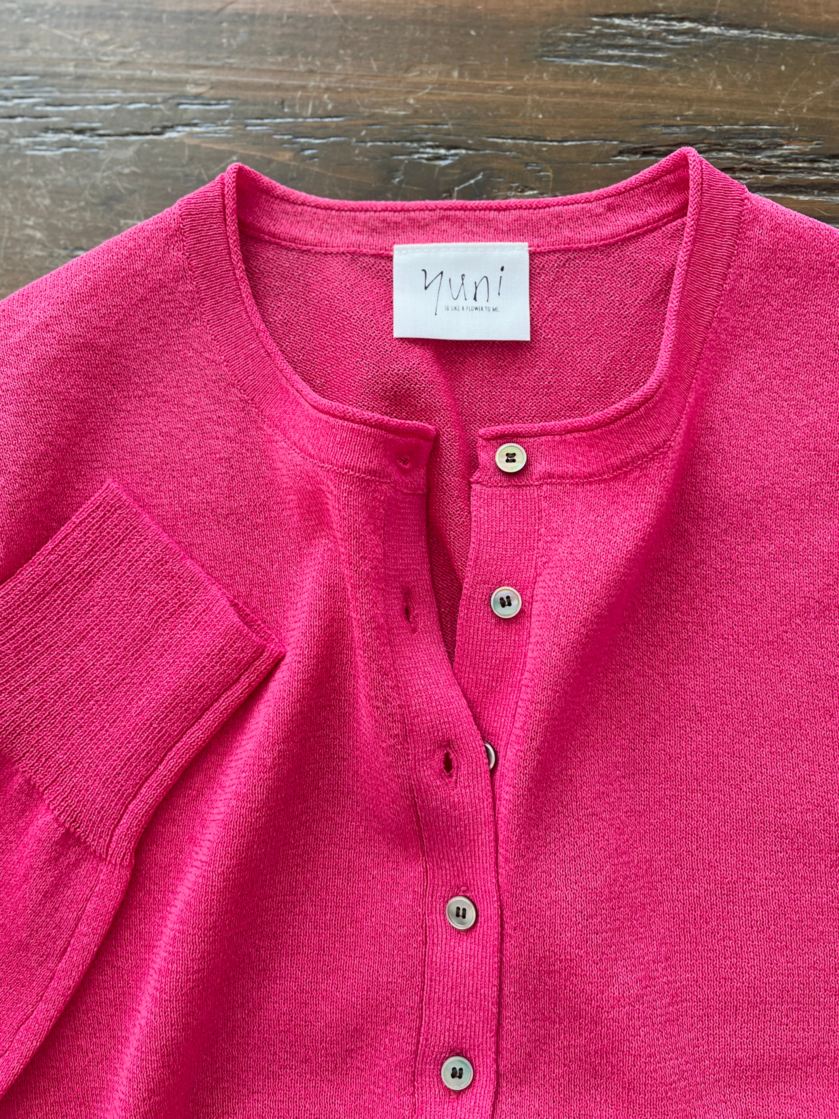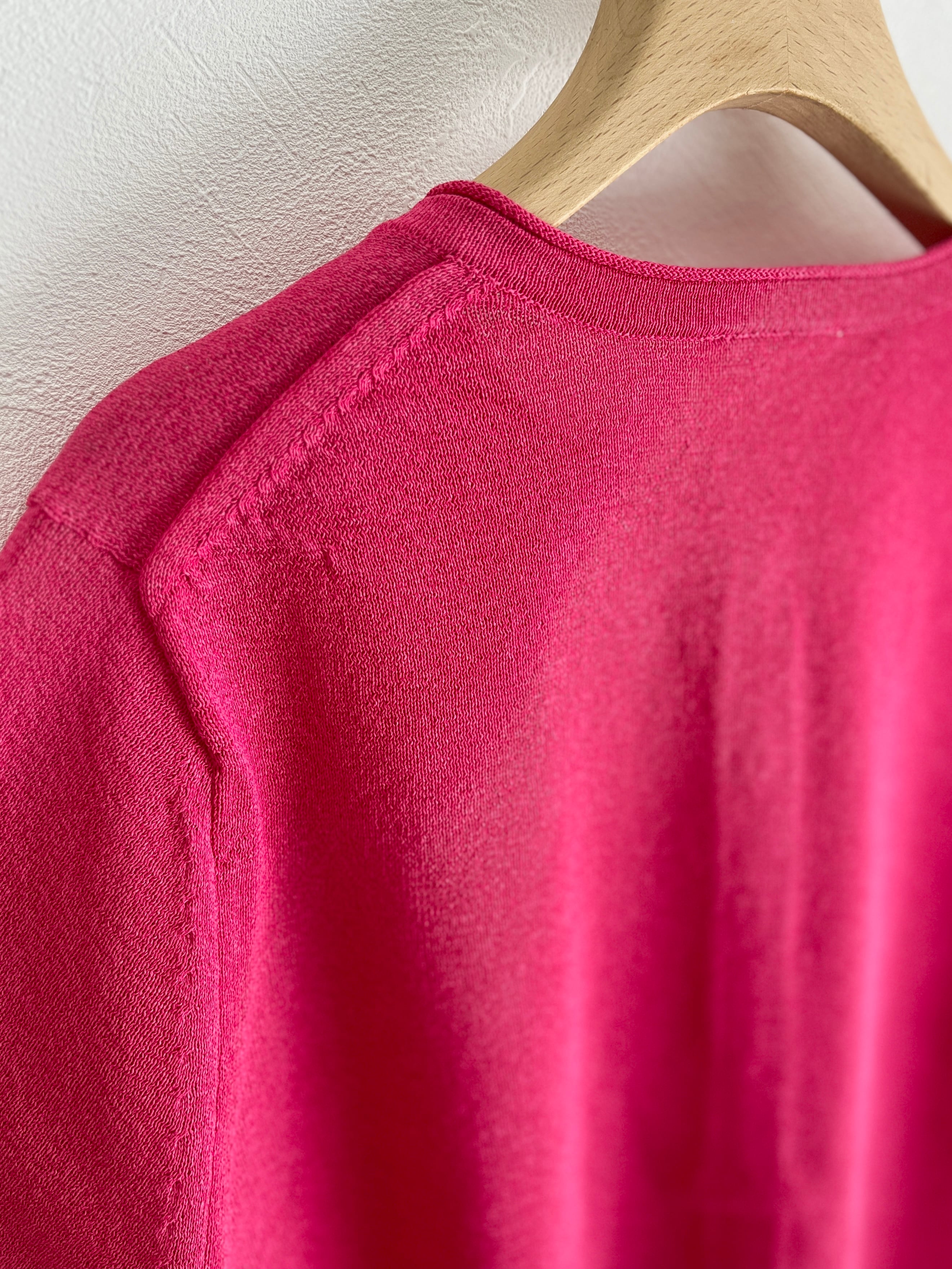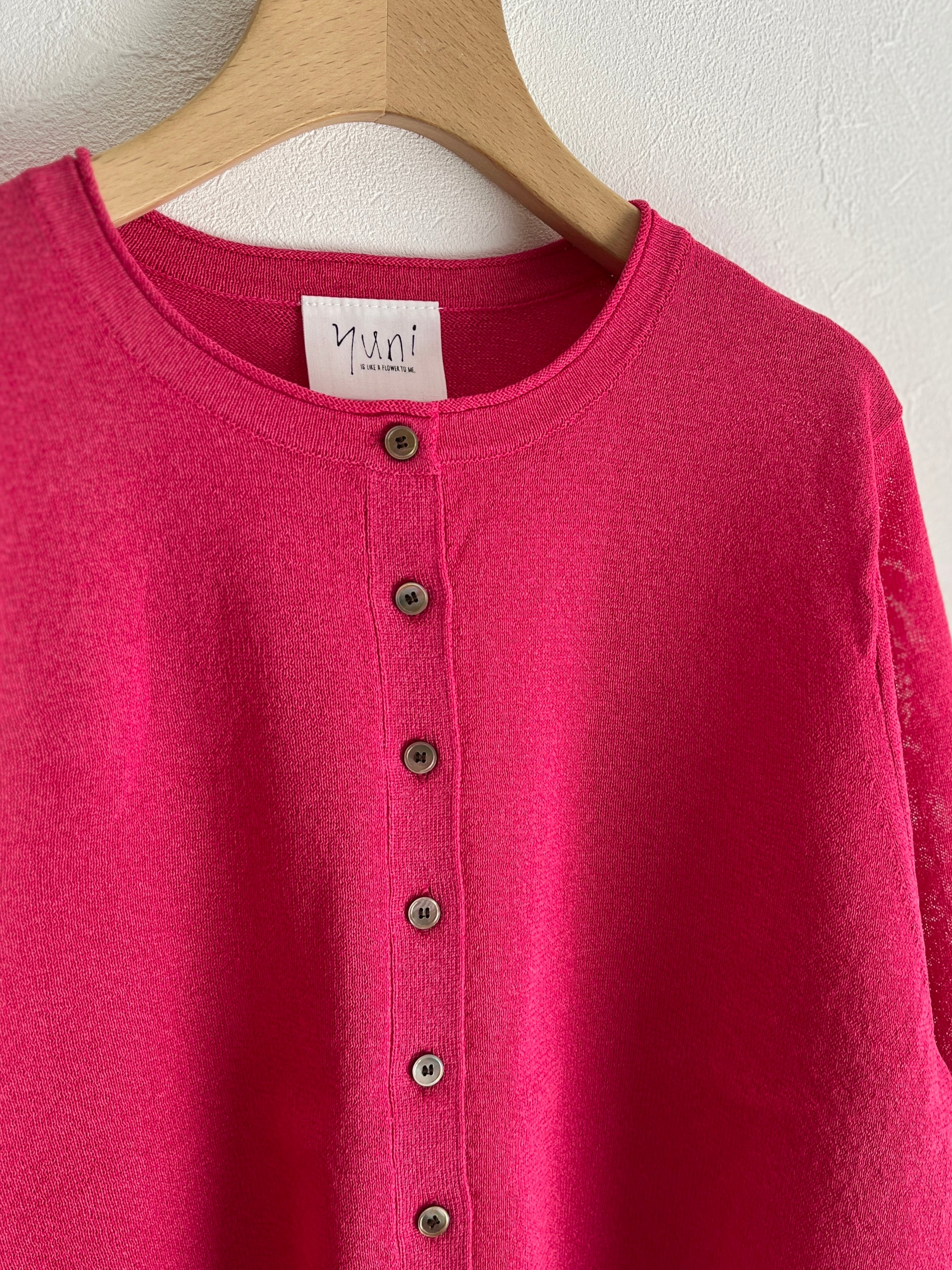 定番の丸首カーディガンも、紙素材が加わることでぐっと表情豊かになりました。
