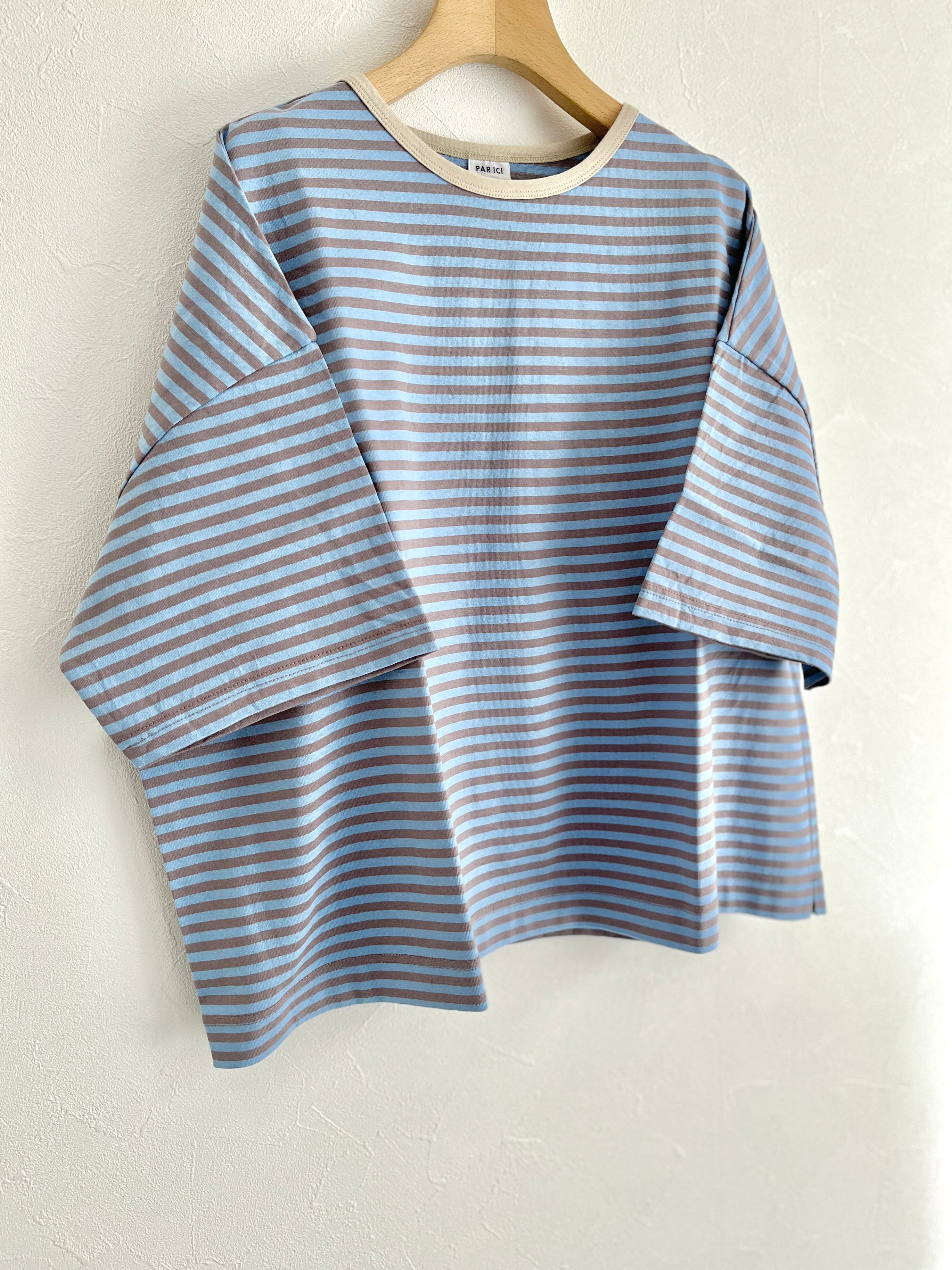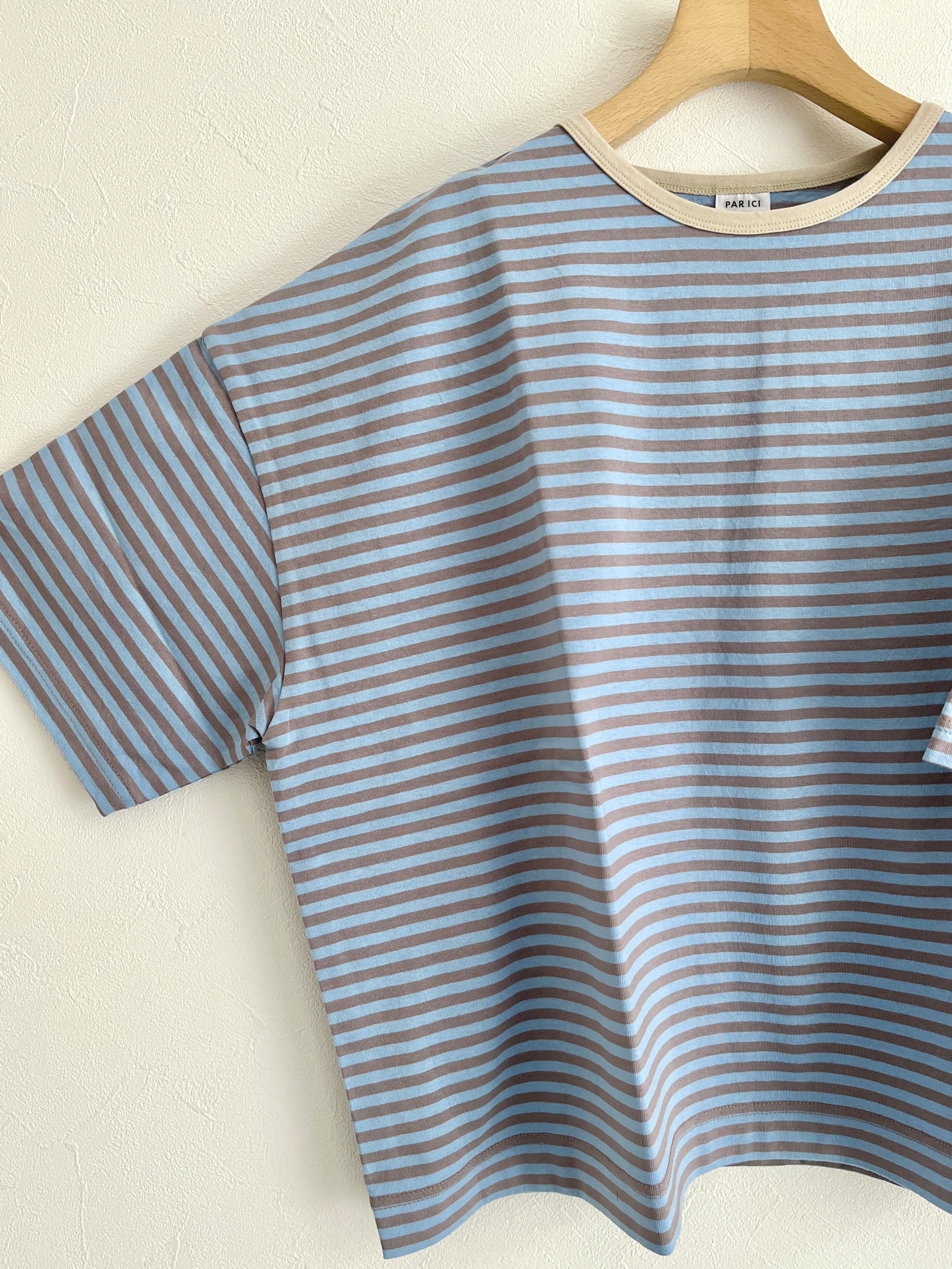 PAR ICI/ボーダー配色バインダー 5分袖BIG Tシャツ【SEASON COLOR】 (アオ系) :5001CT010261