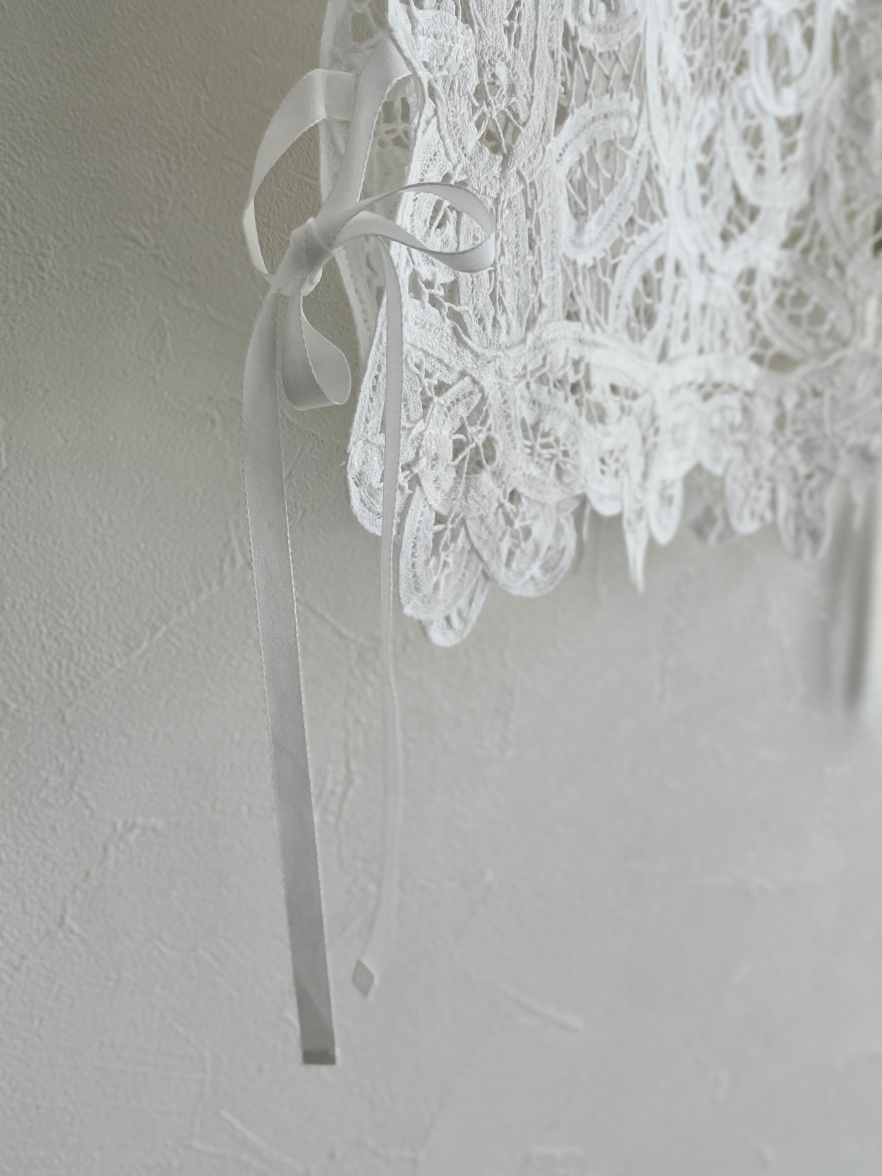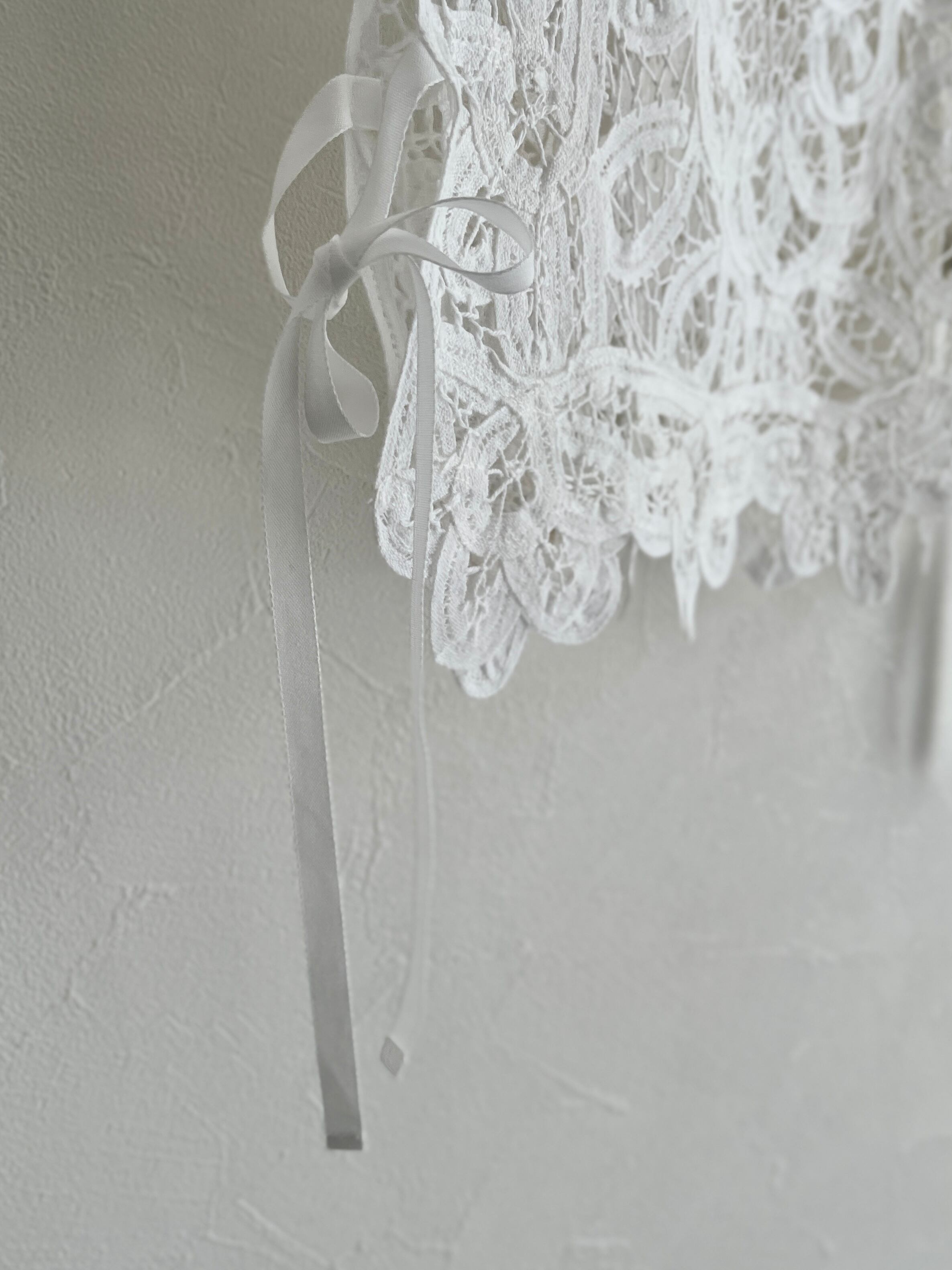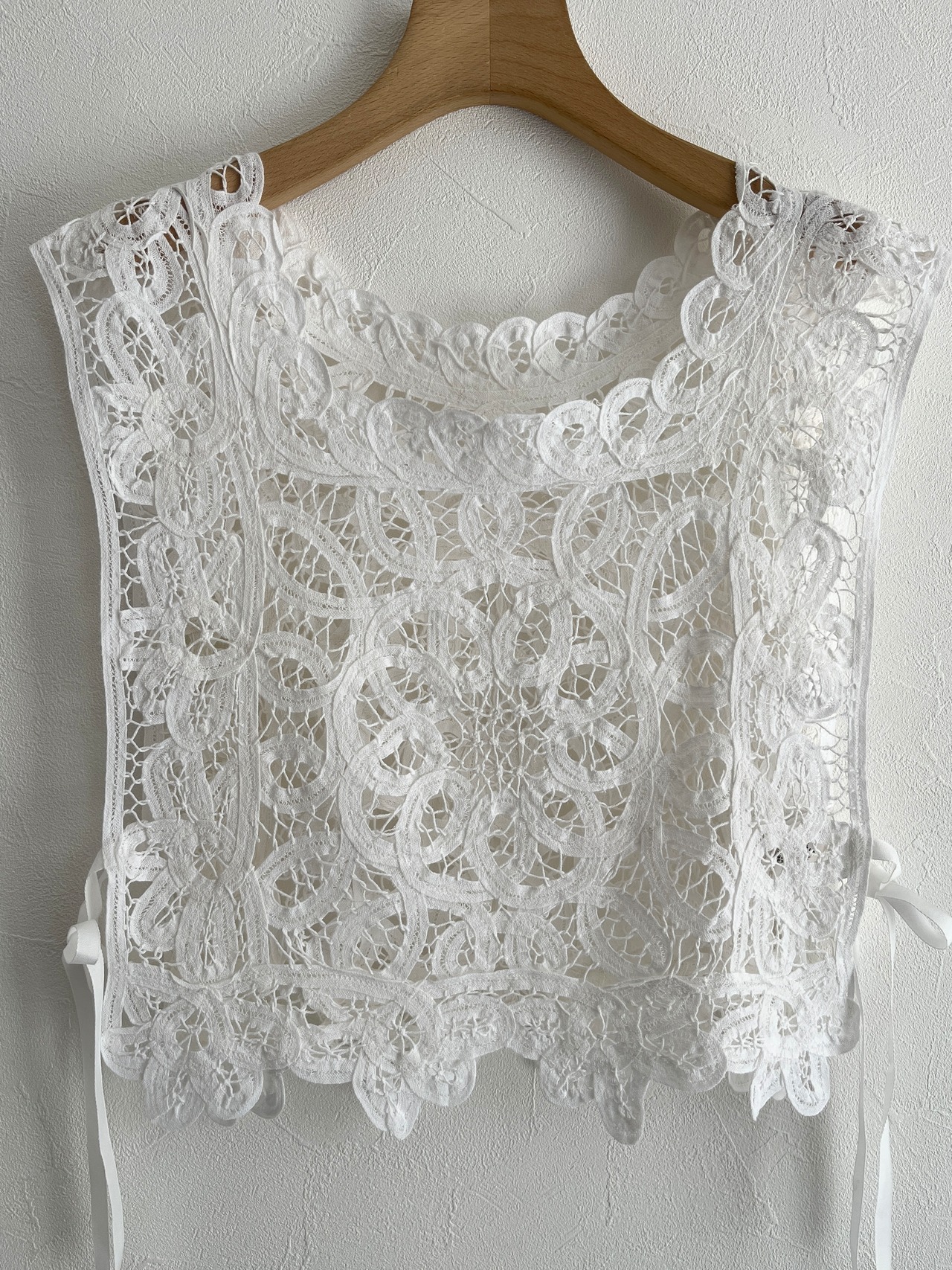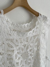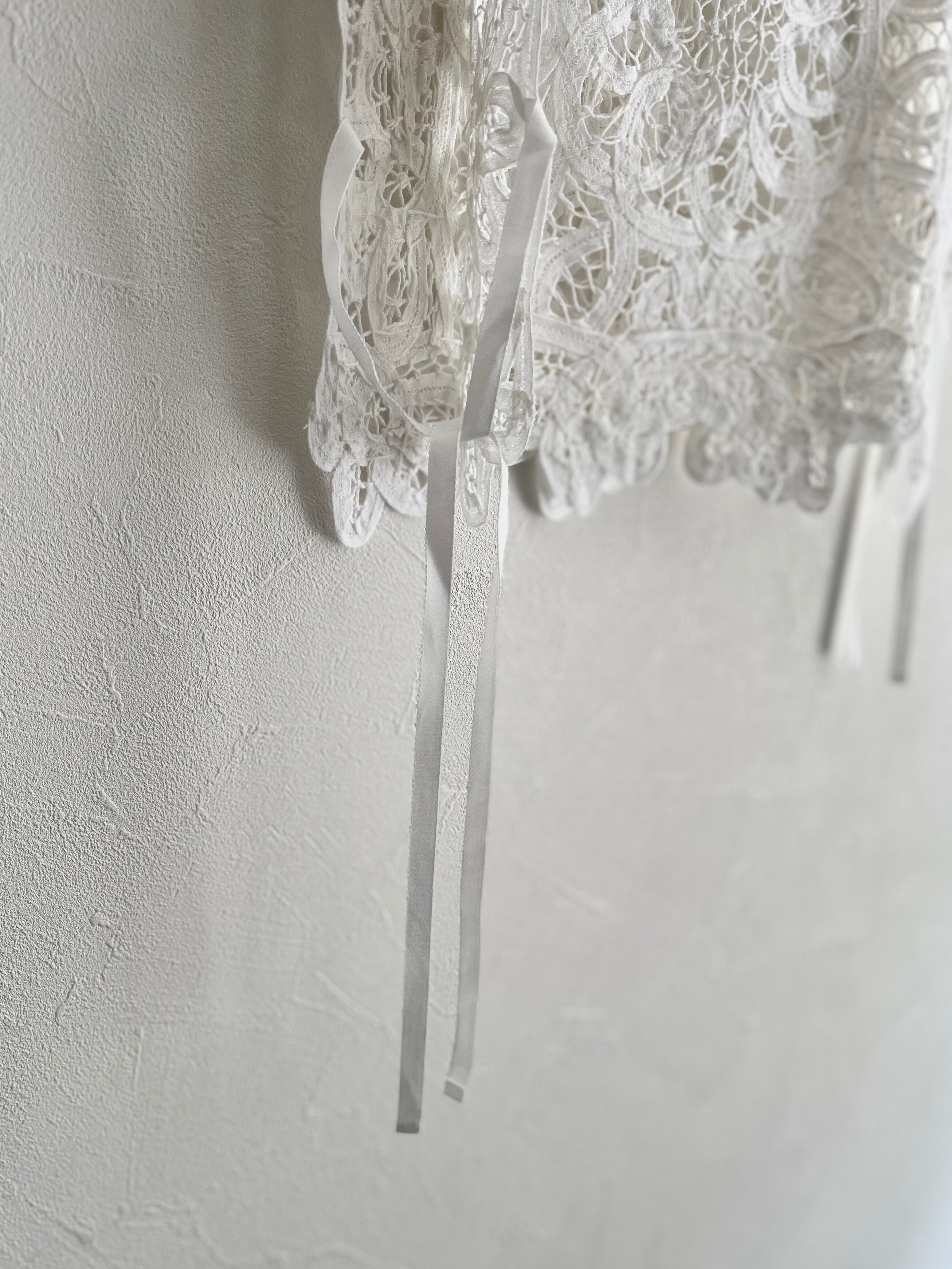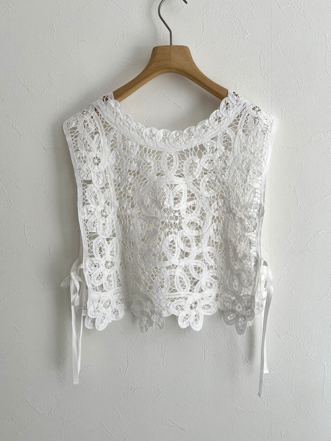 繊細なバテンレースを使用したヴィンテージライクなレースベスト。