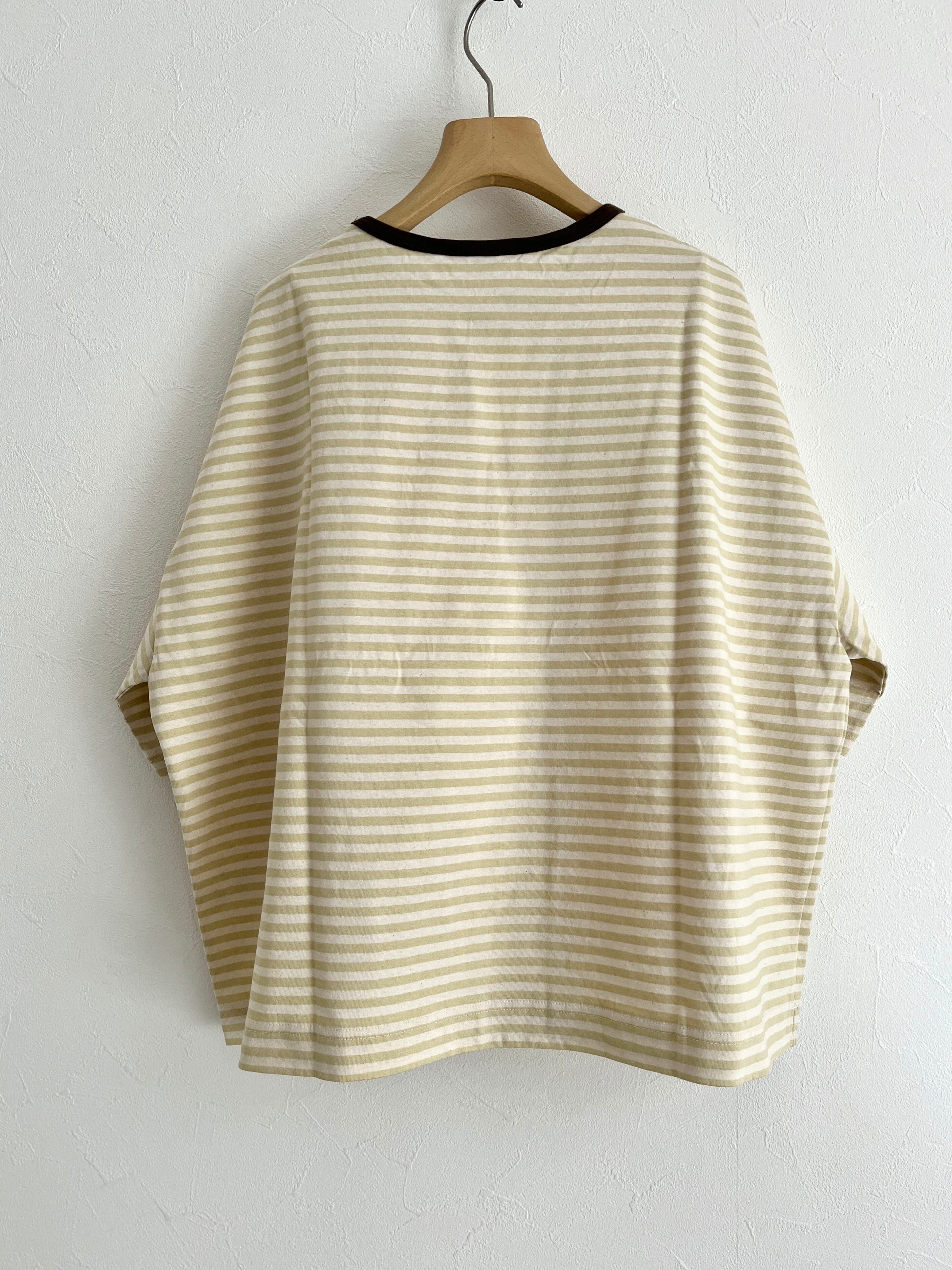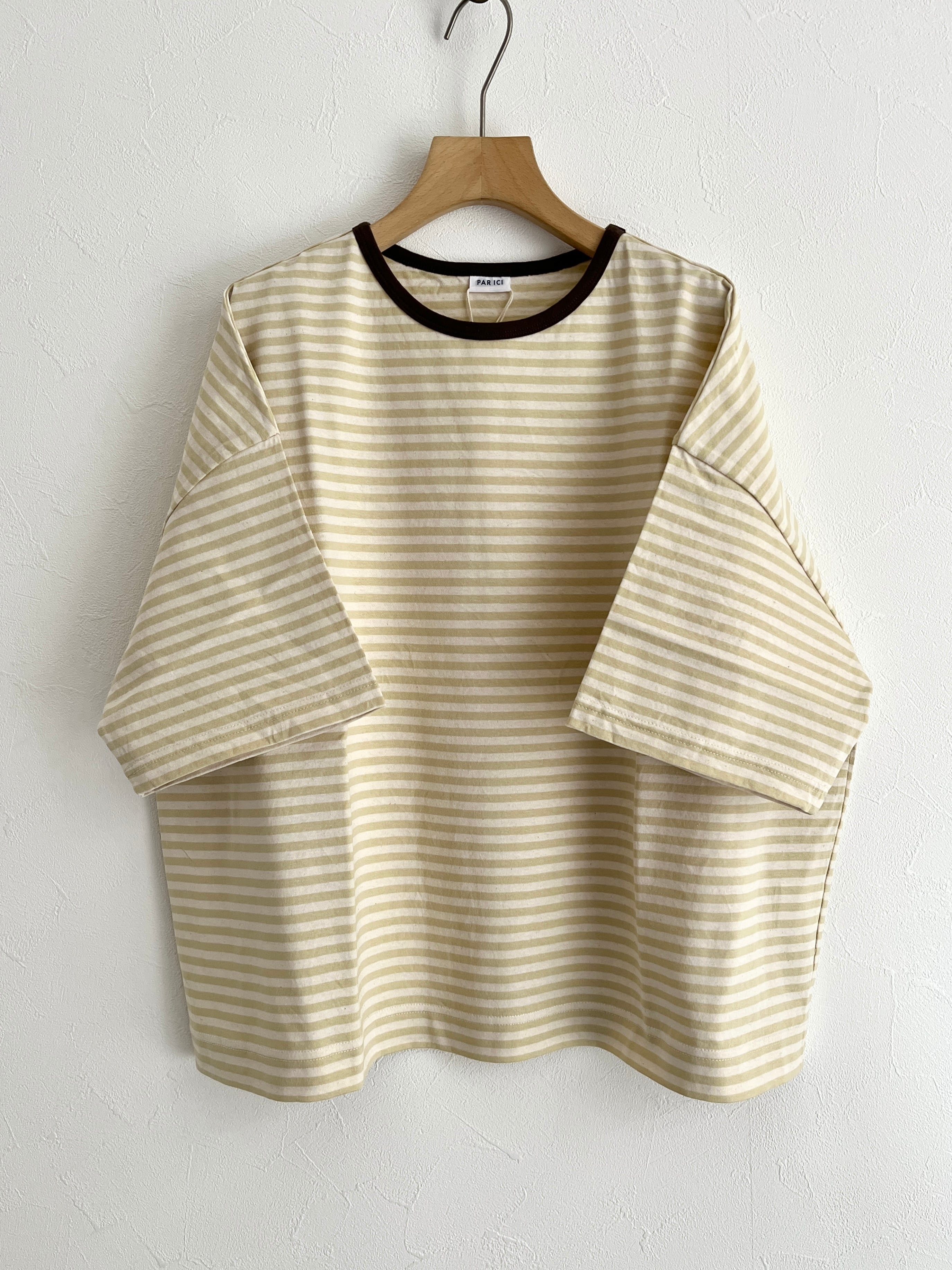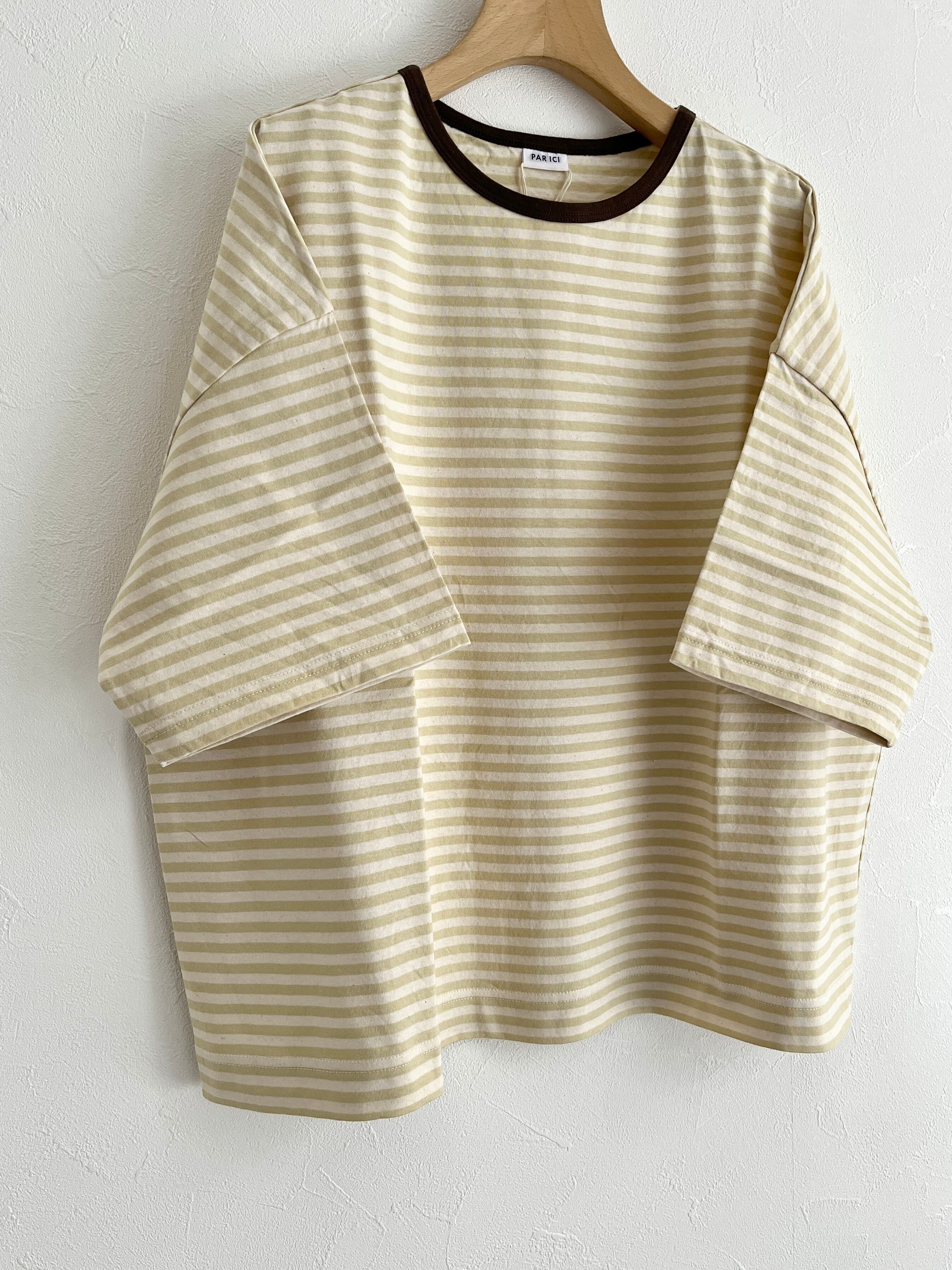 PAR ICI/ボーダー配色バインダー 5分袖BIG Tシャツ【SEASON COLOR】 (キナリ):5001CT010261