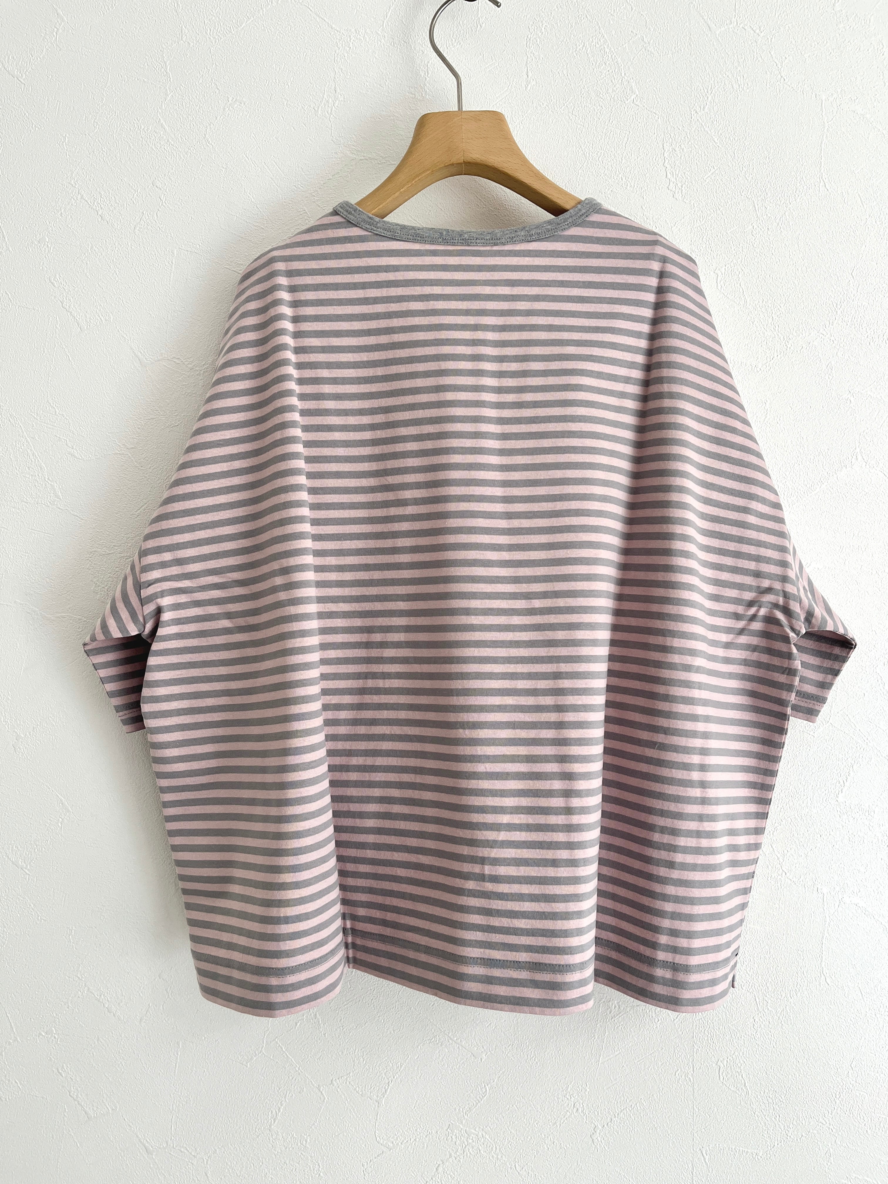PAR ICI/ボーダー配色バインダー 5分袖BIG Tシャツ【SEASON COLOR】 (ピンク):5001CT010261