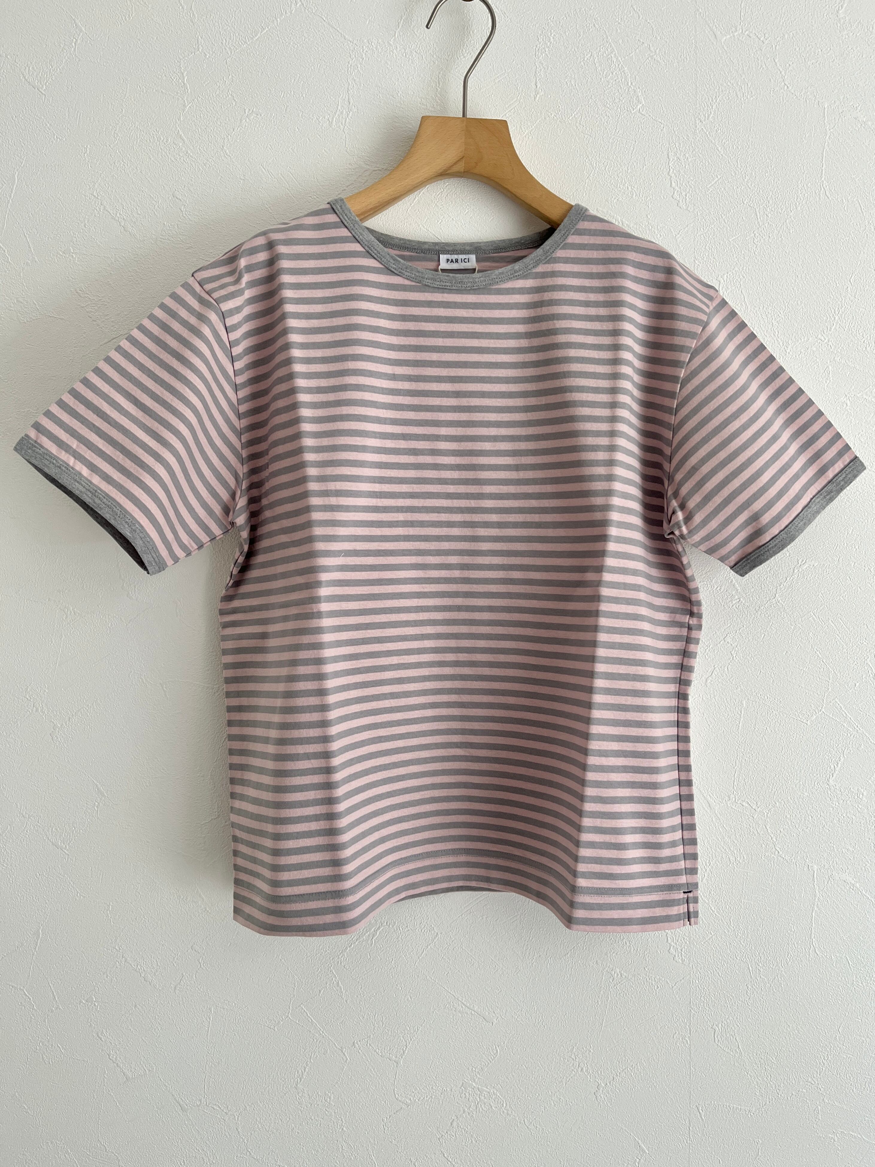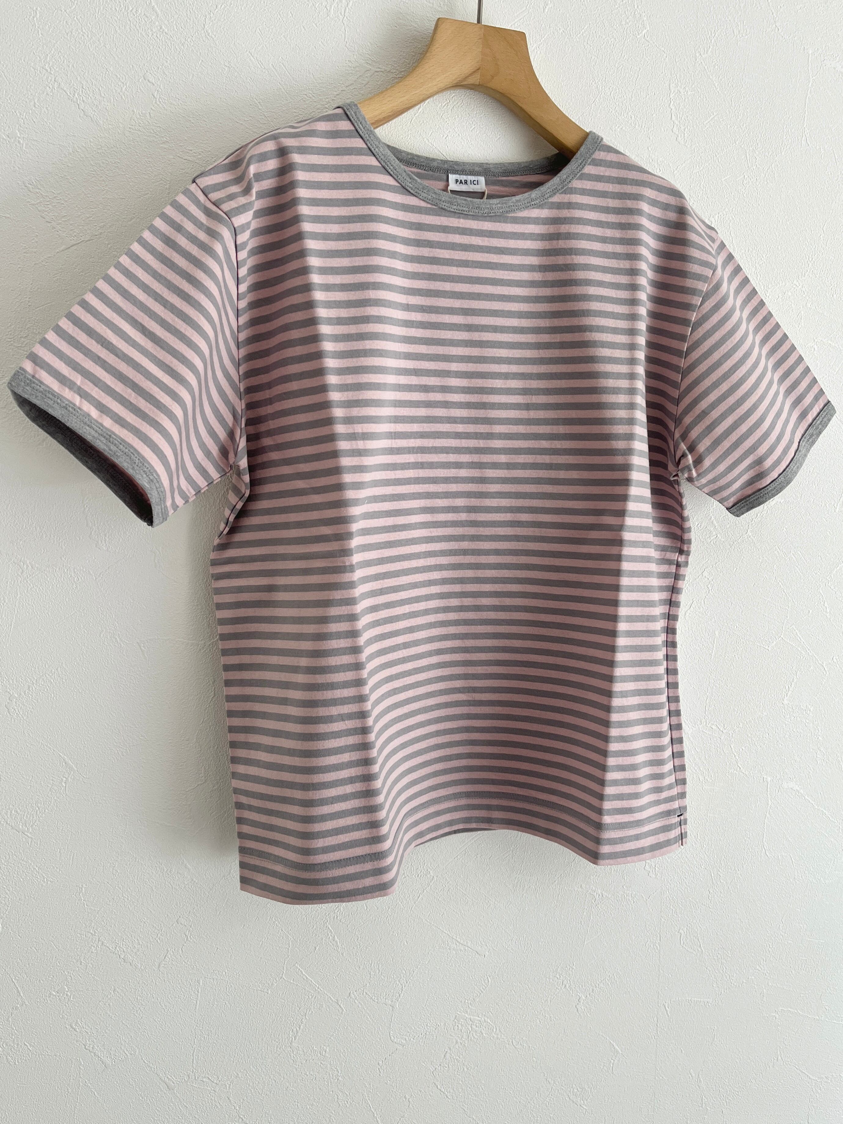 PAR ICI/ボーダー配色バインダー 半袖Tシャツ【SEASON COLOR】(ピンク):5001CT009261