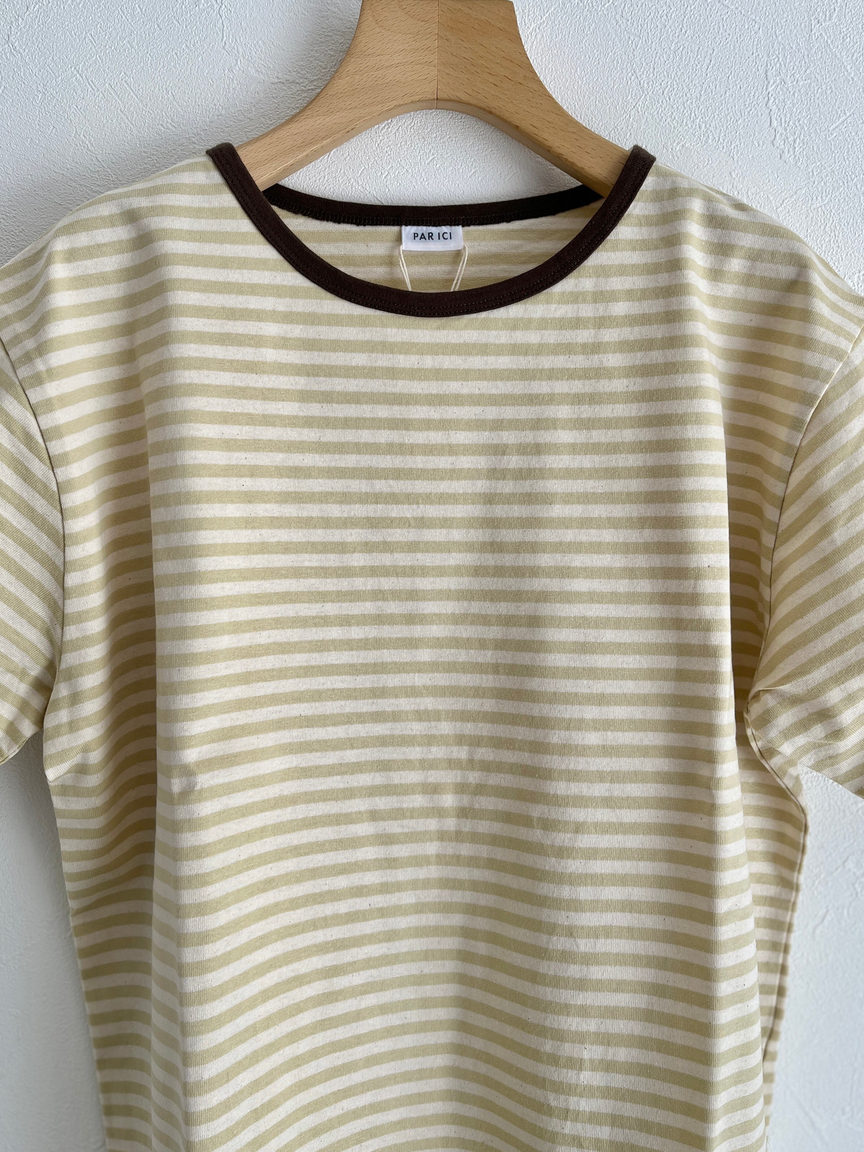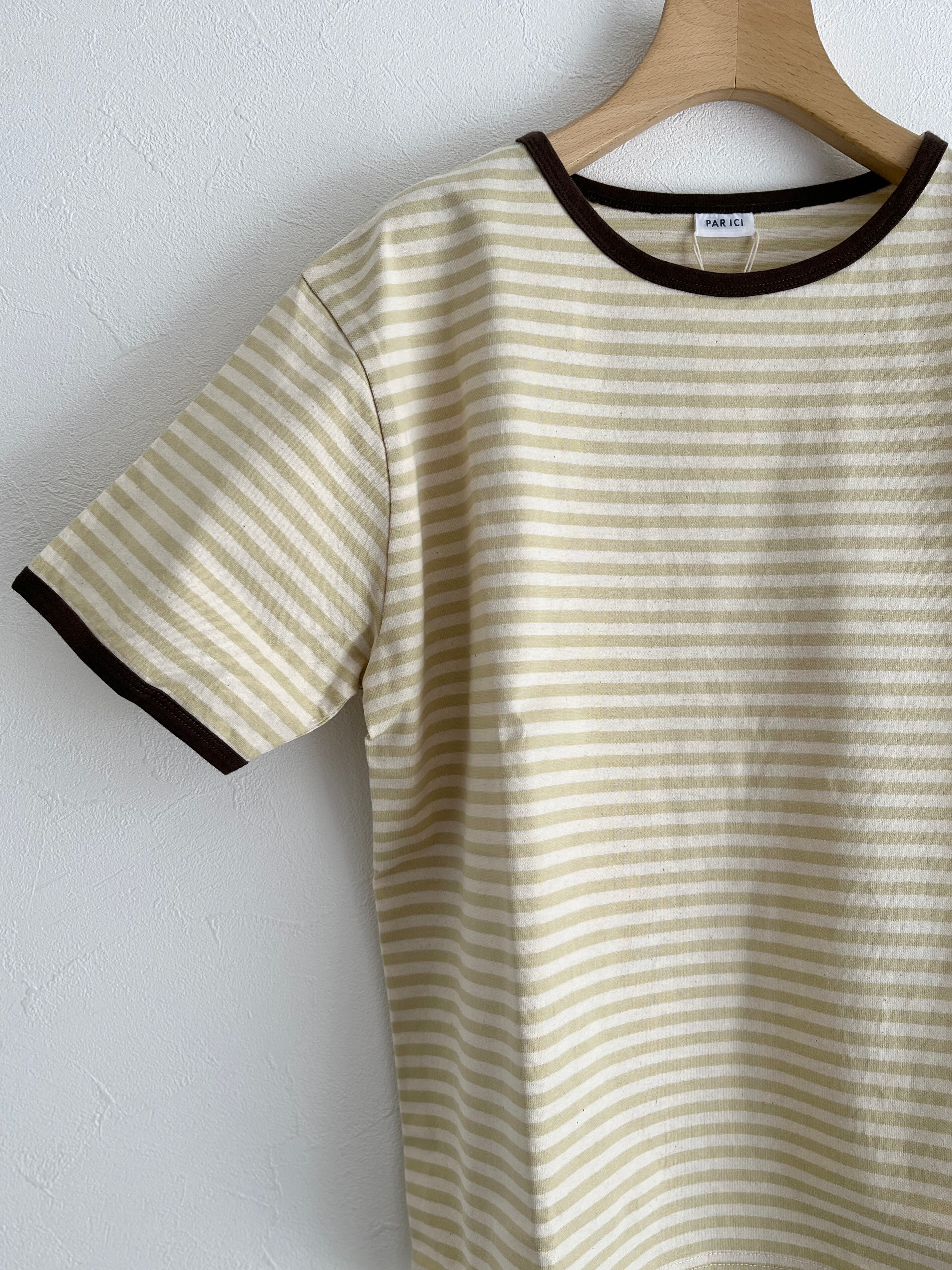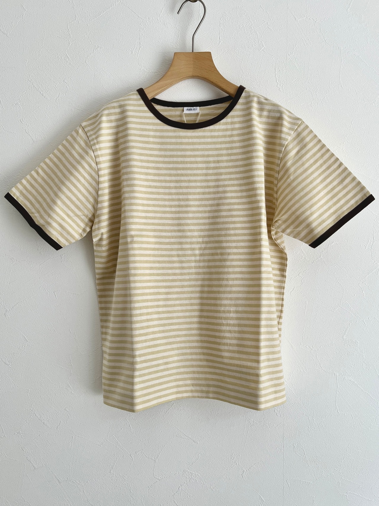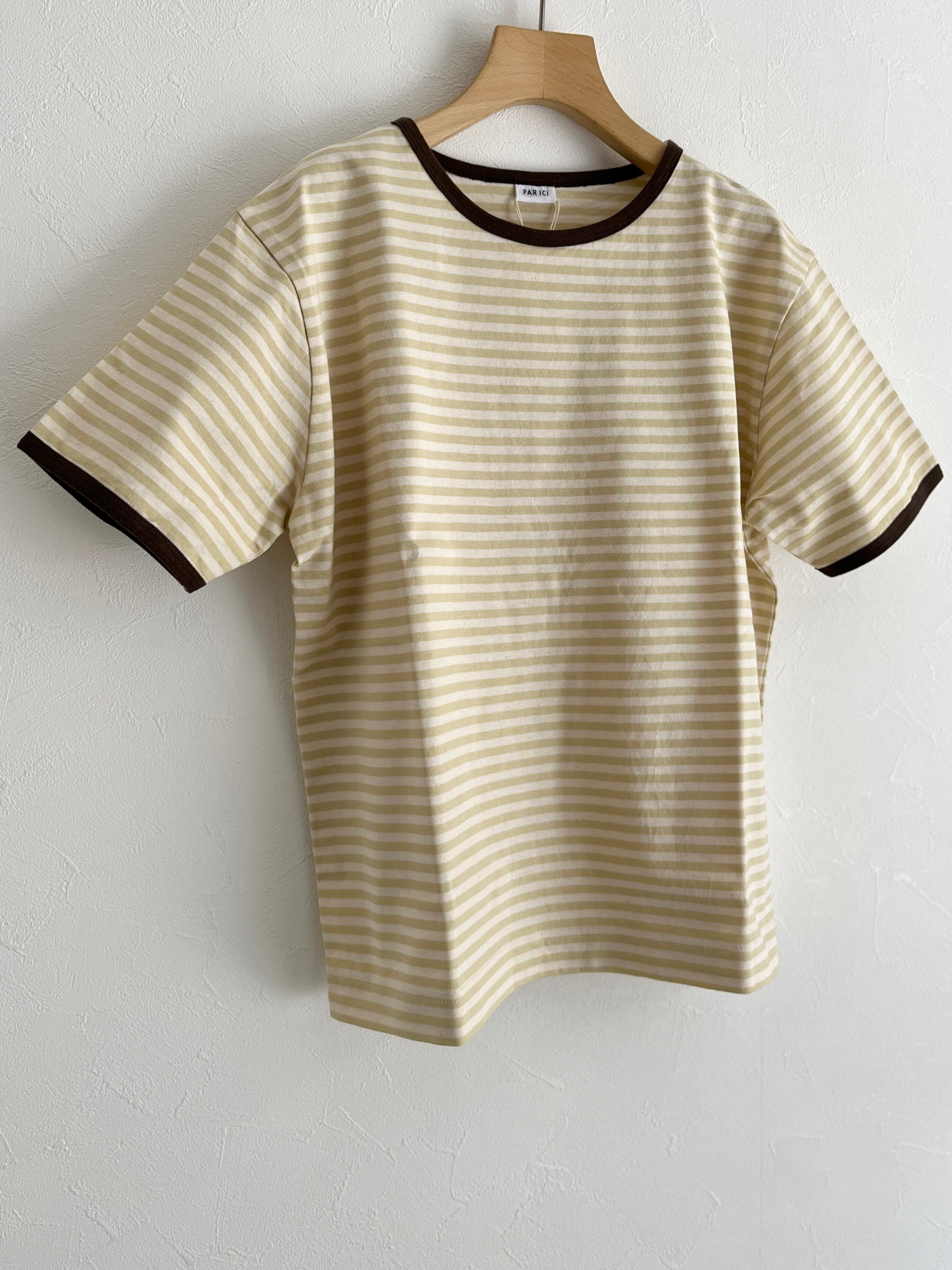 PAR ICI/ボーダー配色バインダー 半袖Tシャツ【SEASON COLOR】 (キナリ):5001CT009261
