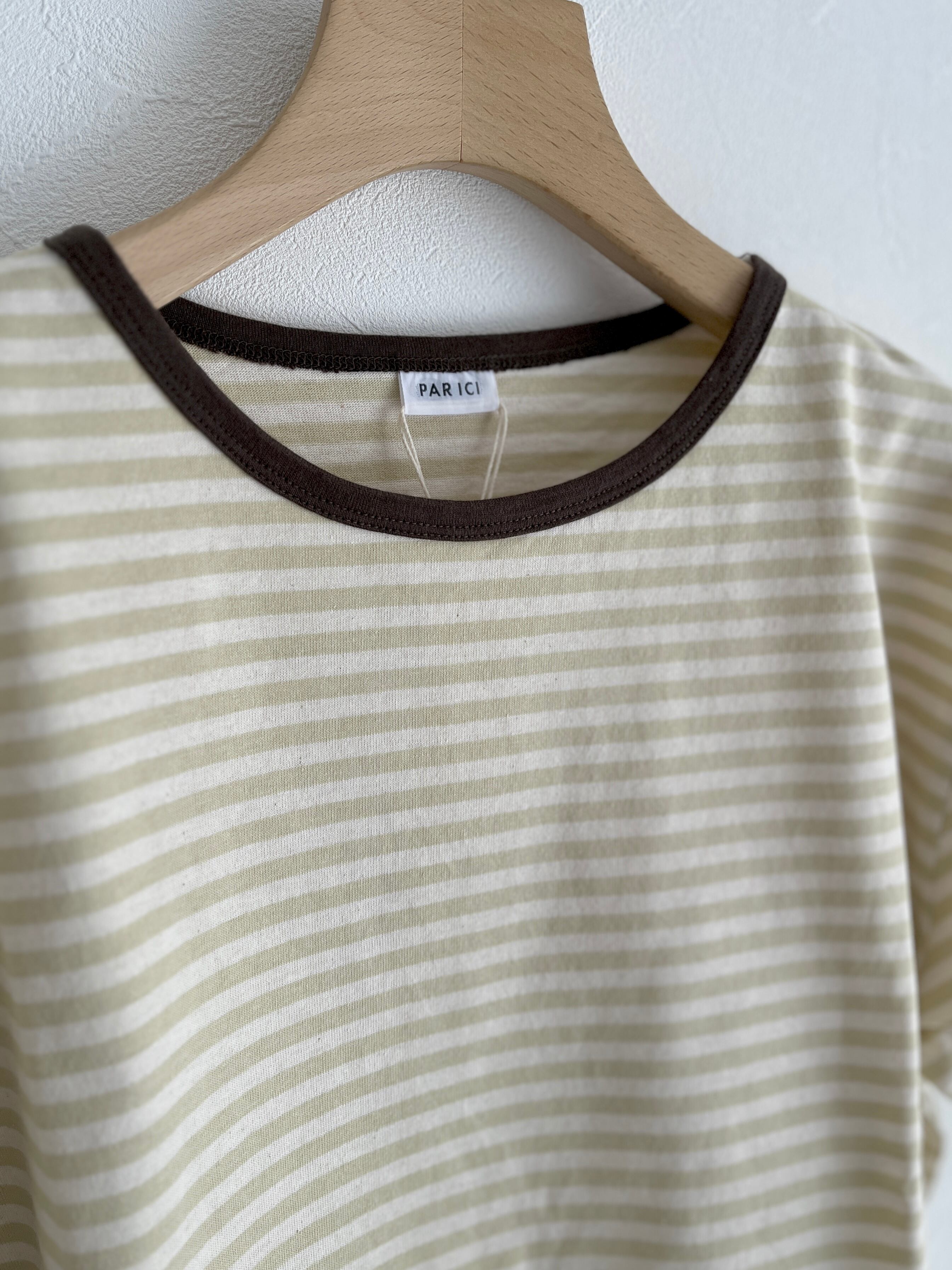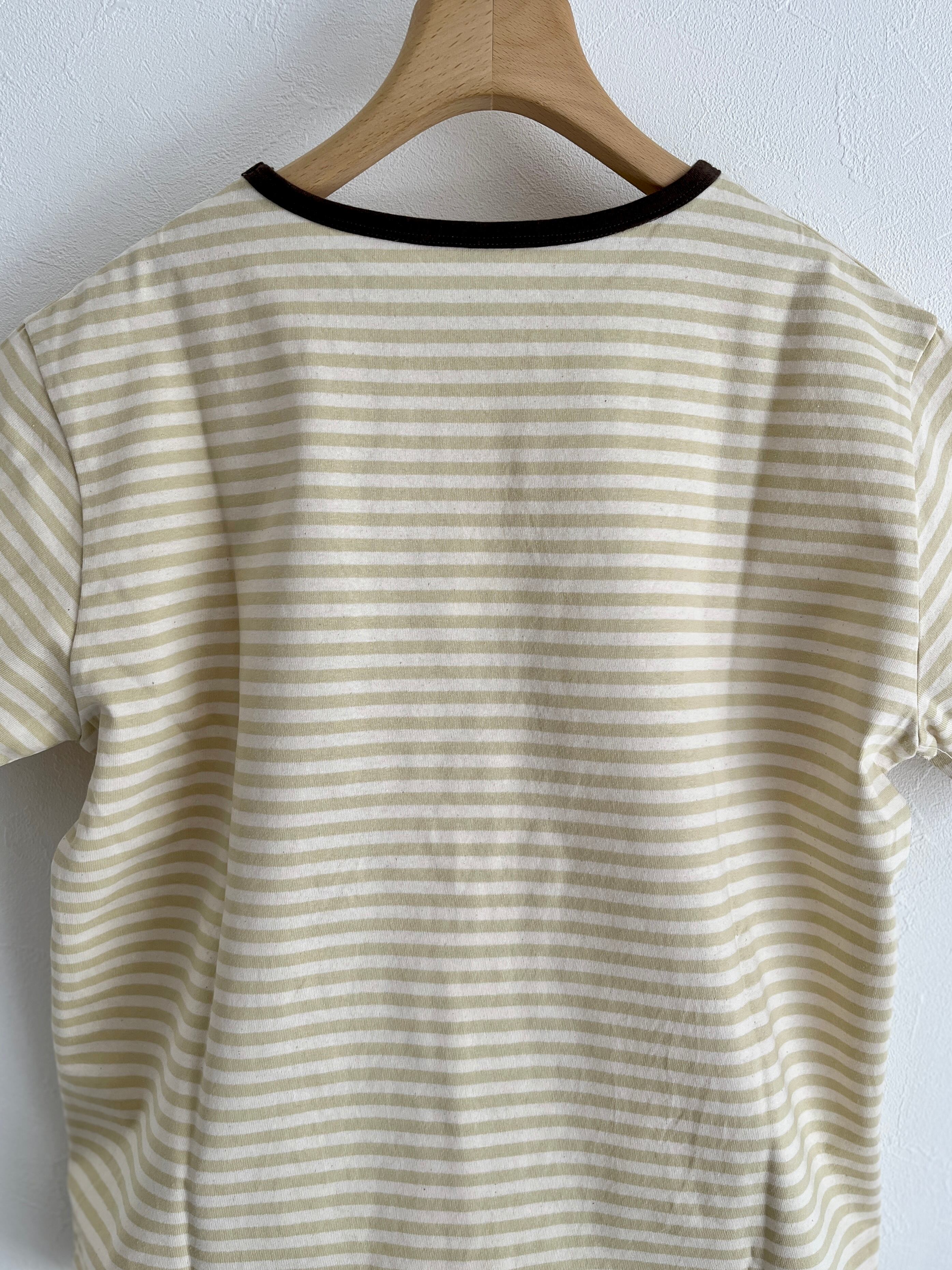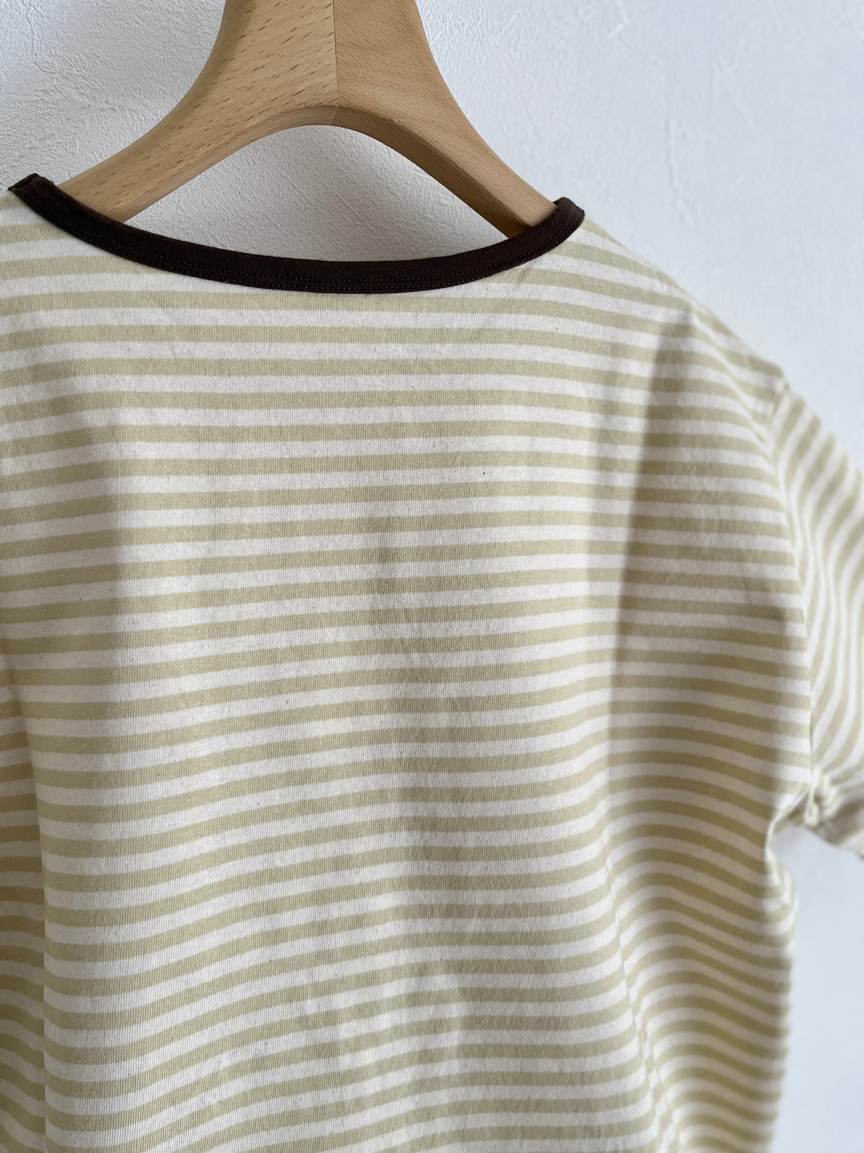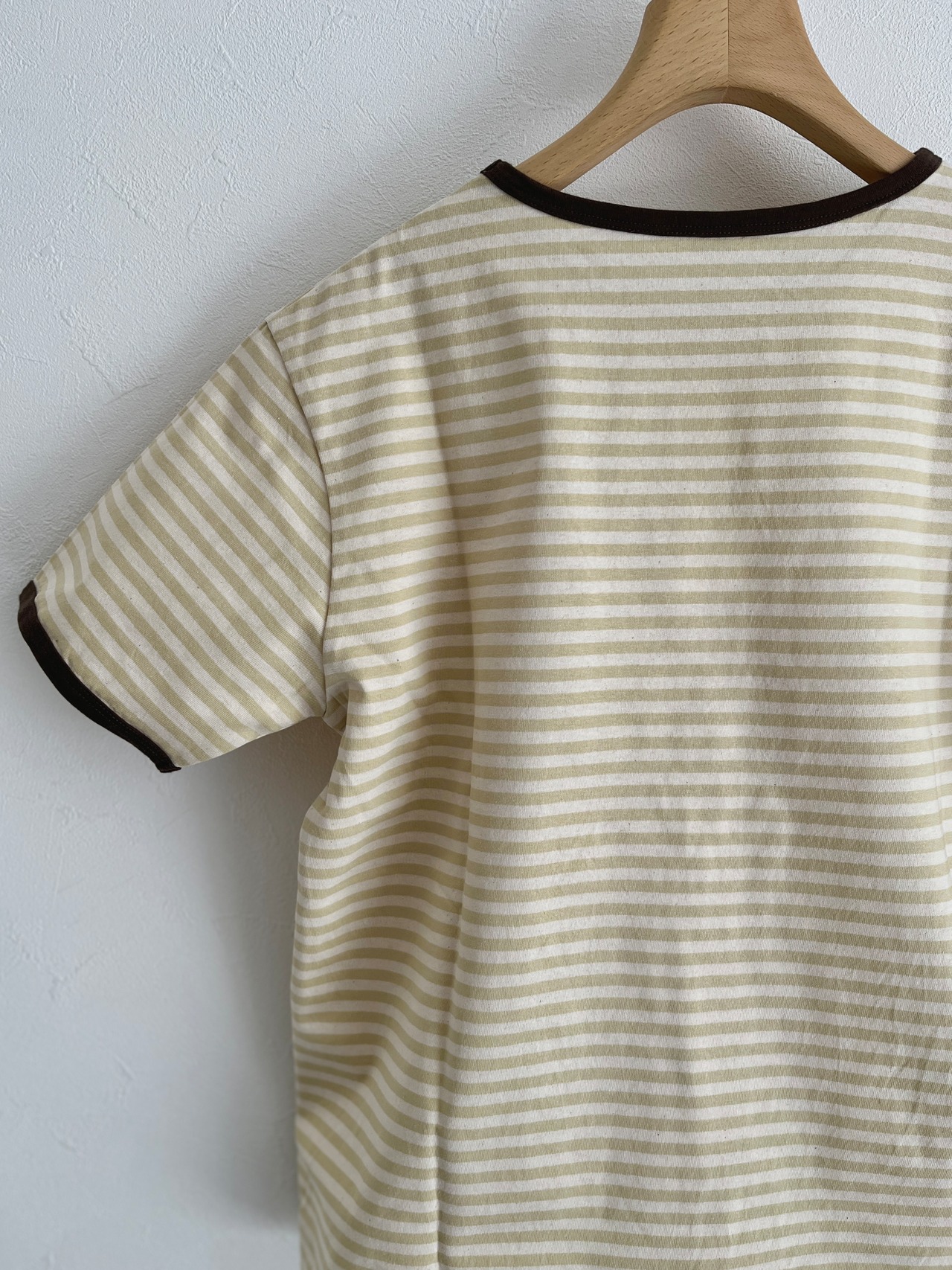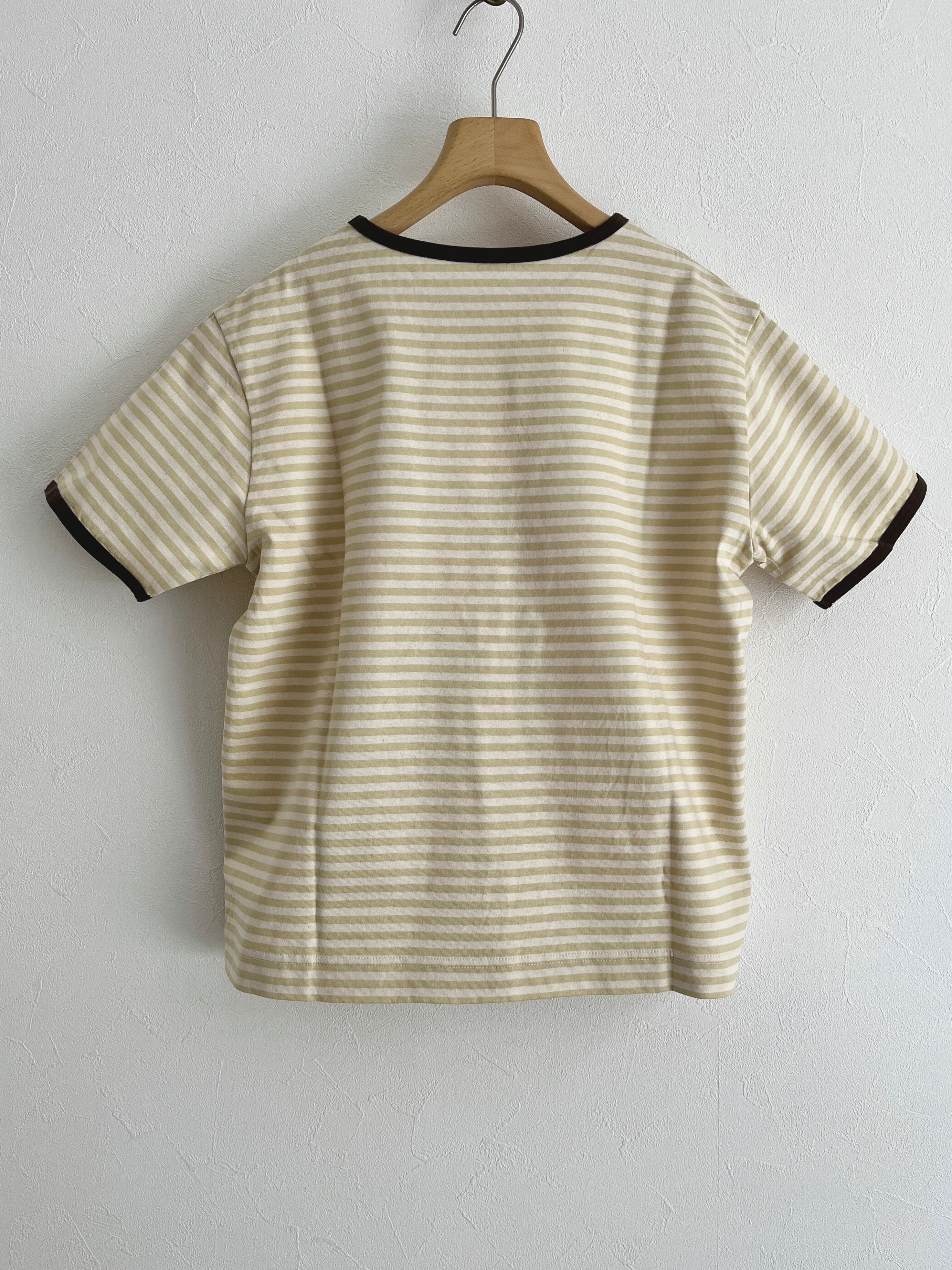 PAR ICI/ボーダー配色バインダー 半袖Tシャツ【SEASON COLOR】 (キナリ):5001CT009261