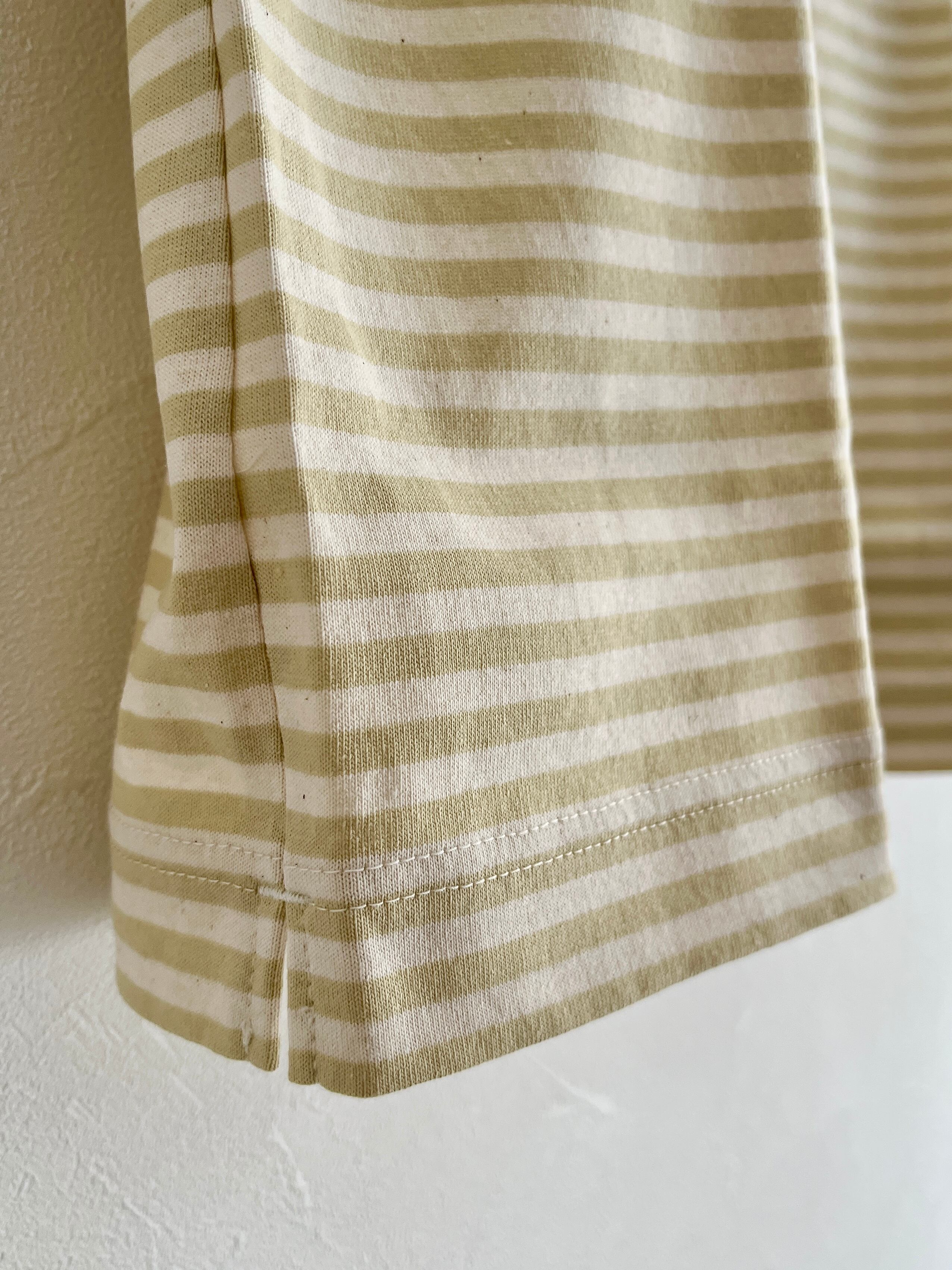マリンコーディネートには欠かせない定番のボーダーに、配色バインダーやスリット止まりのカンヌキなどちょっとしたエッセンスを加えたこだわりの一枚。デザイン性だけではなく、着用と洗濯を繰り返してもへたりにくいタフさが嬉しい、スタッフ人気も高いアイテムです。